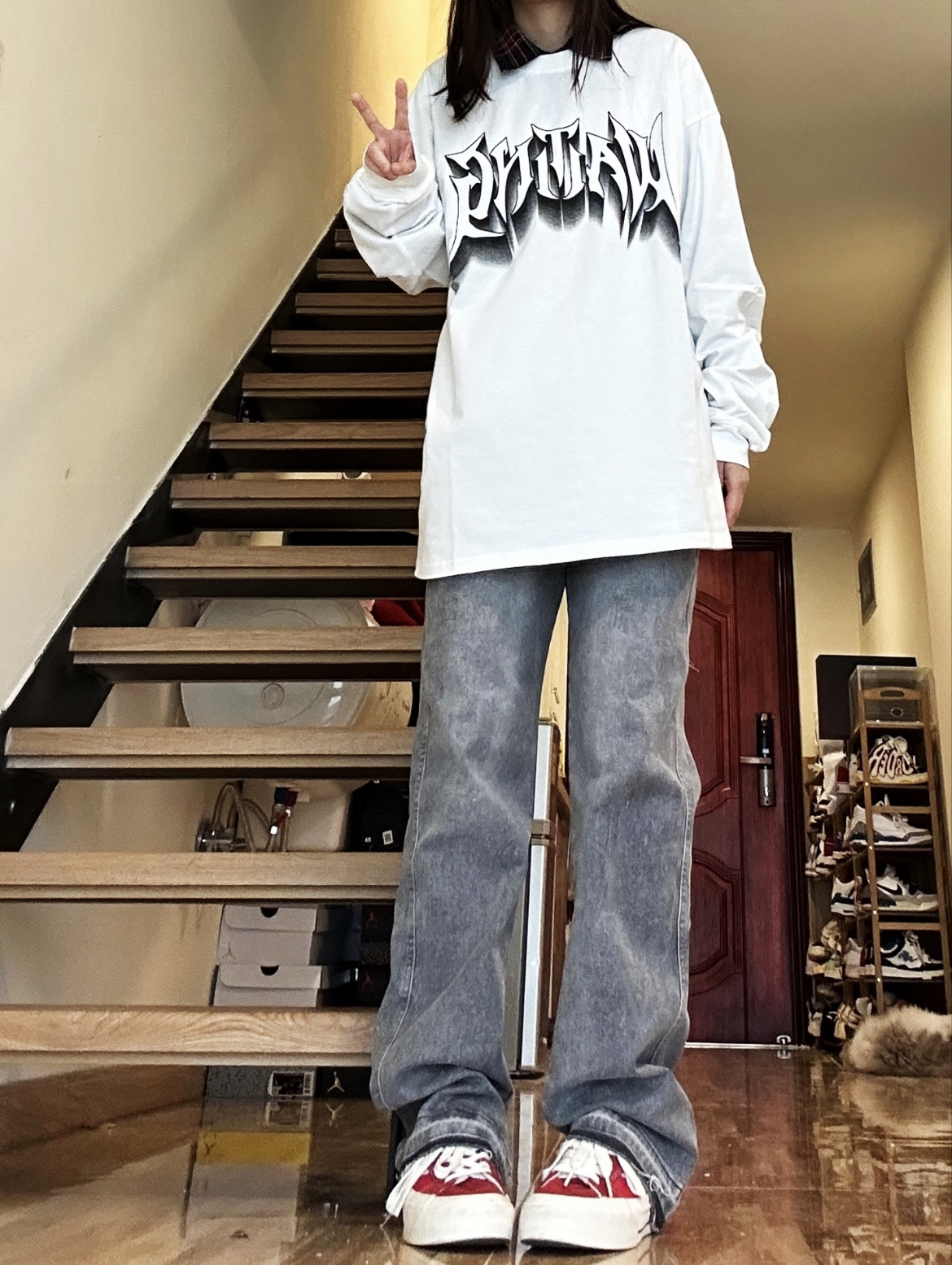 【开学就这样穿 长袖T恤➕水洗灰直筒裤】,由用户 补药难瘦啊 分享,来自河南。这是一篇来自识货社区的真实用户分享笔记。