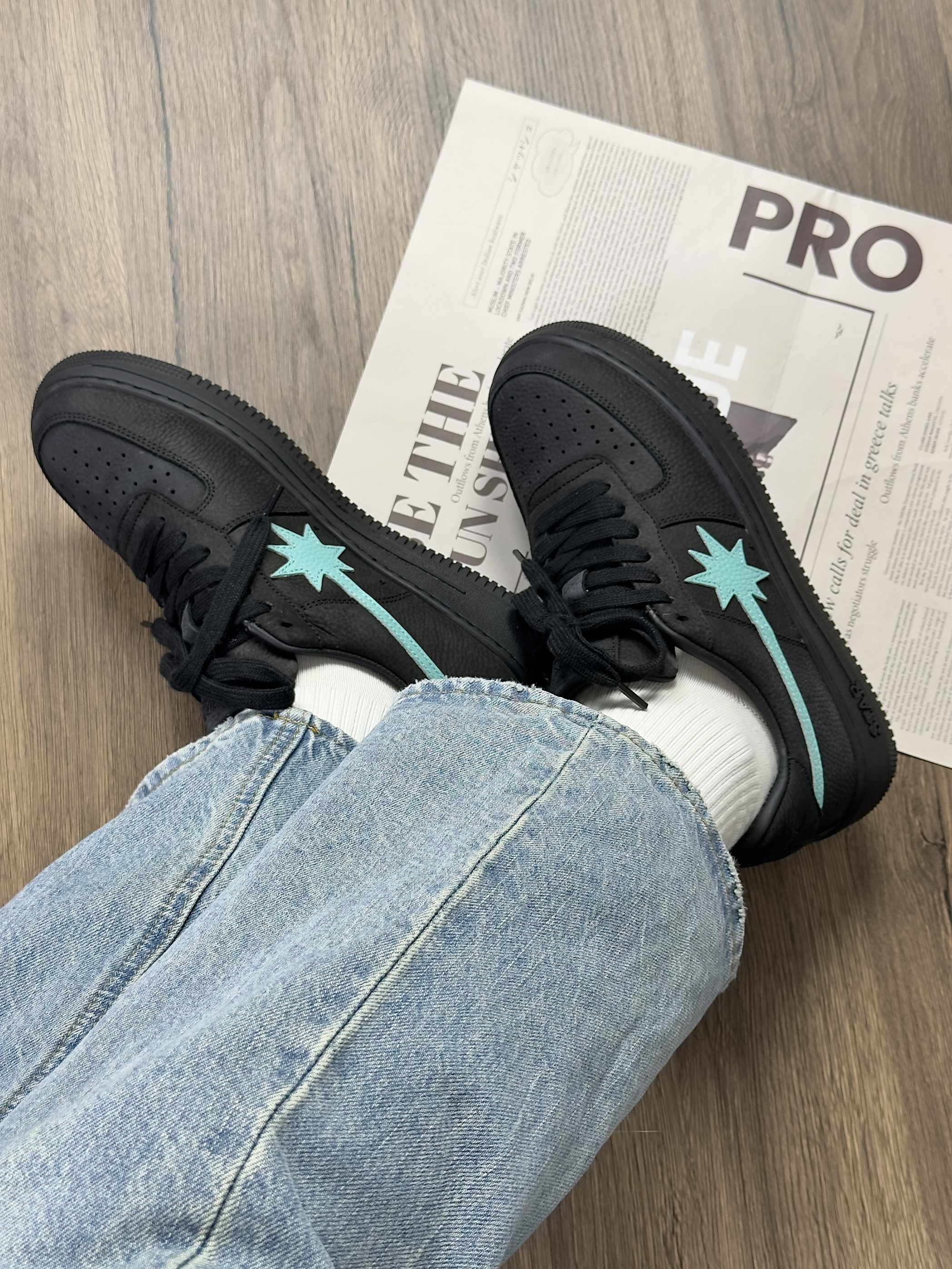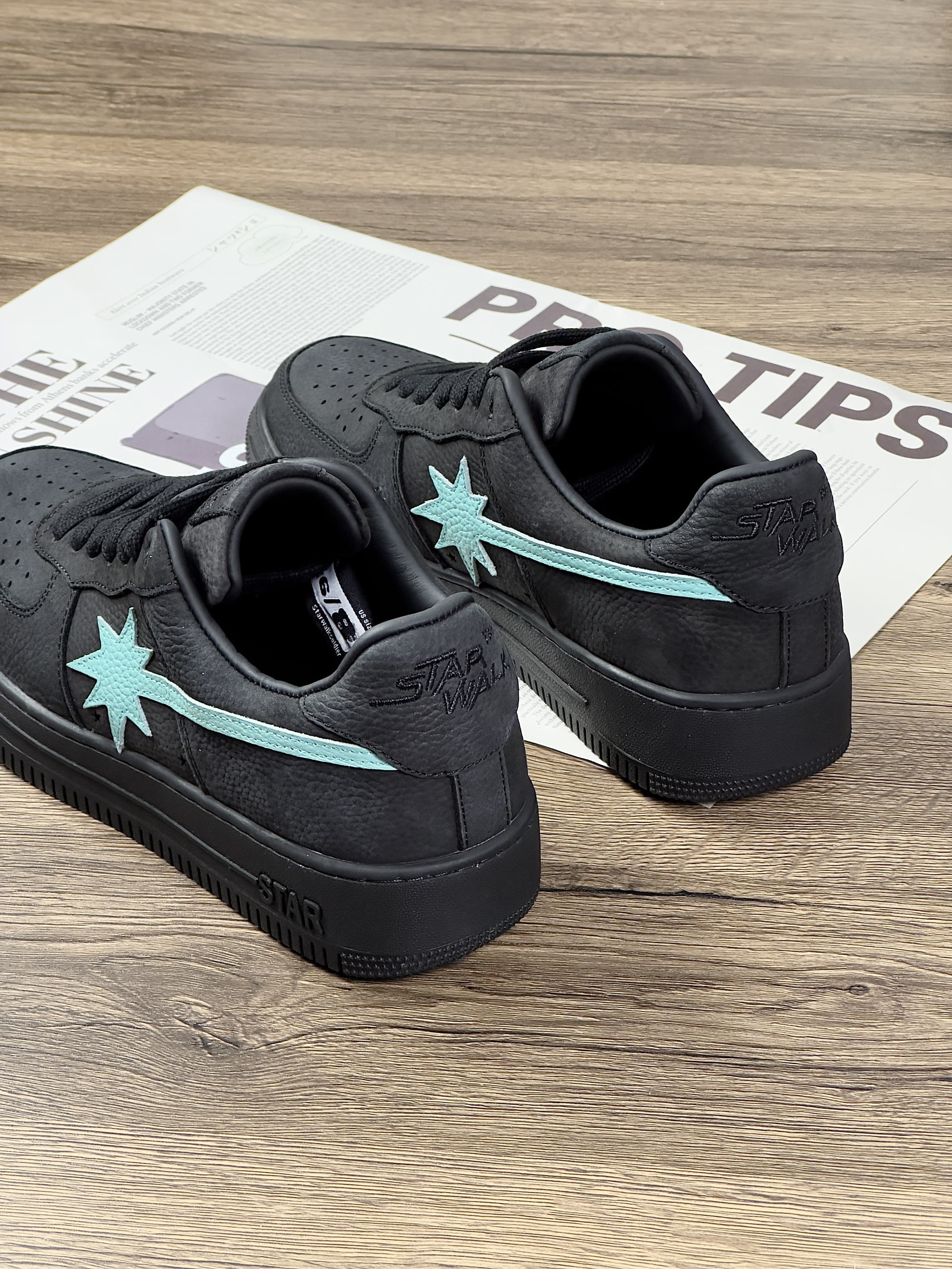 👟:starwalk soldier 星星鞋 hello,这里是陈白羊🐑!今天给大家分享一款starwalk soldier的星星鞋 TA的鞋身整体由大面积的黑色🖤构成,在荔枝纹路皮革的衬托下,触感柔软细腻,质感单单看起来就很在线。而鞋侧与外底的一抹蒂芙尼绿的融入,让人眼前一亮✨,复古中又透着小清新。 而皮质鞋口搭配厚底设计,上脚也很舒适,日常拿去搭配牛仔裤👖、工装裤都hin显腿长。而且它还...