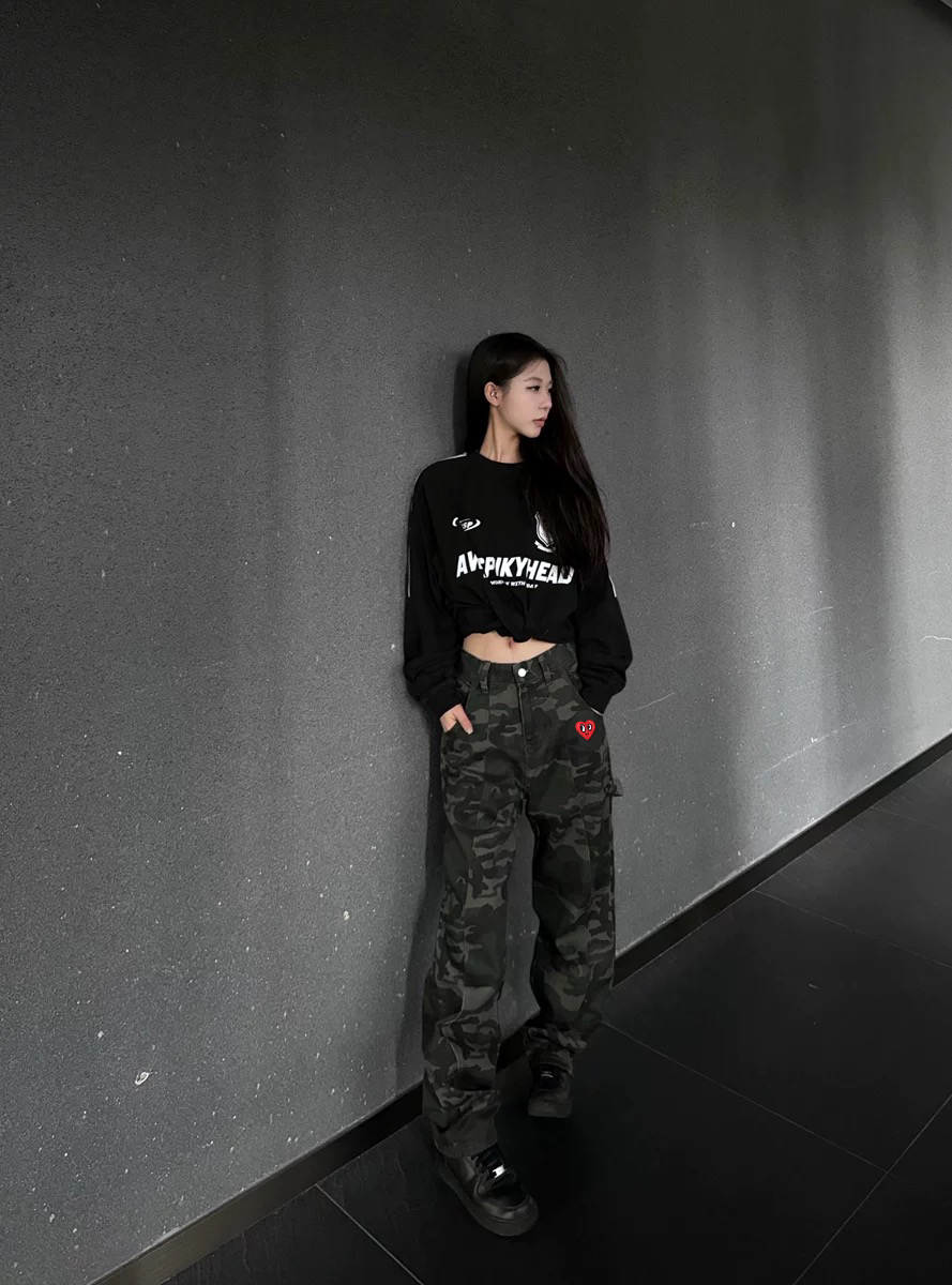 身边很多女生都挺抗拒迷彩配色的单品,但是搭得好真是吸睛又时髦,上身一件休闲运动感的圆领卫衣再搭配迷彩裤,又酷又特别,是不会撞款的穿搭