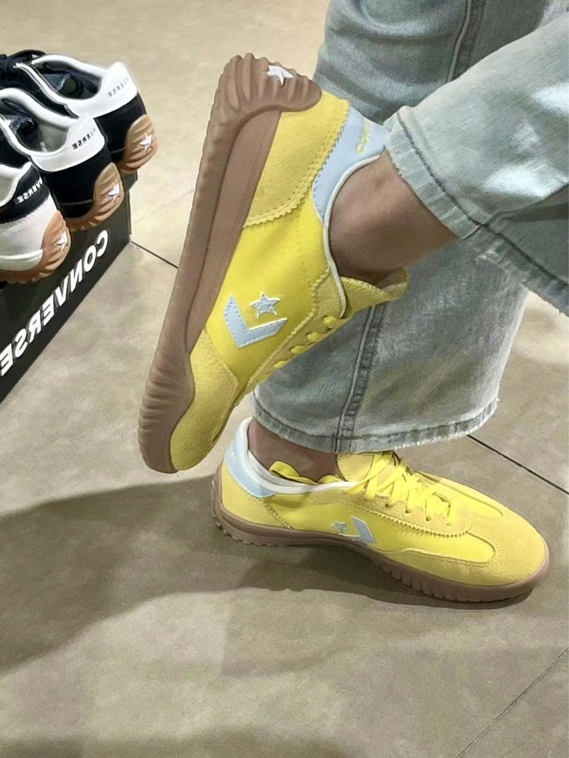 终于入了这双很美的银色,其实没有想像中难搭,和升级版的犹豫了很久,升级版虽然是羊皮包覆性跟厚度还有脚感都很舒服,但是这双优点是有足弓支撑还有他的银色比较是反光的银色。 •穿着反馈: 鞋子本身很轻盈,没有什么负重感。虽然底薄但是穿着超级舒适跑跳完全 OK,并且鞋子柔软细腻的,可以随意折弯。 • 搭配情况: 我相信这款鞋子的火爆程度已经不用我多说了吗全银的皮质尊嘟好酷!意外的好搭配,耀眼又不是那么的高...