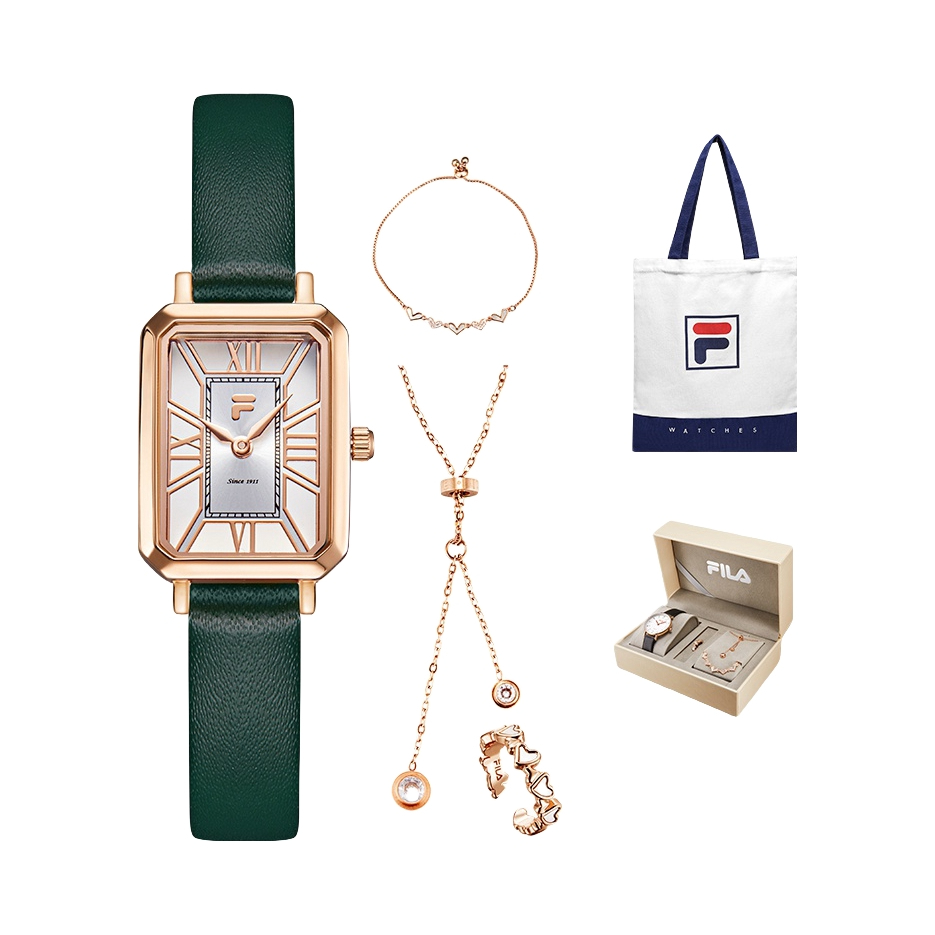 本篇笔记关联了FILA/斐乐 复古简约高考礼物小巧针扣防水初高中小方表石英女士手表 【套装礼盒】金壳白面绿带等商品,为用户提供真实的使用体验和购买参考。