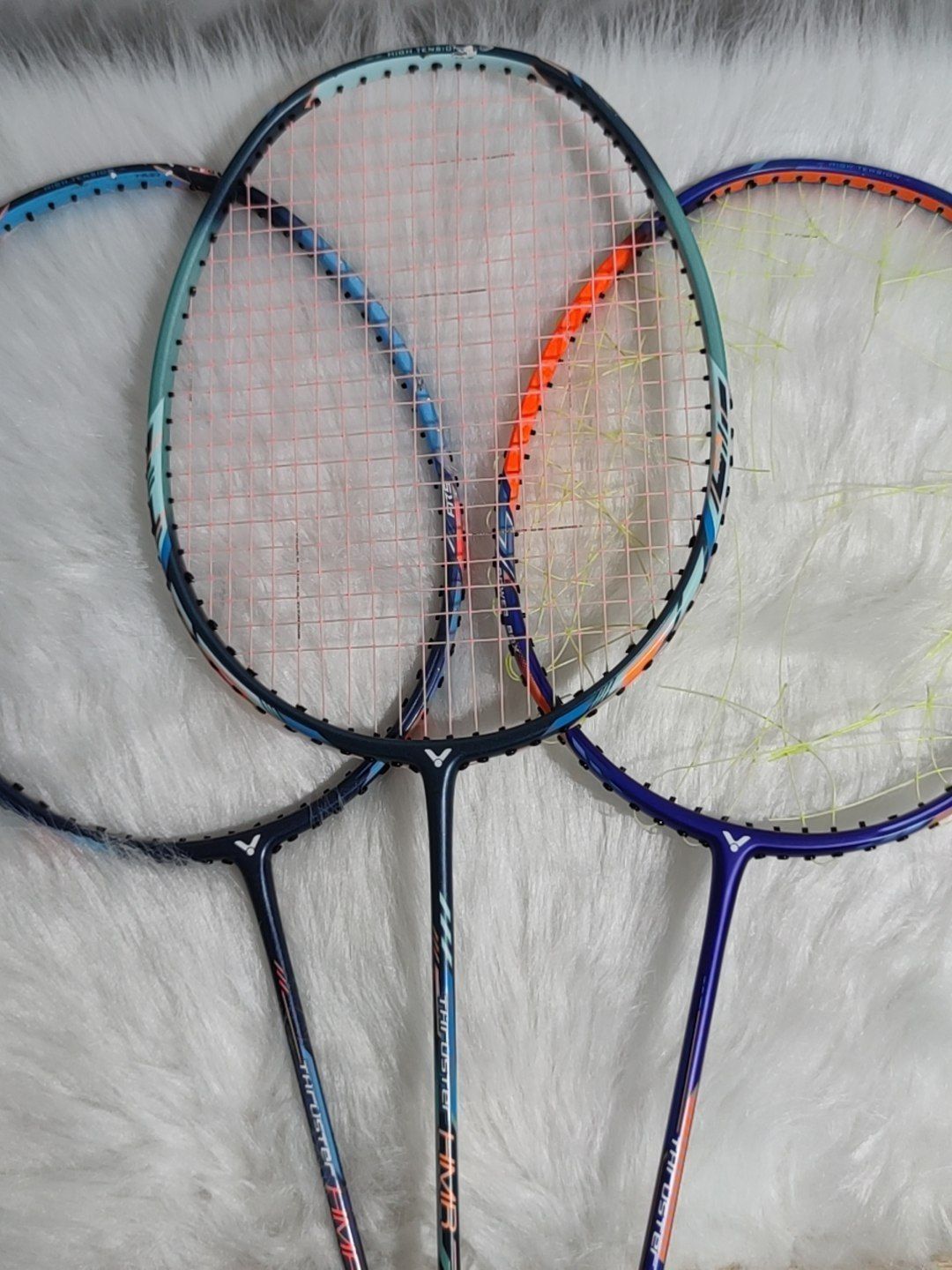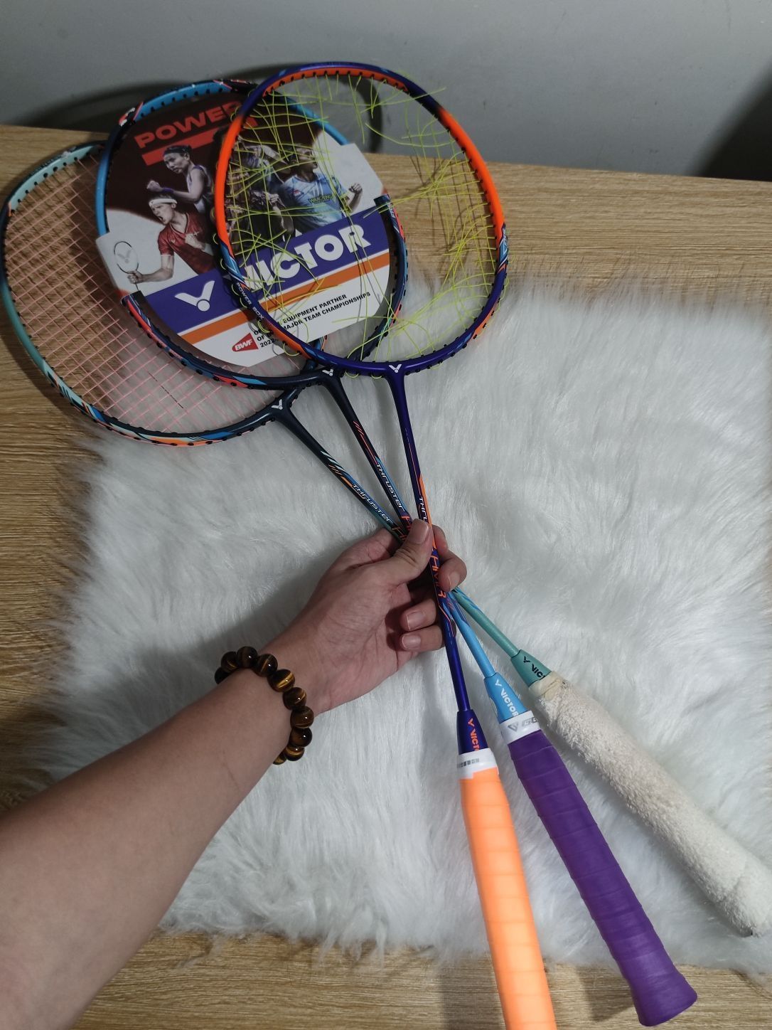 #VICTOR/威克多 –我选的是5U大铁锤,我觉着小铁锤打感不大行 中杆很木,自我感受哈,球友们还是自己参考 –分享下打了三把的使用体验 中杆较软,好上手,很糖水,完全不挑人 实际打感也不错,入门到进阶我觉着铁锤就够了 –颜色选择,我也是抱着好奇的心思,第一把蓝铁锤边框拉塌陷之后就买了另外两把颜色的铁锤,有一说一,蓝色我是真喜欢,三把放一起,球友们可以比较看看,然后有不明白的也可以一起交流...