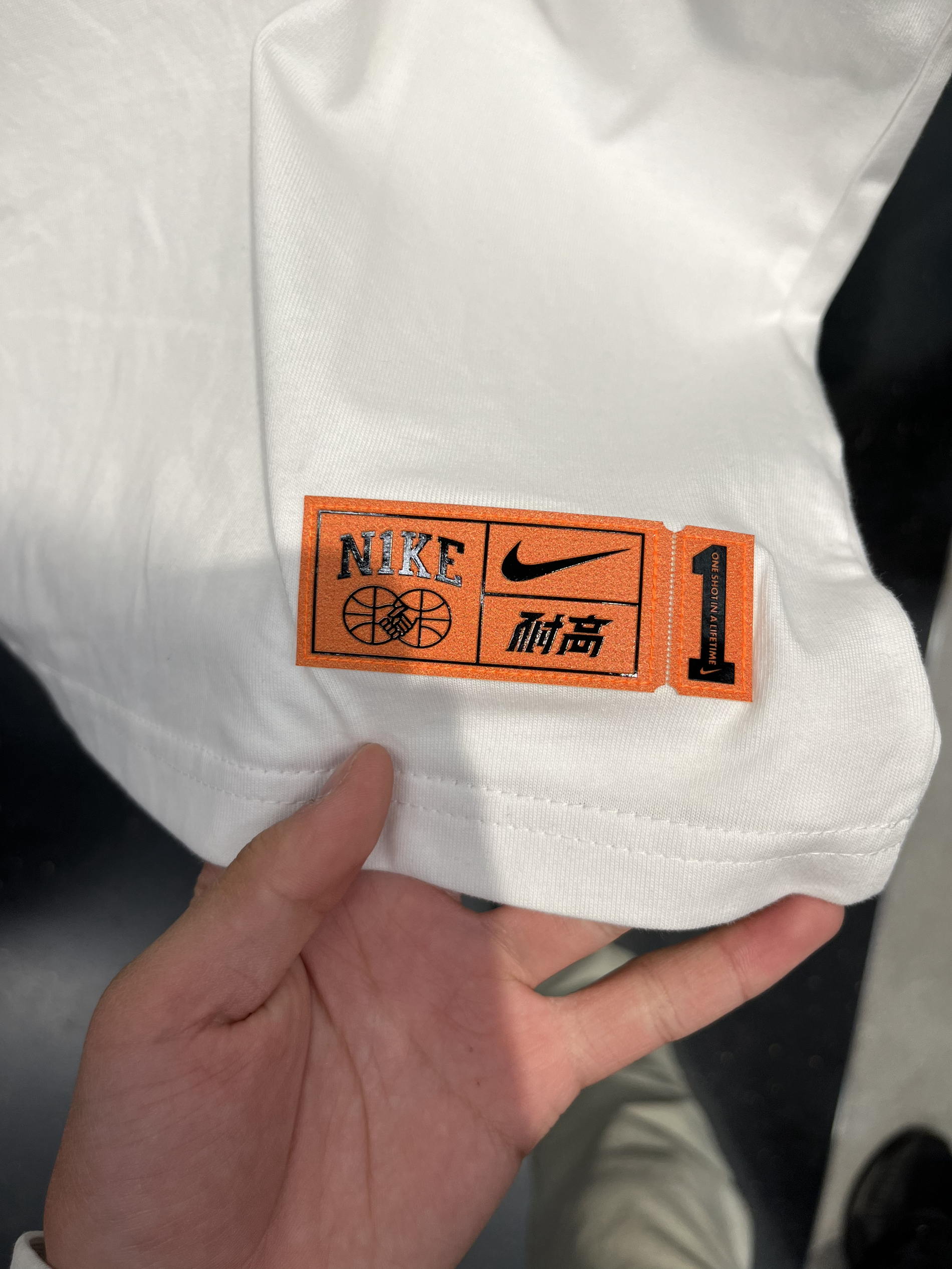 衣服正面是一个小篮球🏀标志还有nike的logo 很好看,衣服正面左下角有耐高图案和字样,非常的棒 衣服背面就有点炫酷了,印有耐高联赛专属语句 “一生一次”周围加上一些图案和耐克小logo,真的非常非常有创意! 这个颜值我觉得是值这个价格的,放心买就完了,感觉这款要爆单! 尺码方面:本人171 105斤 M码很合适 正常尺码买就可以