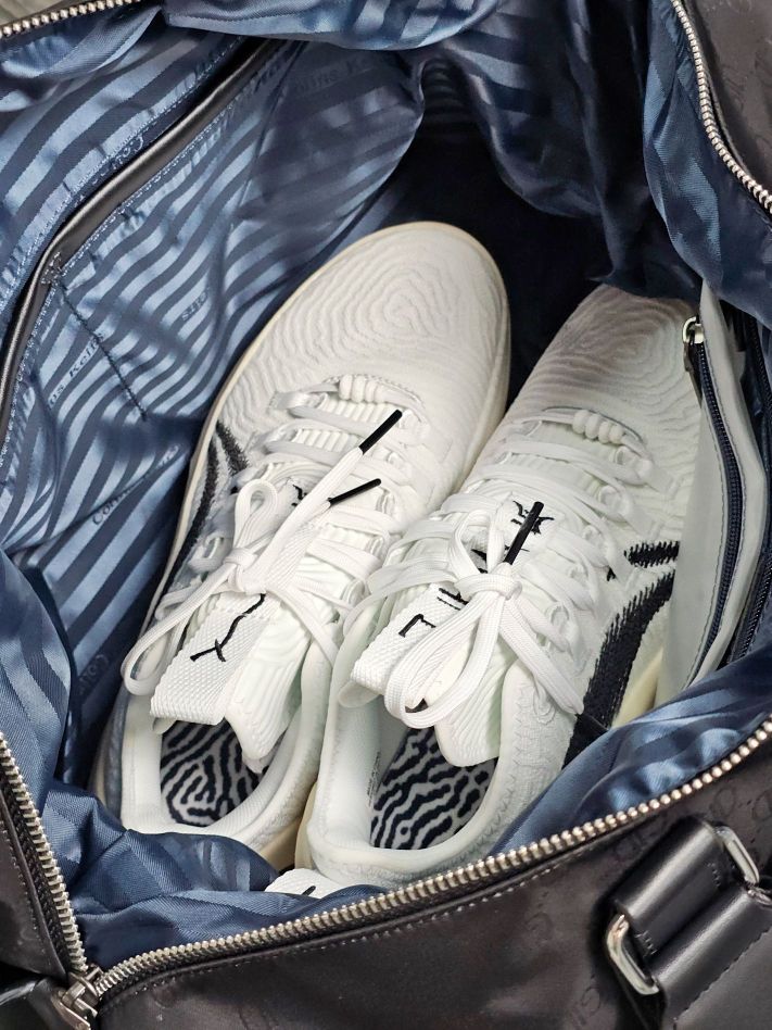 这款Colins Keirs的旅行健身包,容量真的暖心哦,东西咔咔往里放,出行一周都没啥问题哟!里面专门的还有干湿分离袋、独立鞋仓而且防水又耐磨,很适合运动达人和旅行爱好者! 鞋子是李宁韦德11白热篮球鞋,实战性能强的狠啊,关键是鞋子好看,日常当做潮鞋穿老吸睛了,而且舒适度也很高! 牛仔外套是vlone的经典大V,超酷哦!