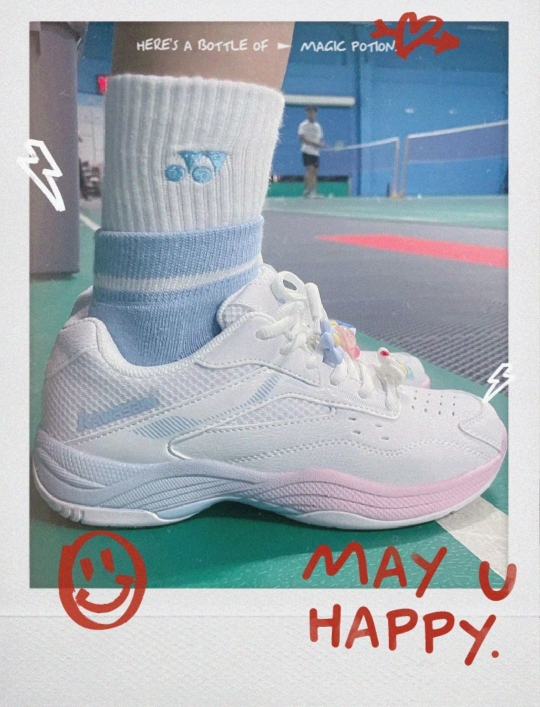 #Kawasaki川崎 棉花糖系列羽毛球鞋 川崎的设计真的越来越精致了 从球拍极光7的色彩调配,到第一次看到这个棉花糖系列的入门羽毛球鞋设计,川崎在保证功能方面之外还有在用心设计一款球鞋的外观诶