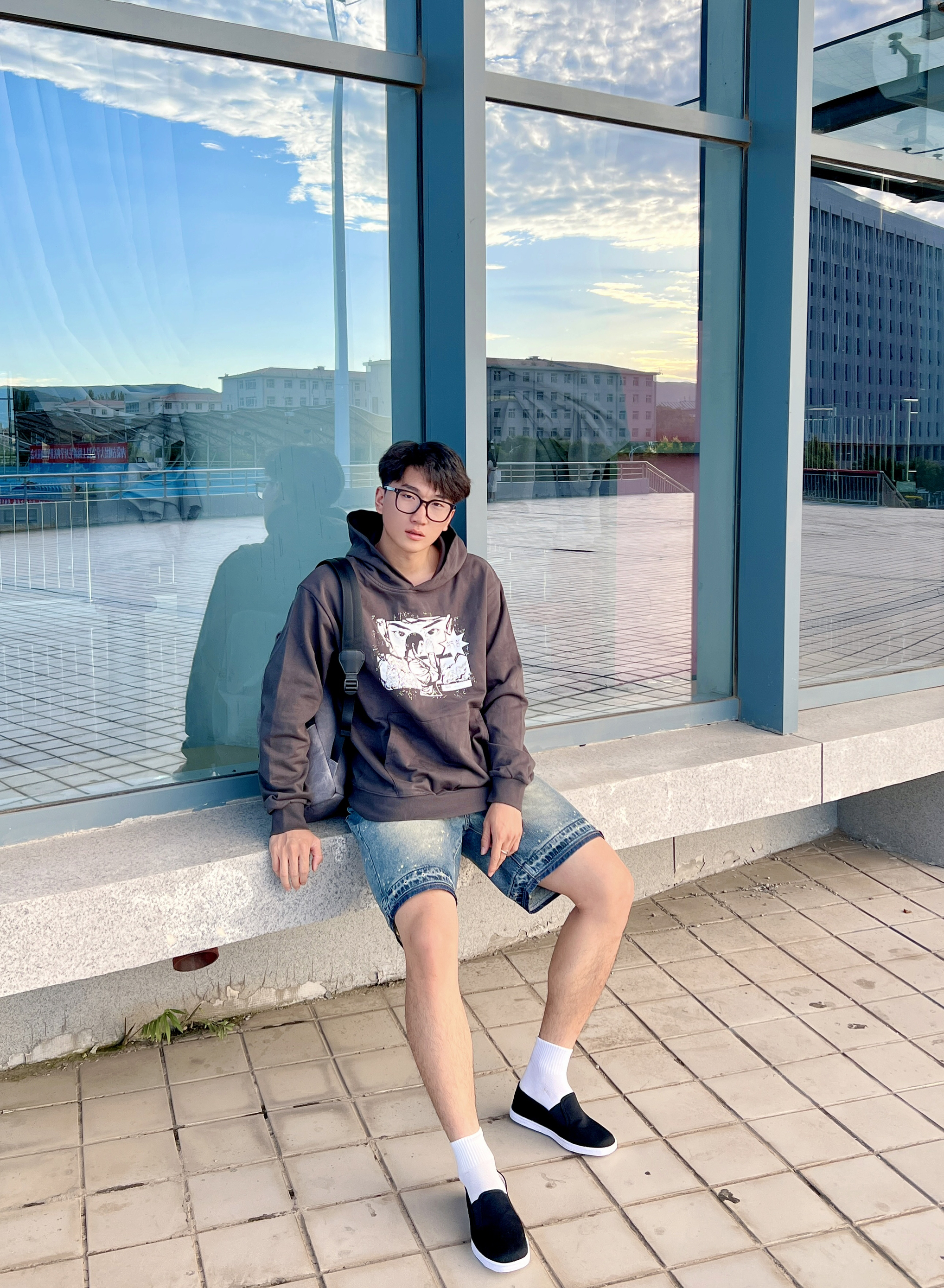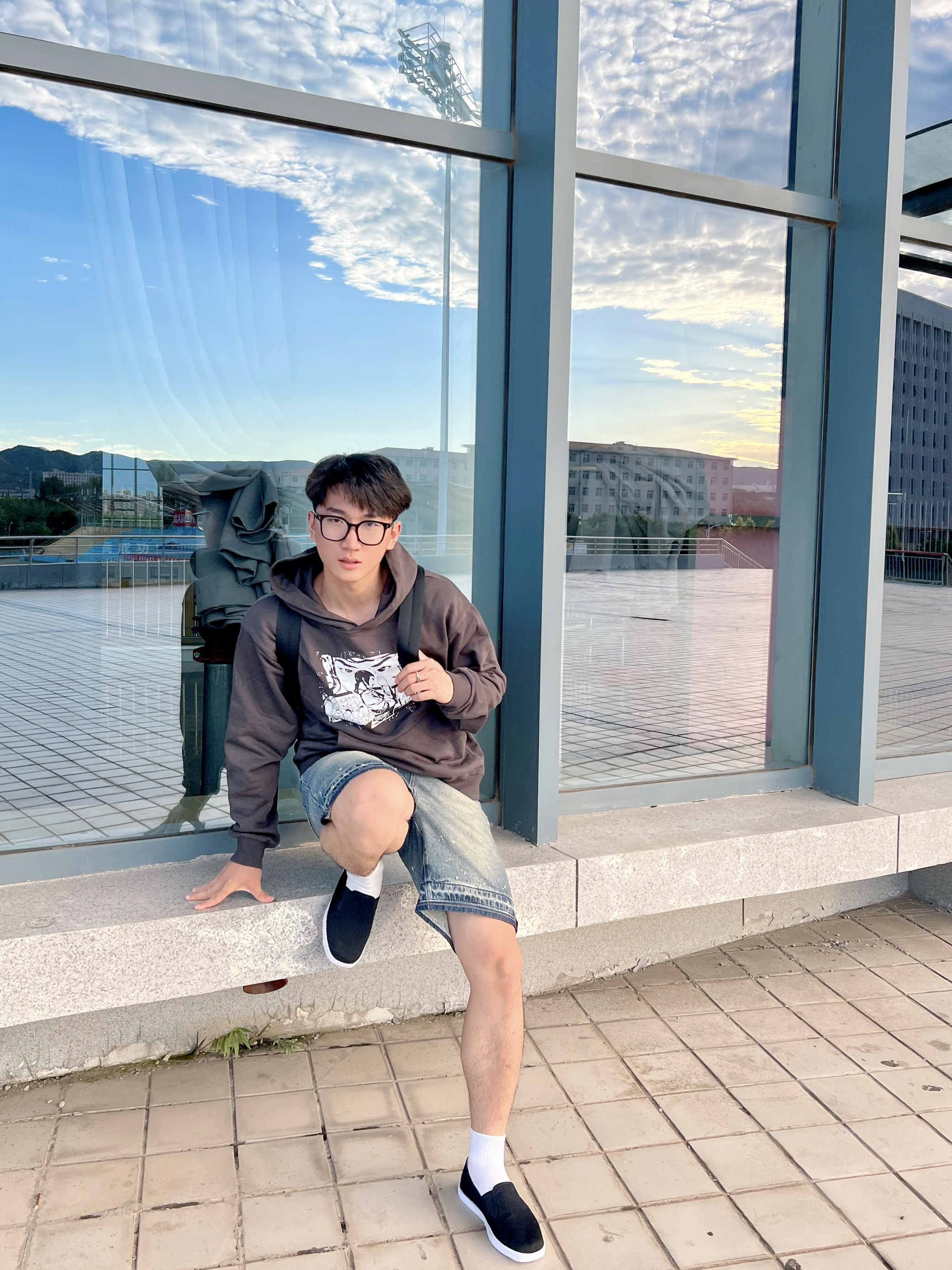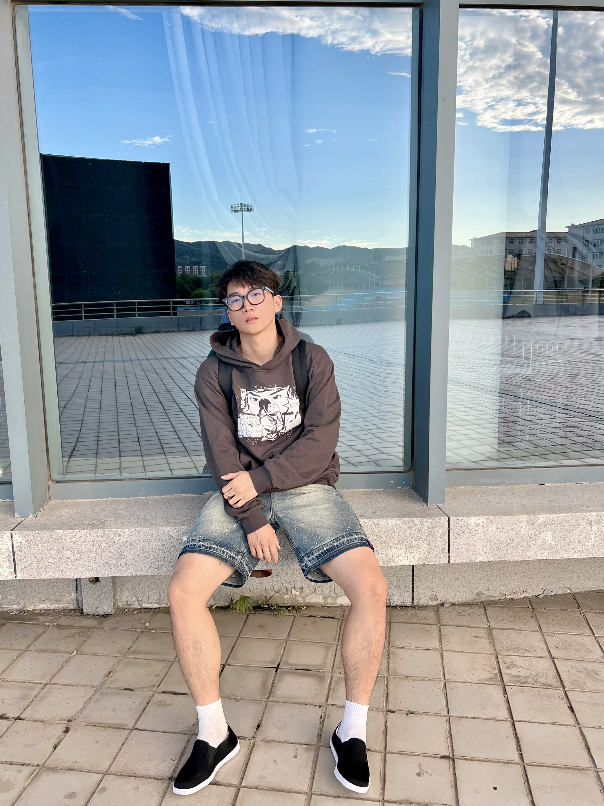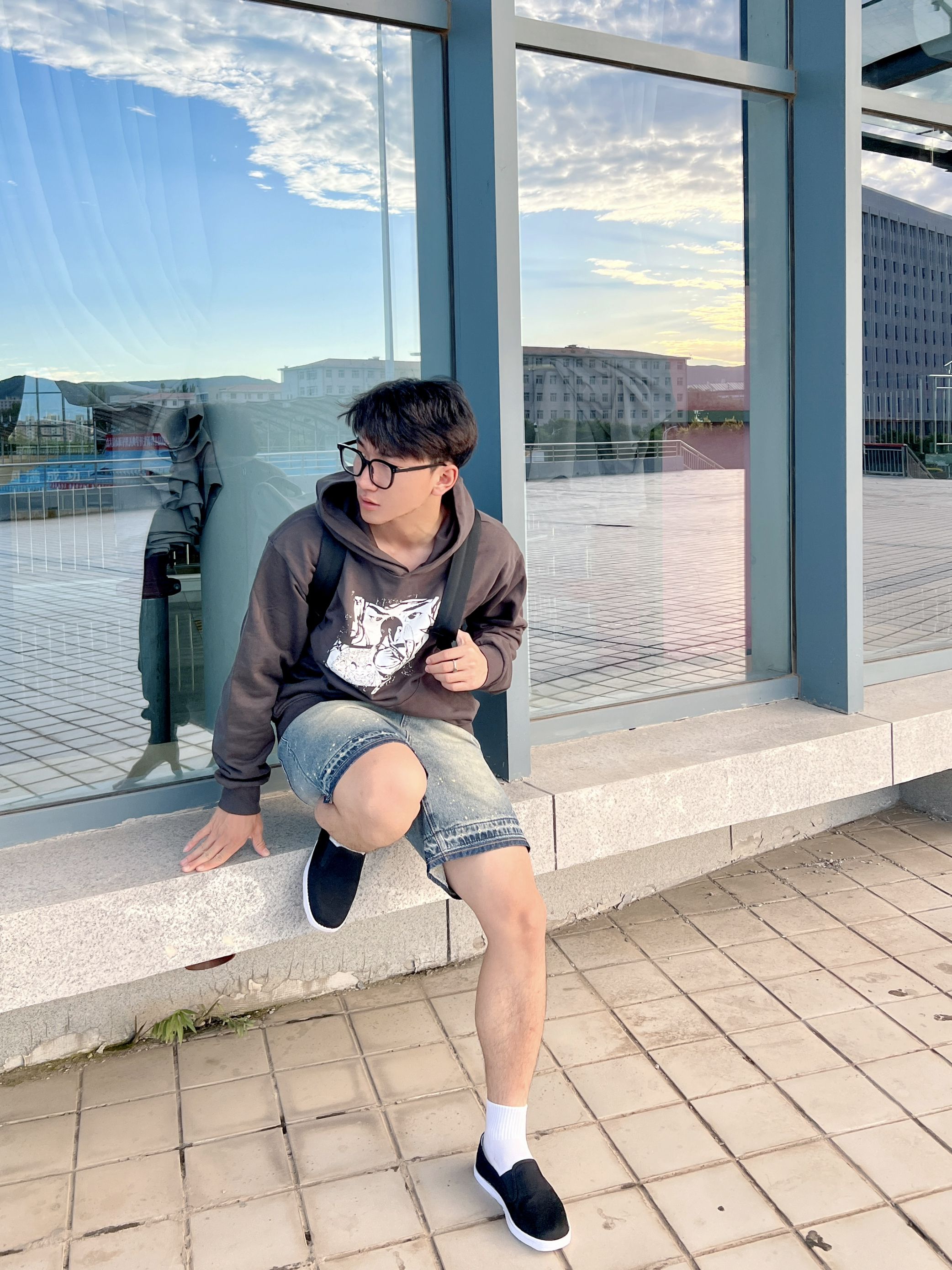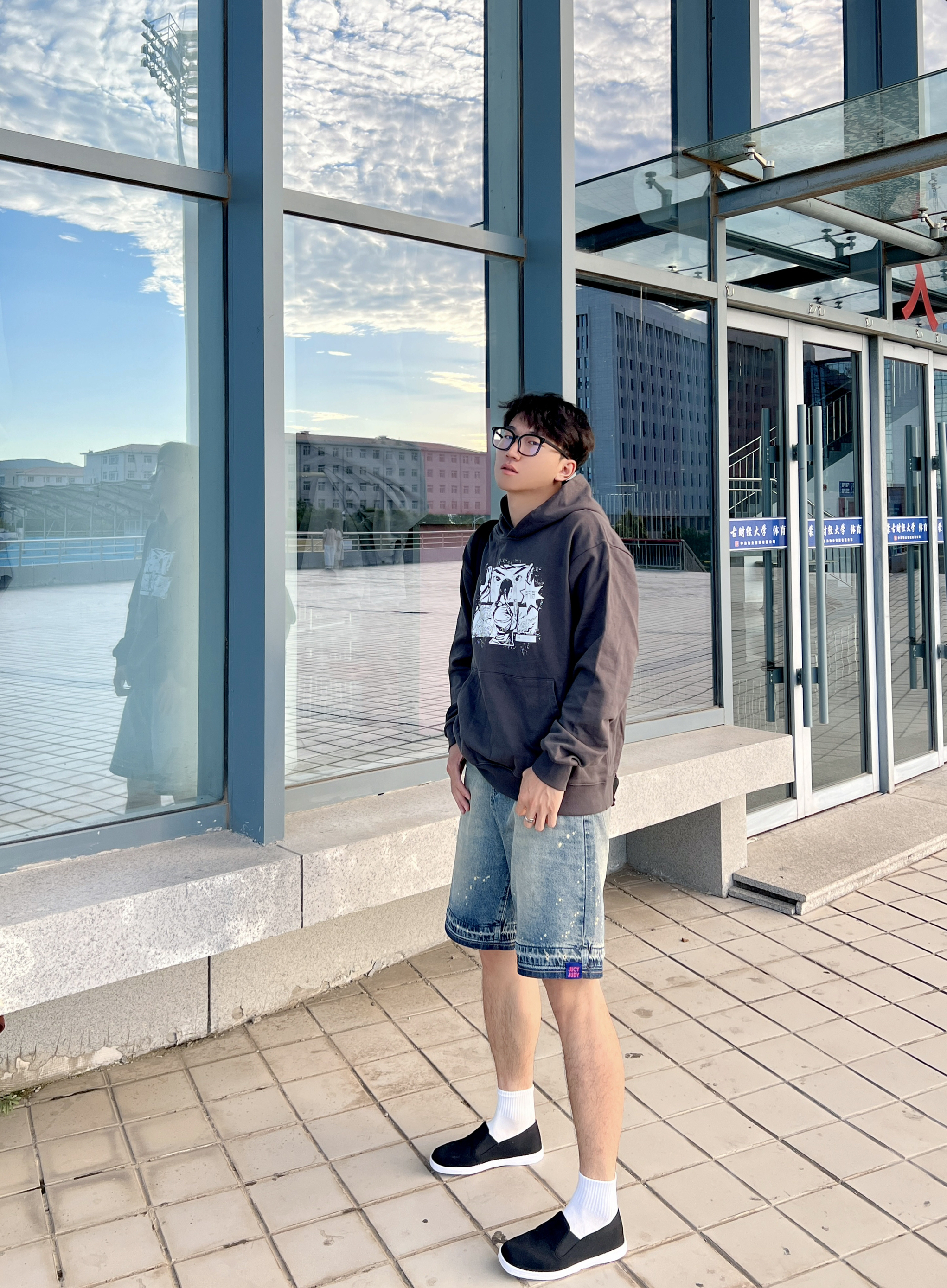 这开学了不得尝试点新风格 内联升老字号休闲鞋👟 舒适百搭的一款鞋型 地道的中式复古~ 上身一件小众褐色卫衣 搭配一条牛仔短裤🩳 一脚蹬敲方便 日常搭配起来也是hin轻松滴✅