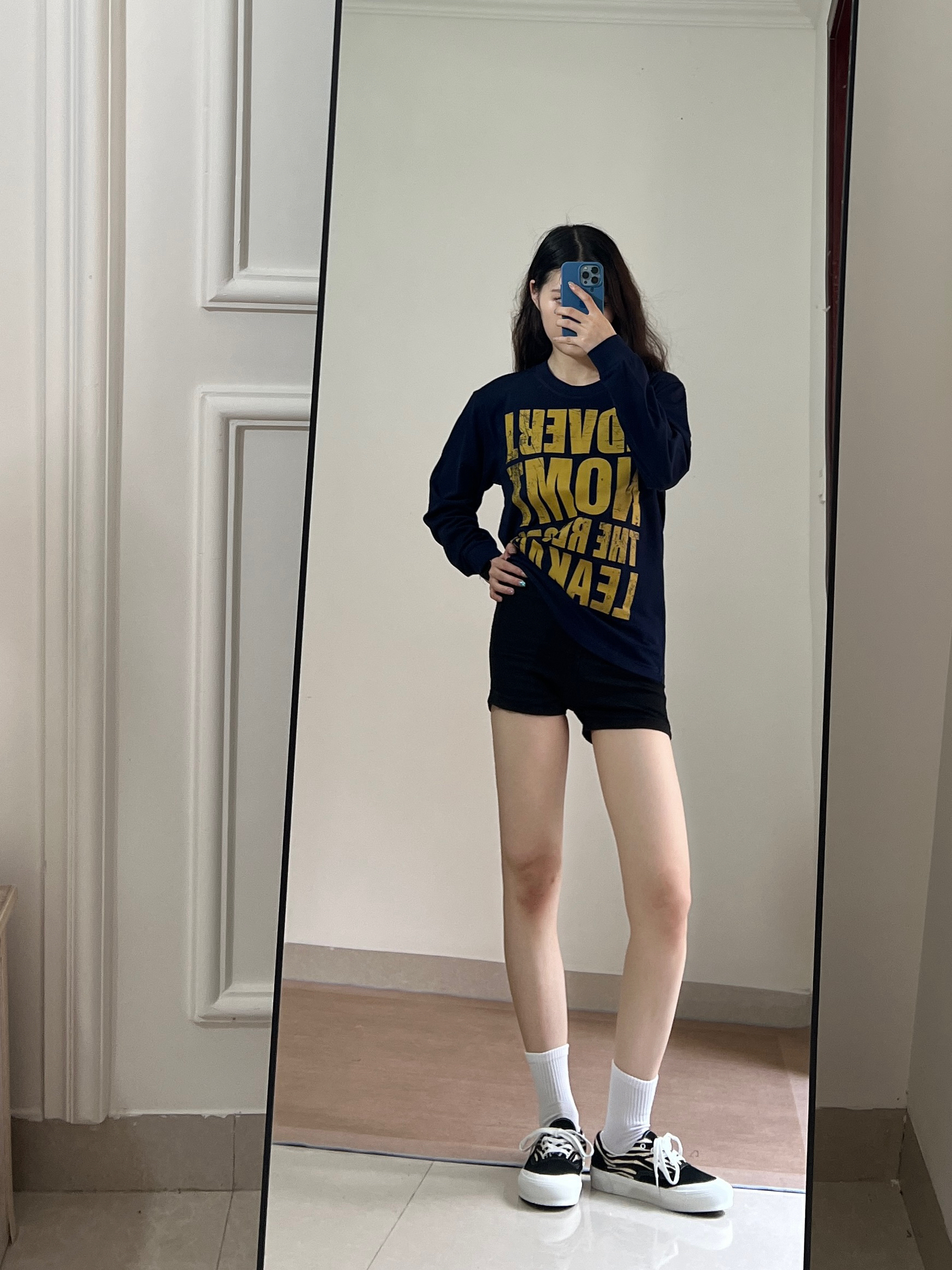这件T恤也太好搭了叭~ 字母印花也太美式啦💞 藏蓝色特别的复古 很有那味儿啦💞 真的是入秋必备单品啦⭐️⭐️⭐️