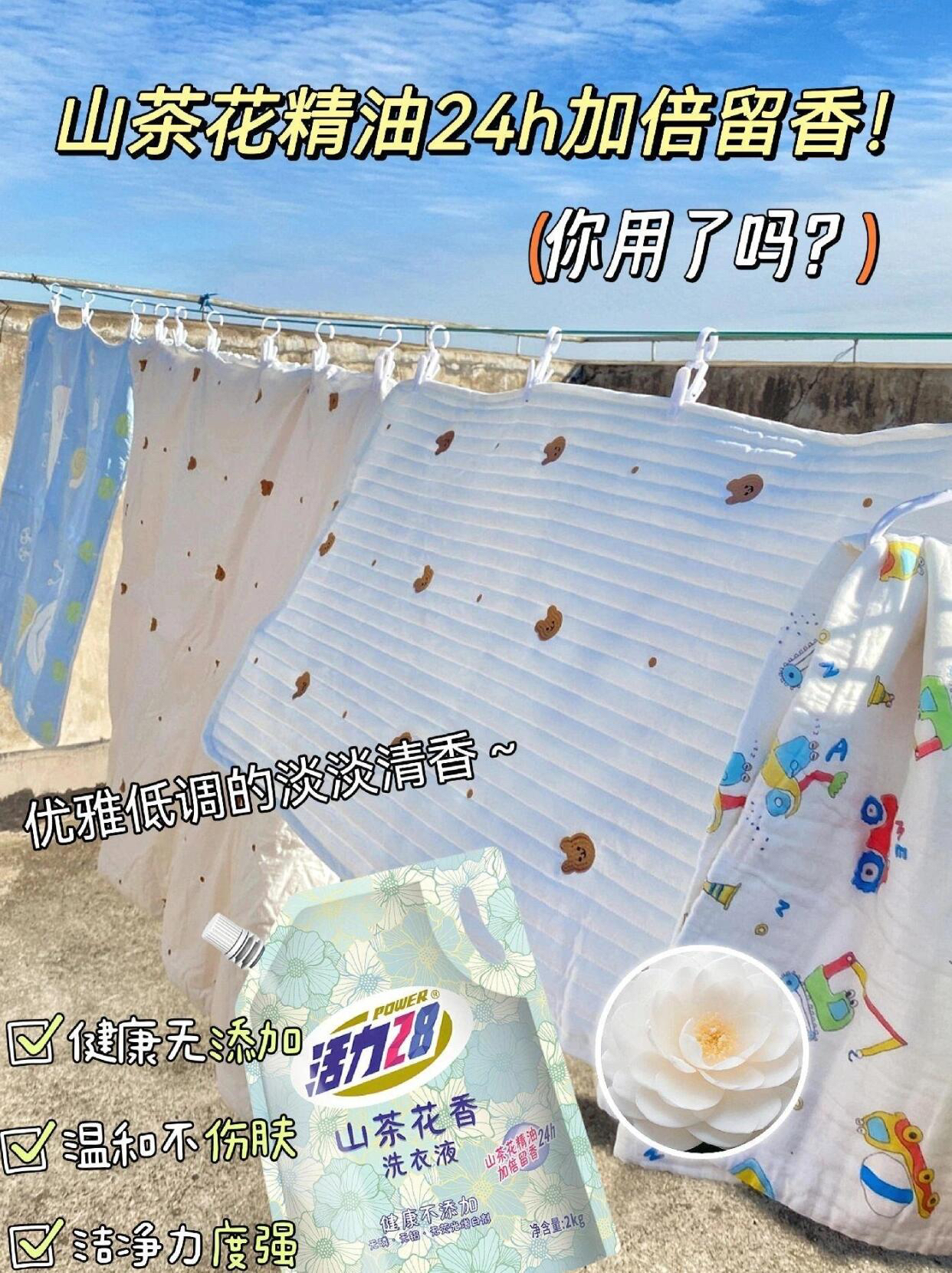 发现一个宝藏洗衣液!活力28山茶花洗衣液,真的是香到不行!🌷 一打开瓶盖,就能闻到淡淡的山茶花香,洗完衣服后,整个房间都弥漫着这沁人心脾的花香。而且去污效果也超棒,不管是油渍还是汗渍,都能轻松洗干净。 重点是,它还特别温和,不伤手,洗完的衣服软软的,像新的一样!👚 无论是洗衣服、裤子,还是床单、被套,它都能搞定。简直是家庭必备神器!而且价格超级实惠,补充装更是让家里香香的不心疼。 快来试试吧,你一...