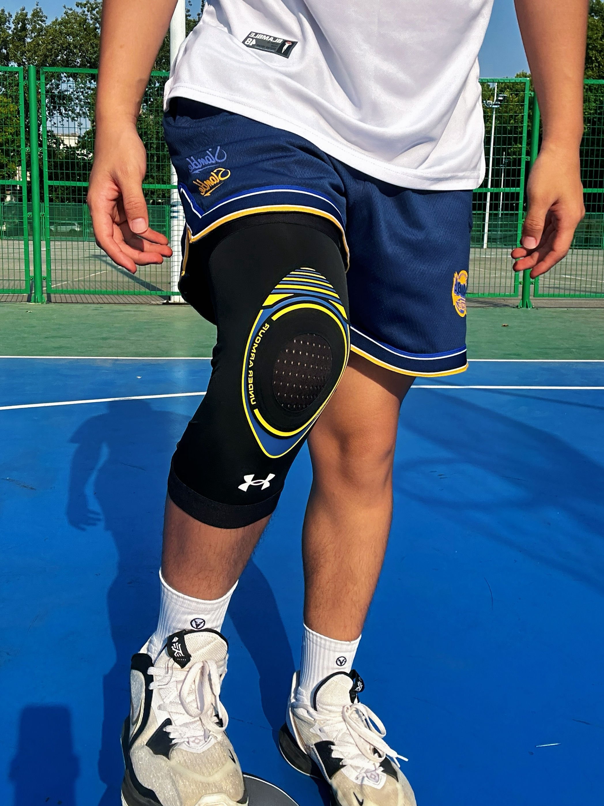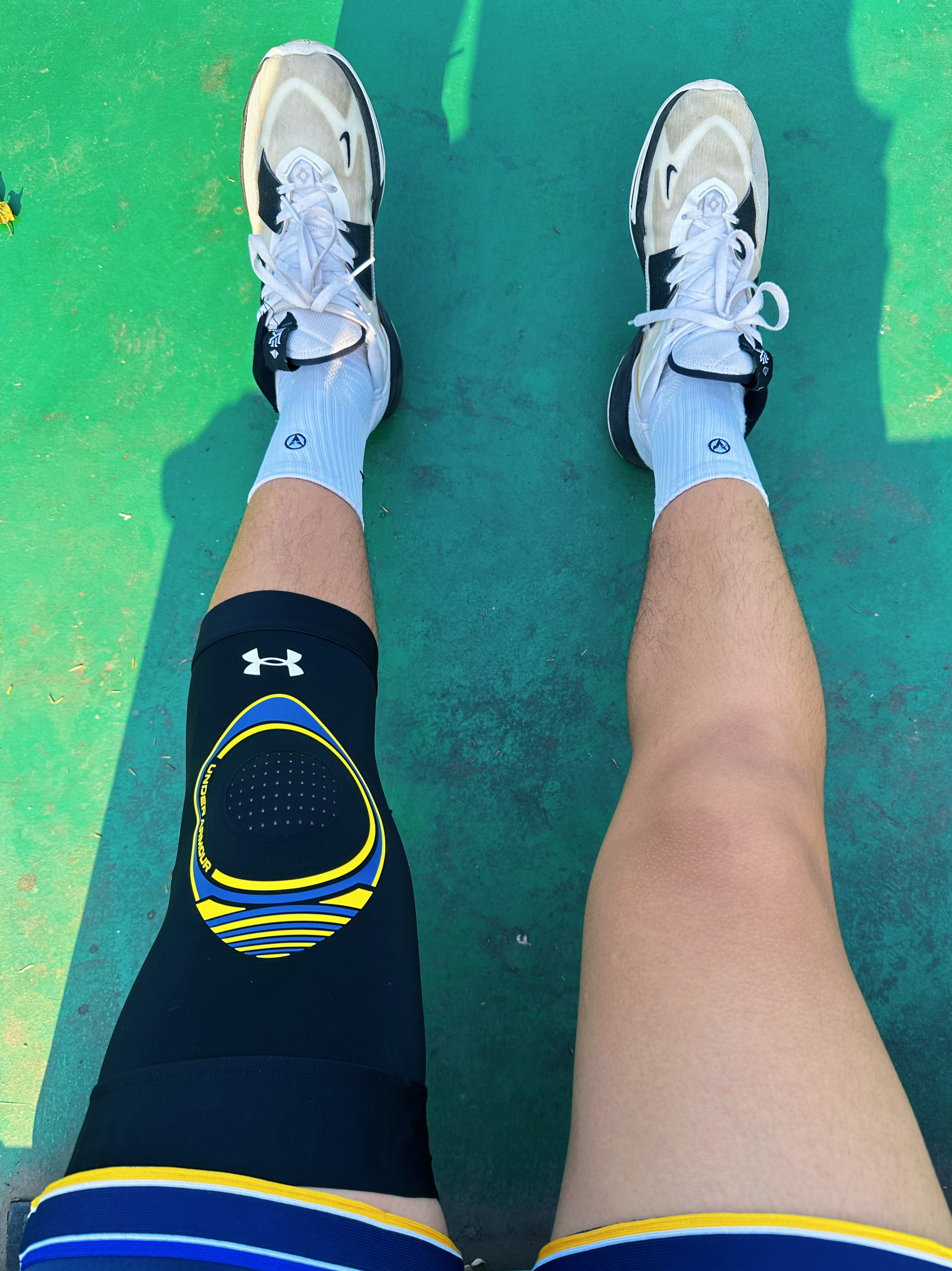 开学打球穿的要帅啊! 打球的兄弟都知道膝盖有多重要,不少运动员都因为膝盖问题遗憾的退役了!我今年打球都会带戴着护膝去球场,的确对我有很大的帮助! 今天早上打球戴的是 Under Armour 专业护膝,金州勇士的配色打球更帅了。整体面料比较轻薄弹性也很大,戴上之后感觉腿部发力更顺畅,落地也有一定的缓冲。脱下之后我发现护膝内部还有防滑处理,在跑动过程中一点都不会脱落,腿部没有感到闷热,透气性不错,还...