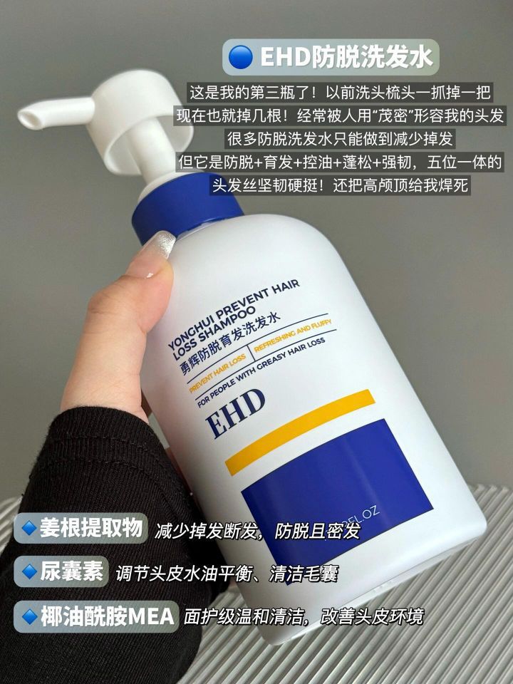 但凡你跟脱发/掉发/发际线后移/发缝宽沾边的 都去给我狠狠去用这个👉EHD防脱洗发水 这是我的第三瓶了!终于懂什么叫爆“发” 以前每次一洗头梳头就能薅掉一把 现在掉发量基本是以前的1/10 去做护理tony居然问我头发好多要不要打薄?! 从来没有一个防脱洗发水让我这么疯狂安利过👍 - 很多防脱洗发水只能做到减少掉发 但它是👉防脱+育发+控油+蓬松+强韧,五位一体! ☑️主打的就是姜...