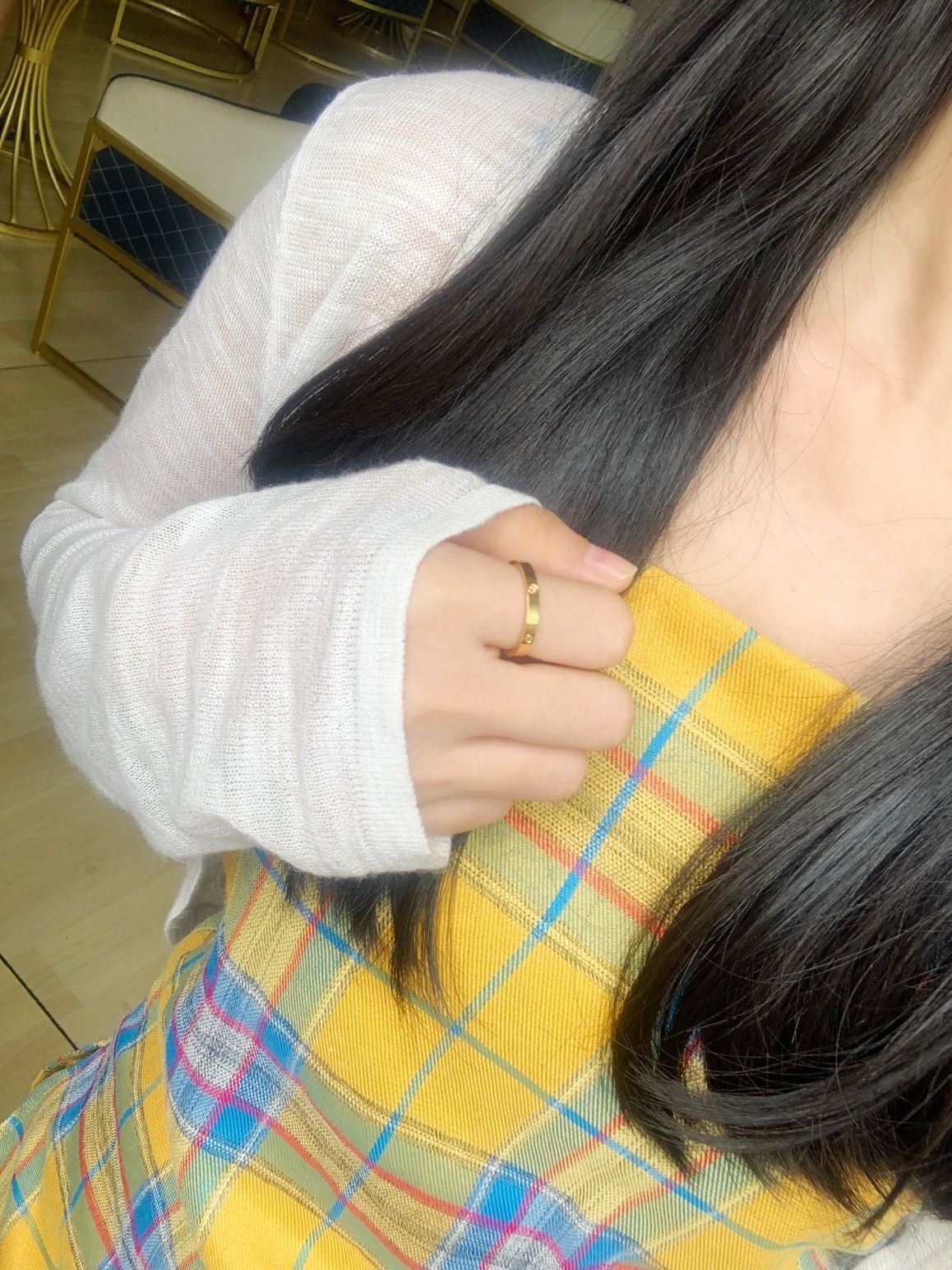 我也有黄金戒指啦!!挑了好久最终选择了老凤祥的这款光面钻纹素圈戒指💍,素圈上只有几个钻纹雕刻作为装饰,是简约中又带有独特,低调又大方,上手也很小巧精致,真的太喜欢我的戒指啦!!戴上就不想脱下来了
