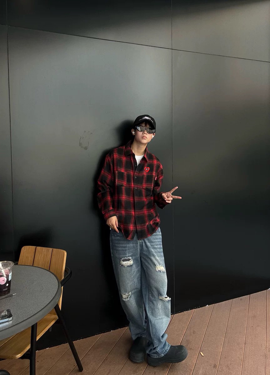 红色新气象,格子衫真的回头率满满,设计简约,整天剪裁宽松但上身又不会显得臃肿,百搭又好看,美式复古就靠它拉!