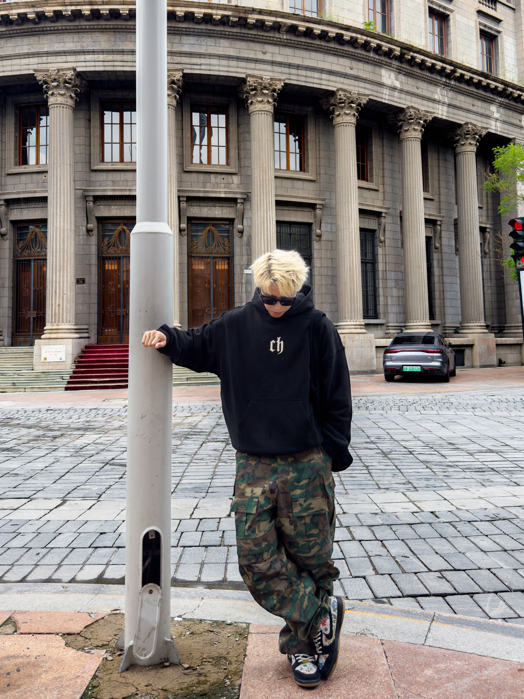 开学季要到了!赶紧把我推给需要的人! 卫衣➕迷彩裤 自由不羁的美式感 就用两件解决身材焦虑、搞定搭配难题 简简单单 但是好穿✔️ — 👔:CHINISM 👖:FARFROMWHAT 👟:Supreme dunk sb