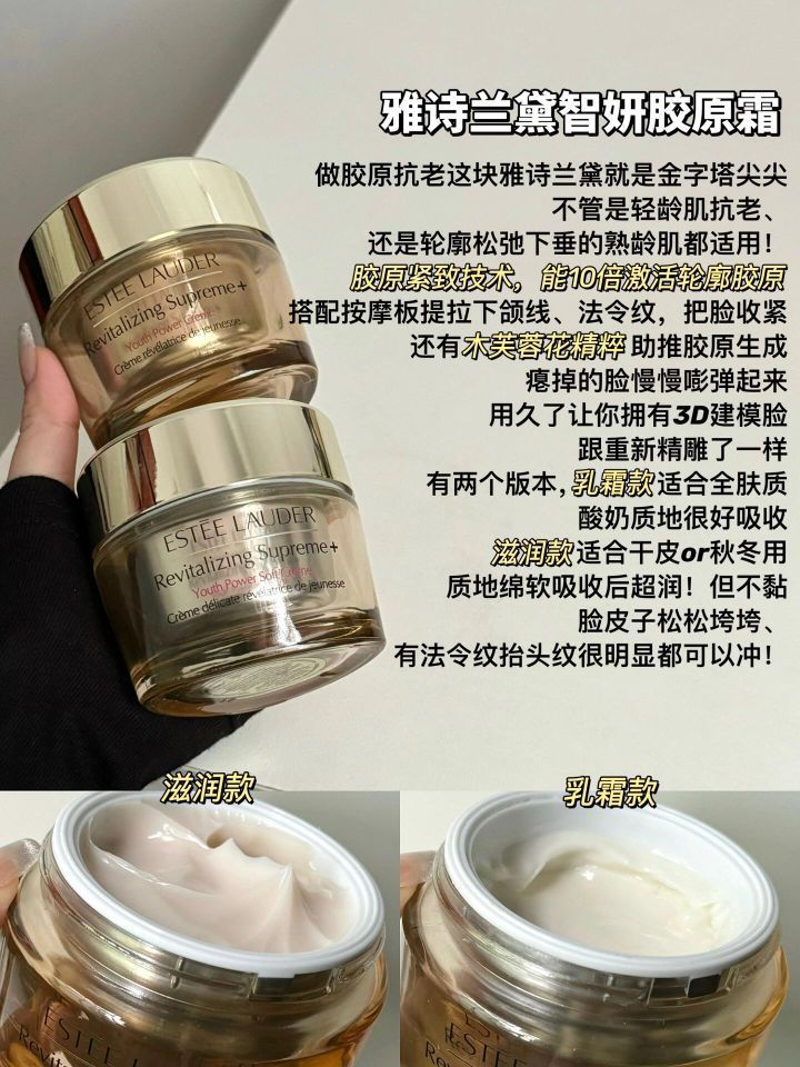 本篇笔记关联了【小样】Estee lauder/雅诗兰黛 智妍紧塑胶原面霜 淡纹抗老提拉紧致清爽型 清爽型 (油皮)、【小样】LA MER/海蓝之谜 经典奇迹云绒面霜 提亮滋润淡化细纹 云绒霜3.5ml等商品,为用户提供真实的使用体验和购买参考。