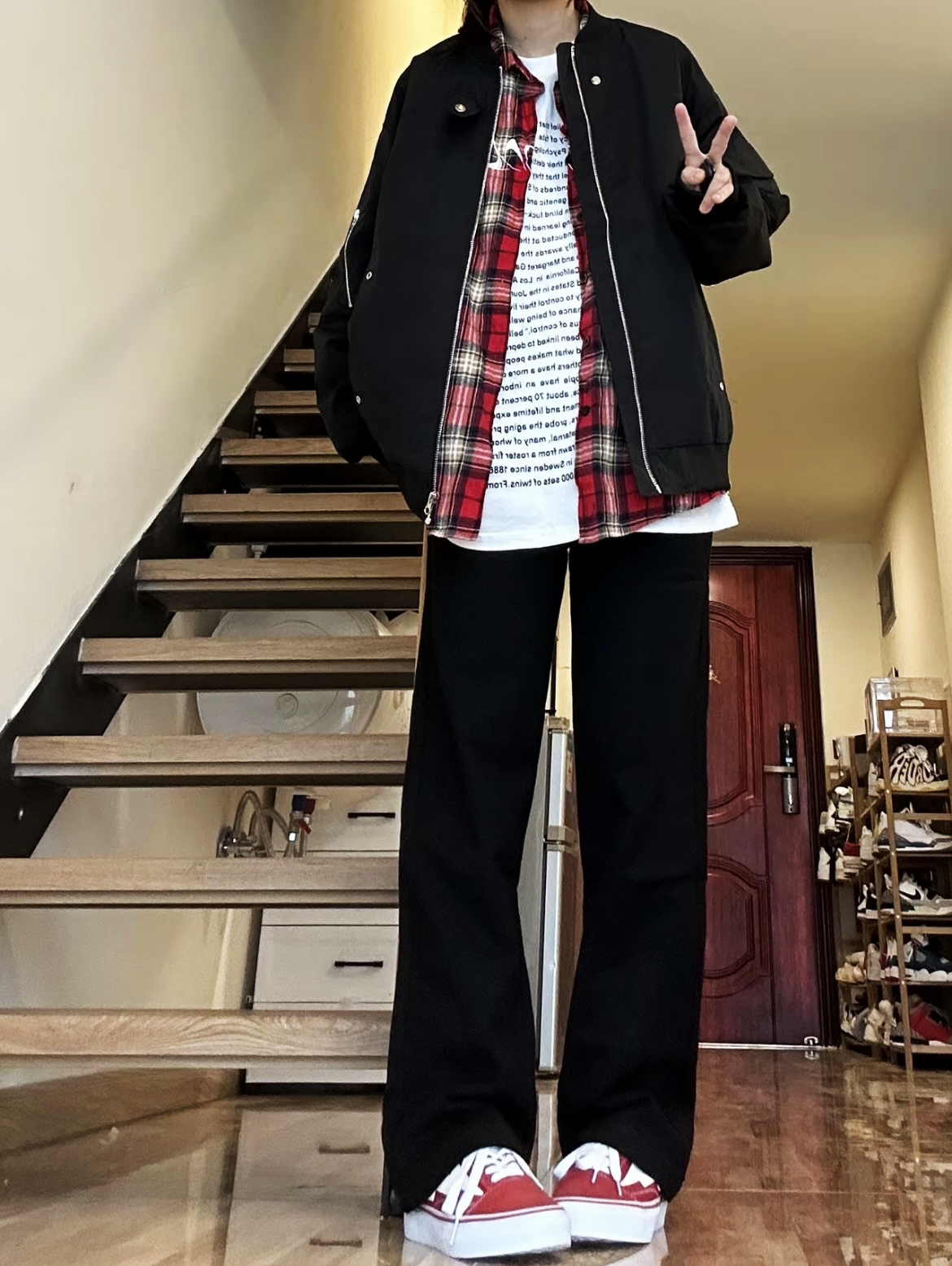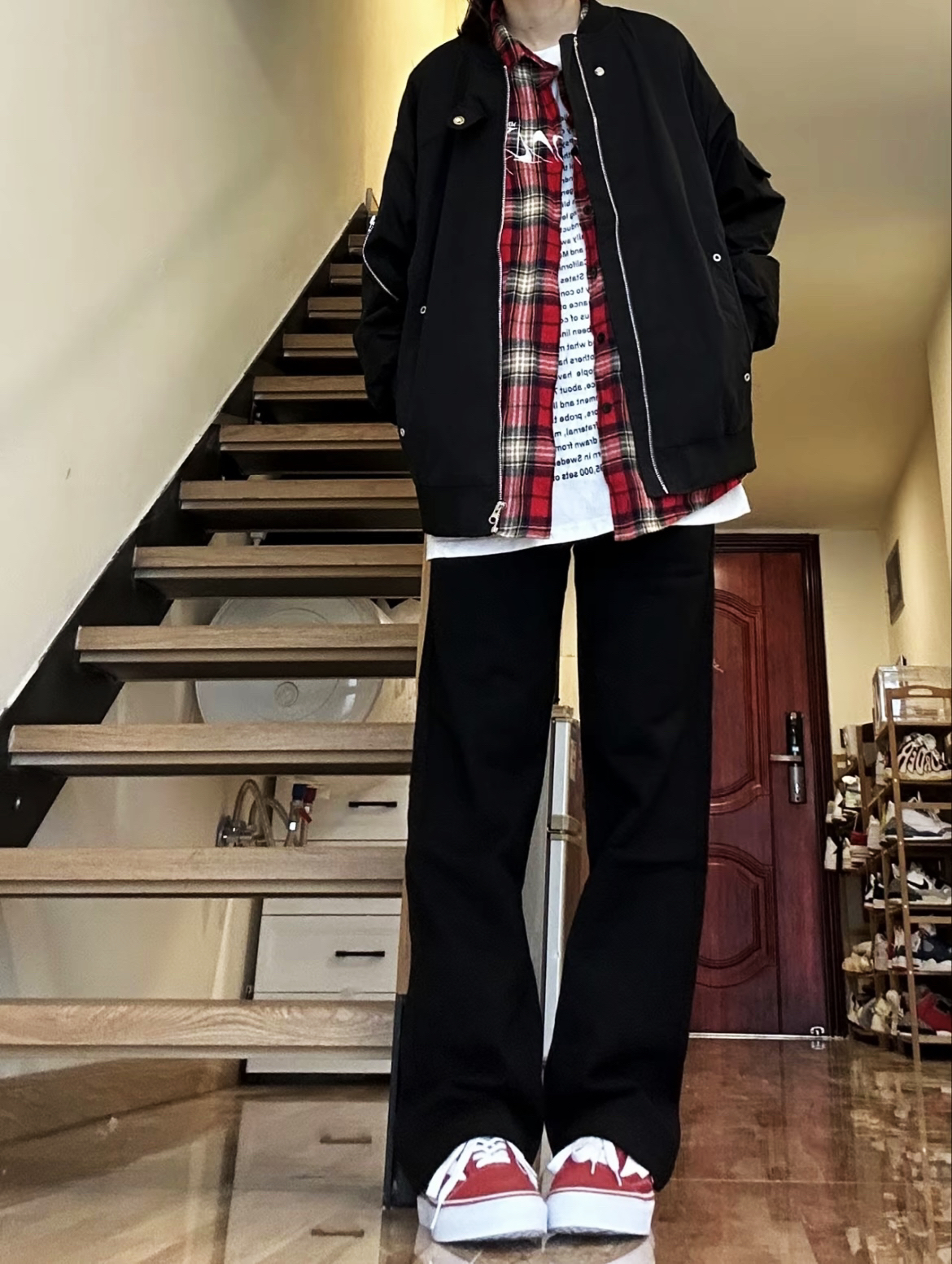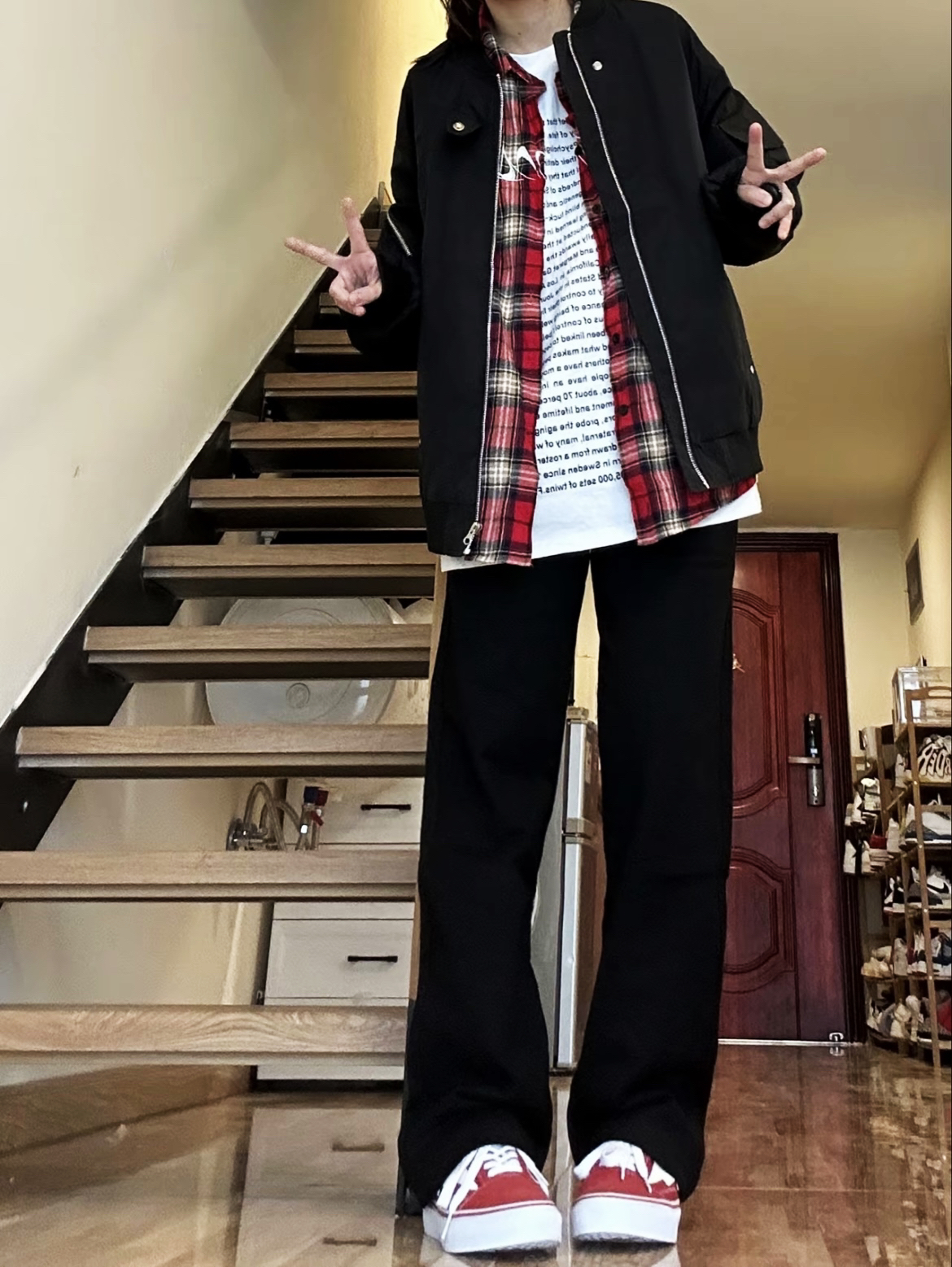 【黑红配飞行夹克叠穿格子衬衫➕休闲直筒裤太好看了!!】,由用户 补药难瘦啊 分享,来自河南。这是一篇来自识货社区的真实用户分享笔记。