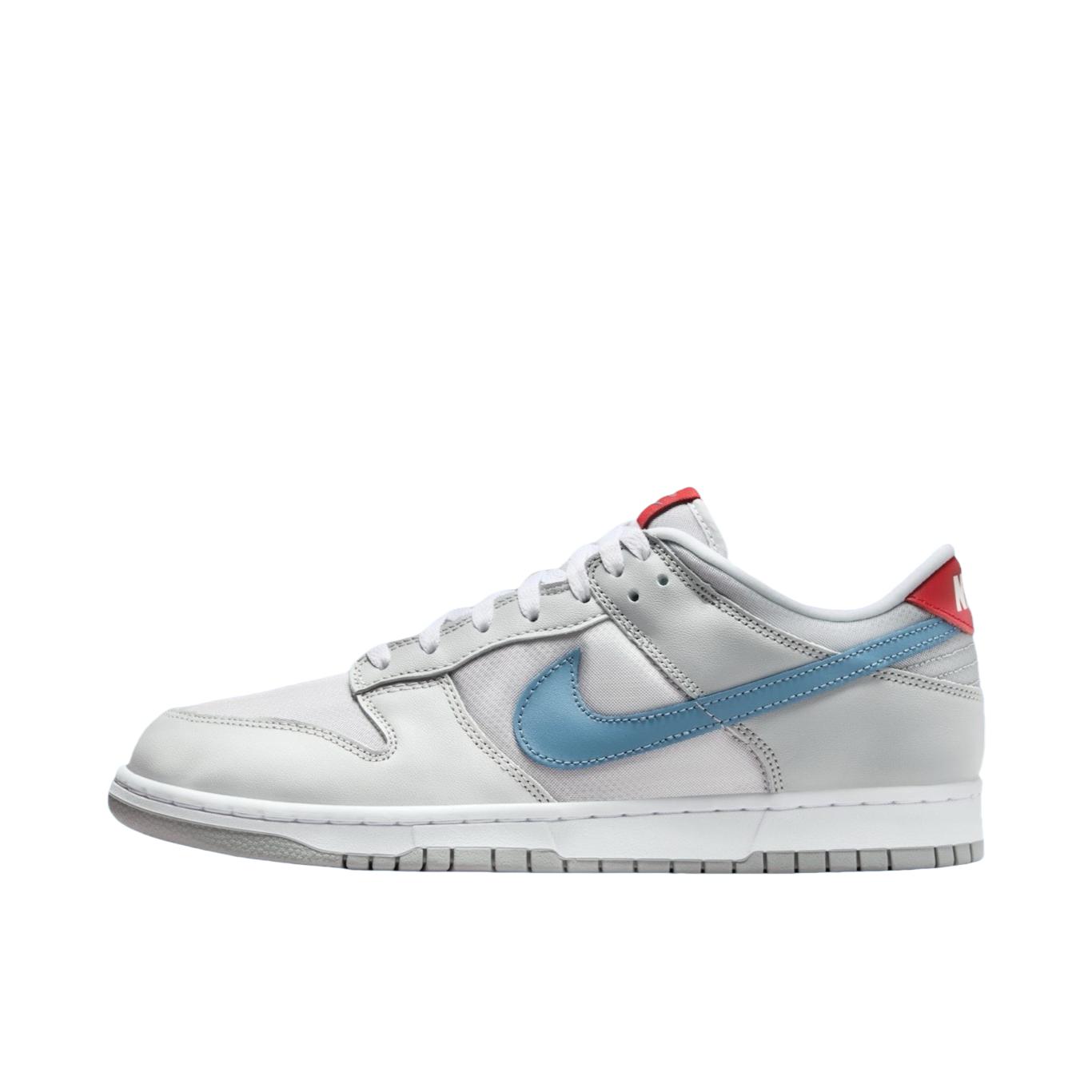 Nike Dunk Low 舒适百搭 防滑 男女同款 银蓝色 酷酷的银灰色鞋面,时尚感还真不错!鞋面材质比较特别,更显高级感! 鞋舌和后跟红色点缀,吸睛效果还不错,平时搭配牛仔裤还是挺酷的!