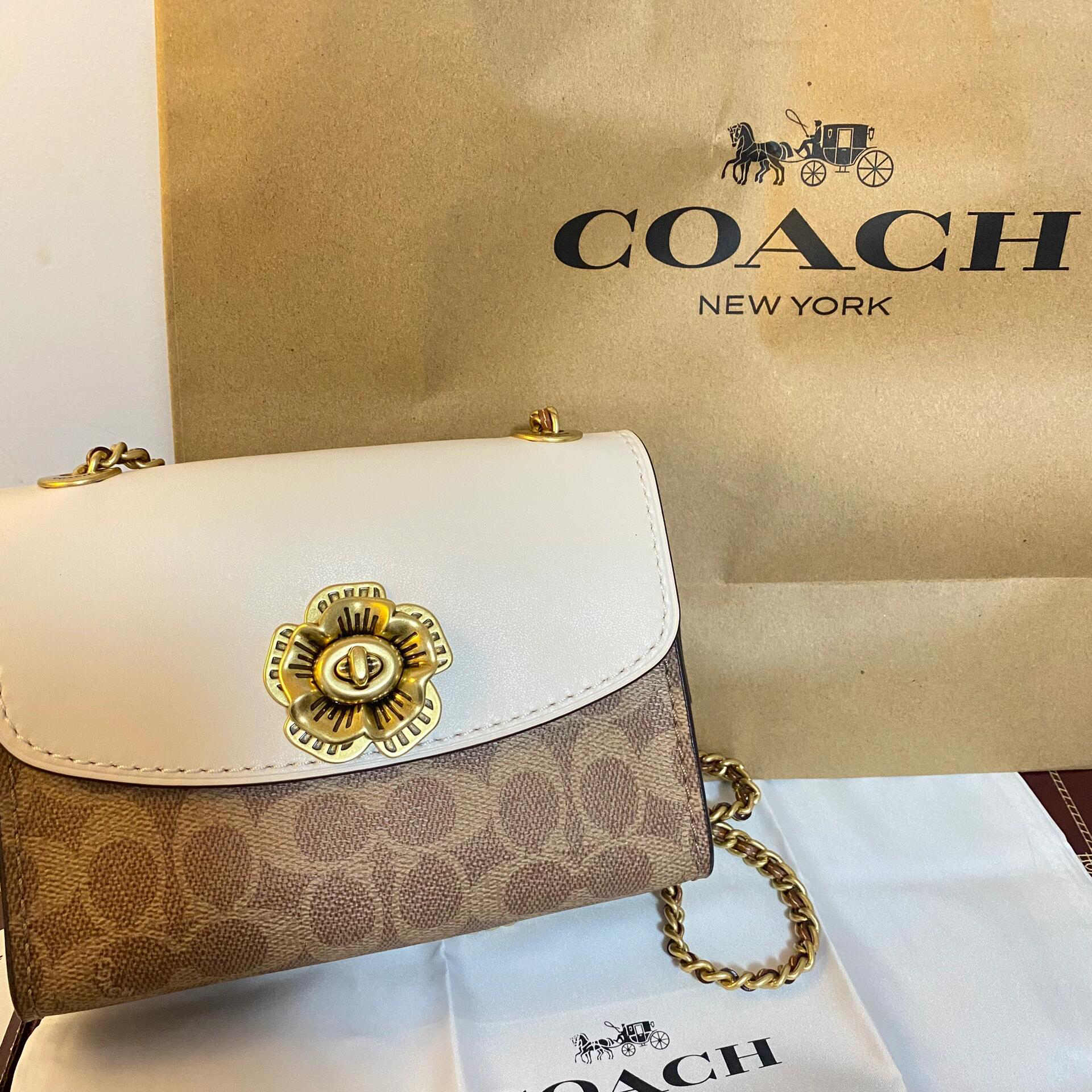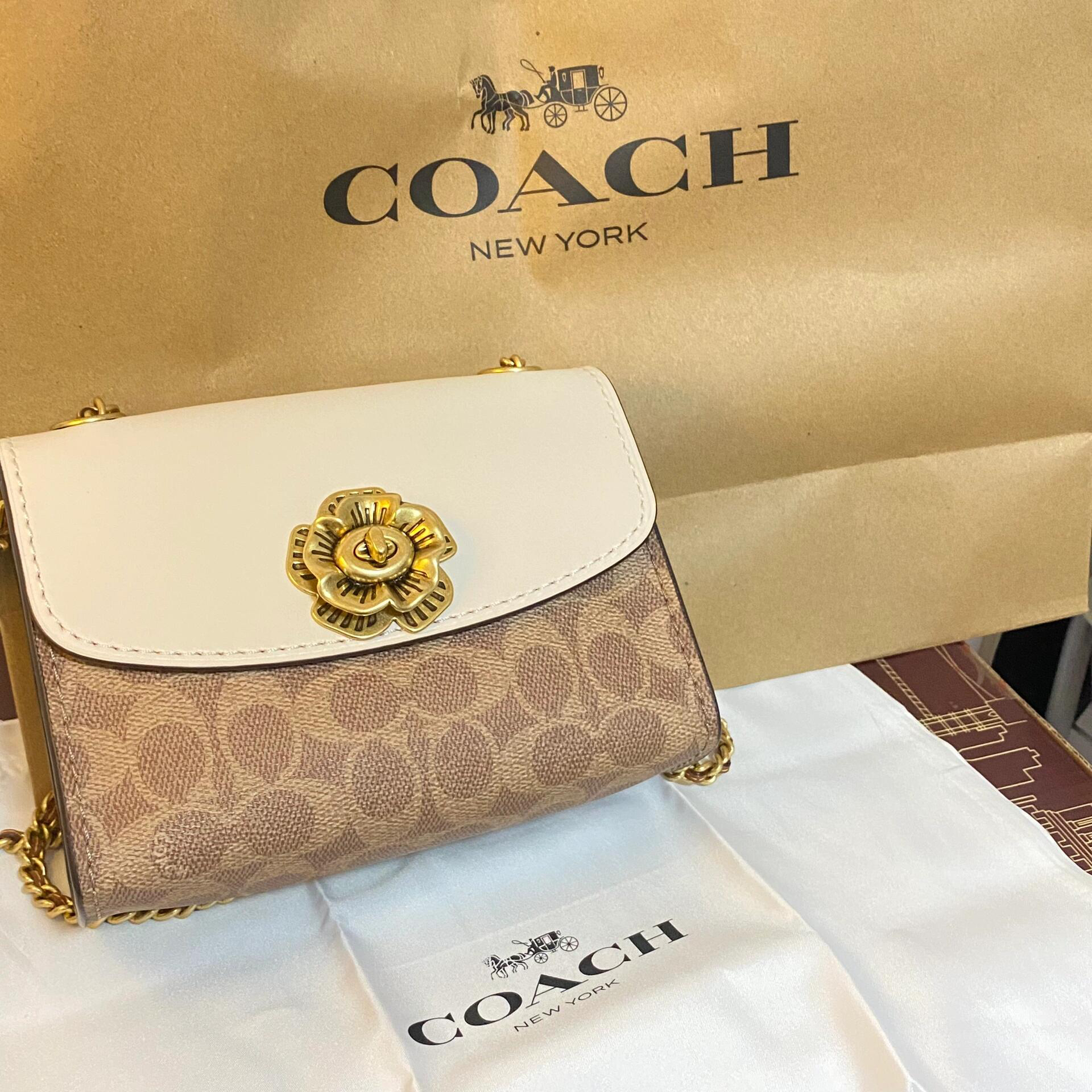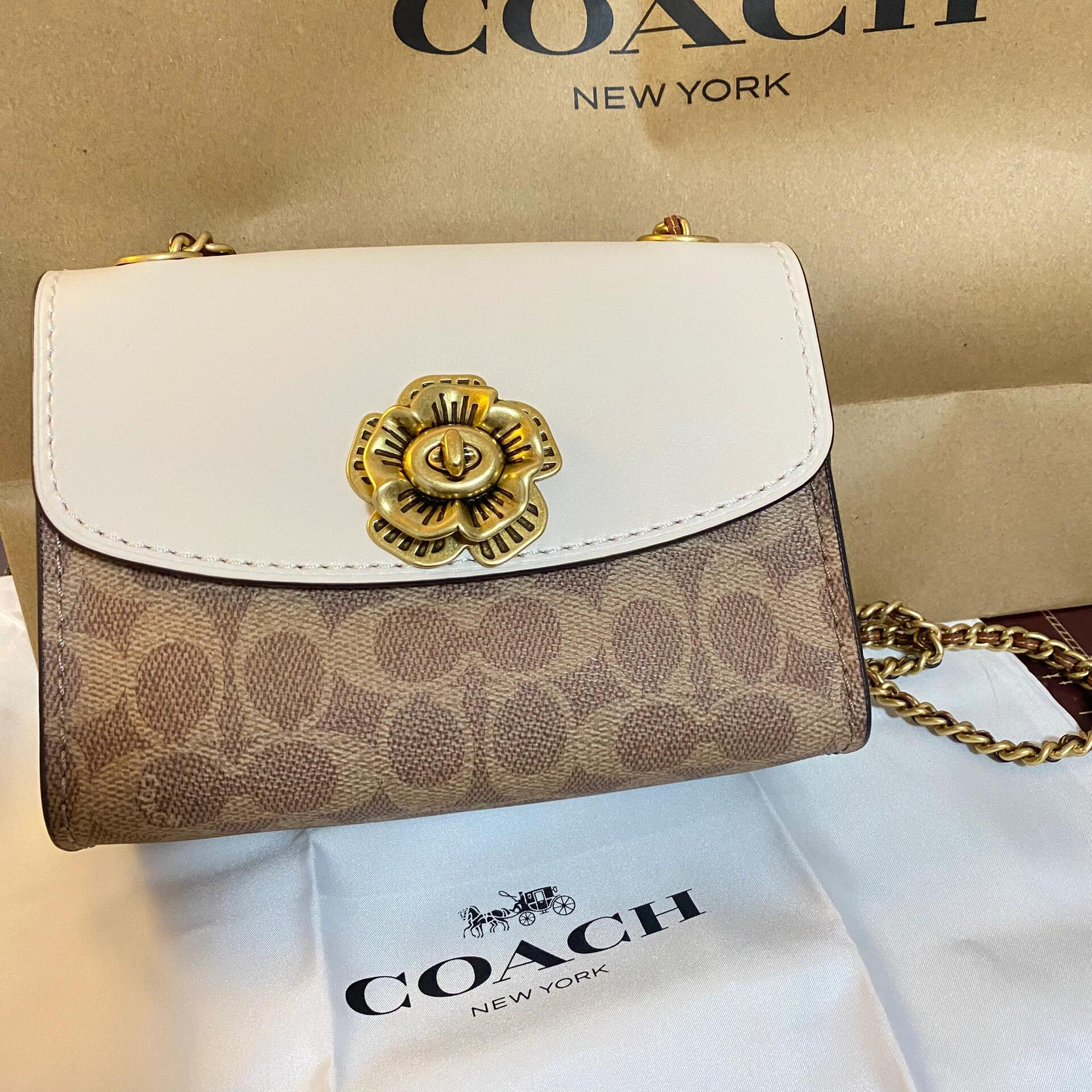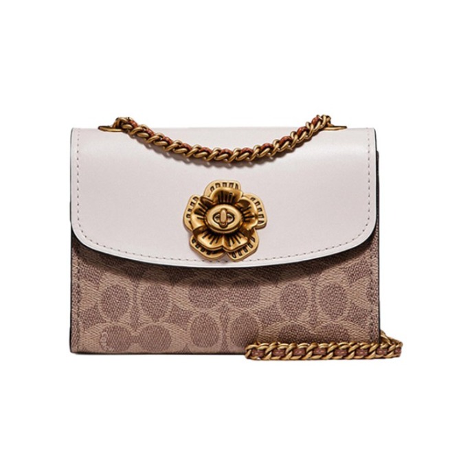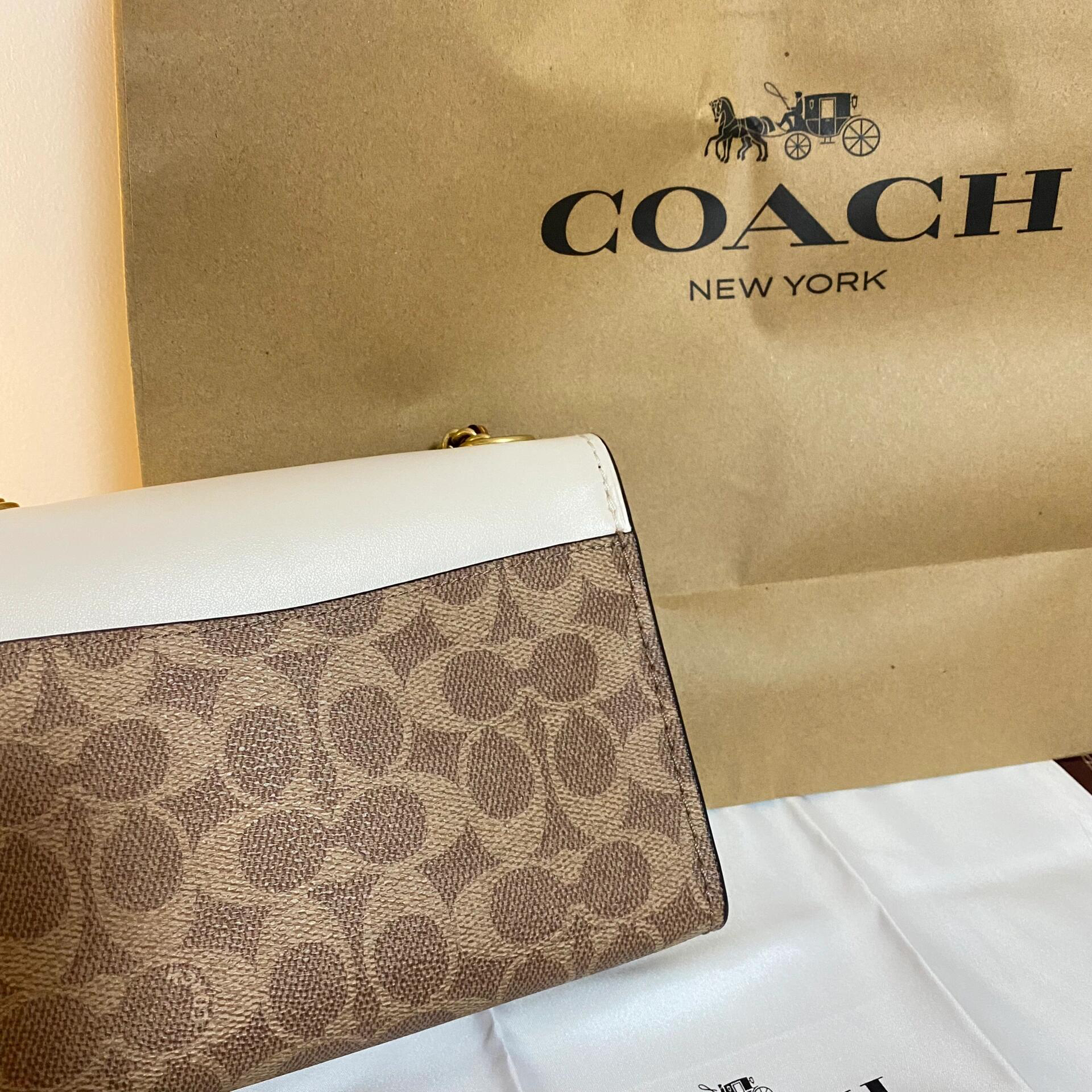 本篇笔记关联了Coach Parker 18 迷你 山茶花链条铆钉专柜款老花帆布拼皮单肩斜挎包 白棕拼色等商品,为用户提供真实的使用体验和购买参考。