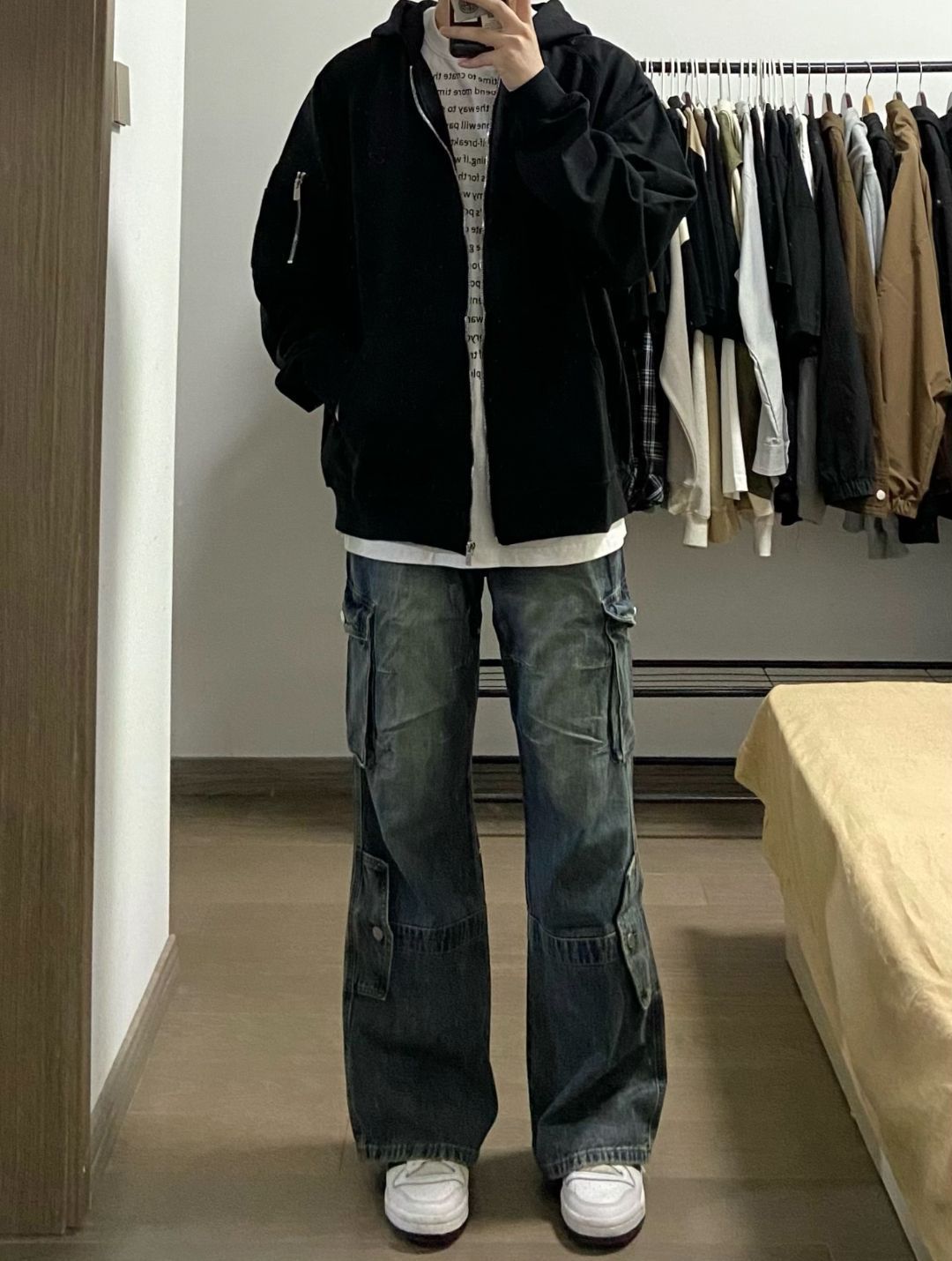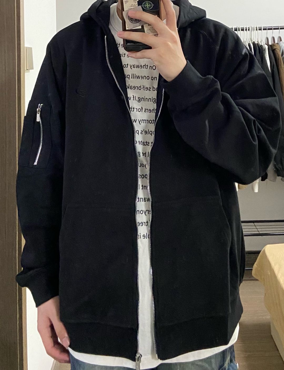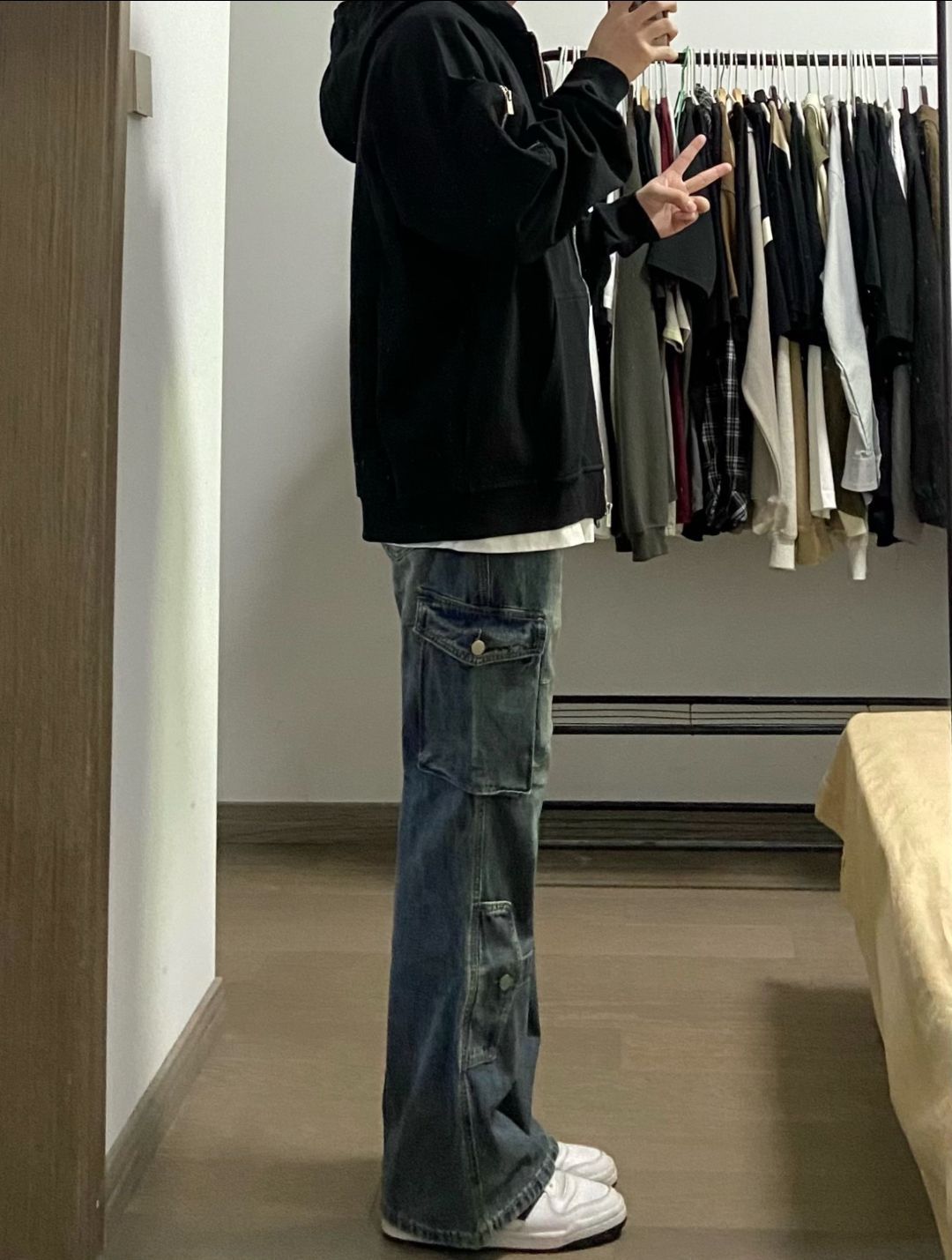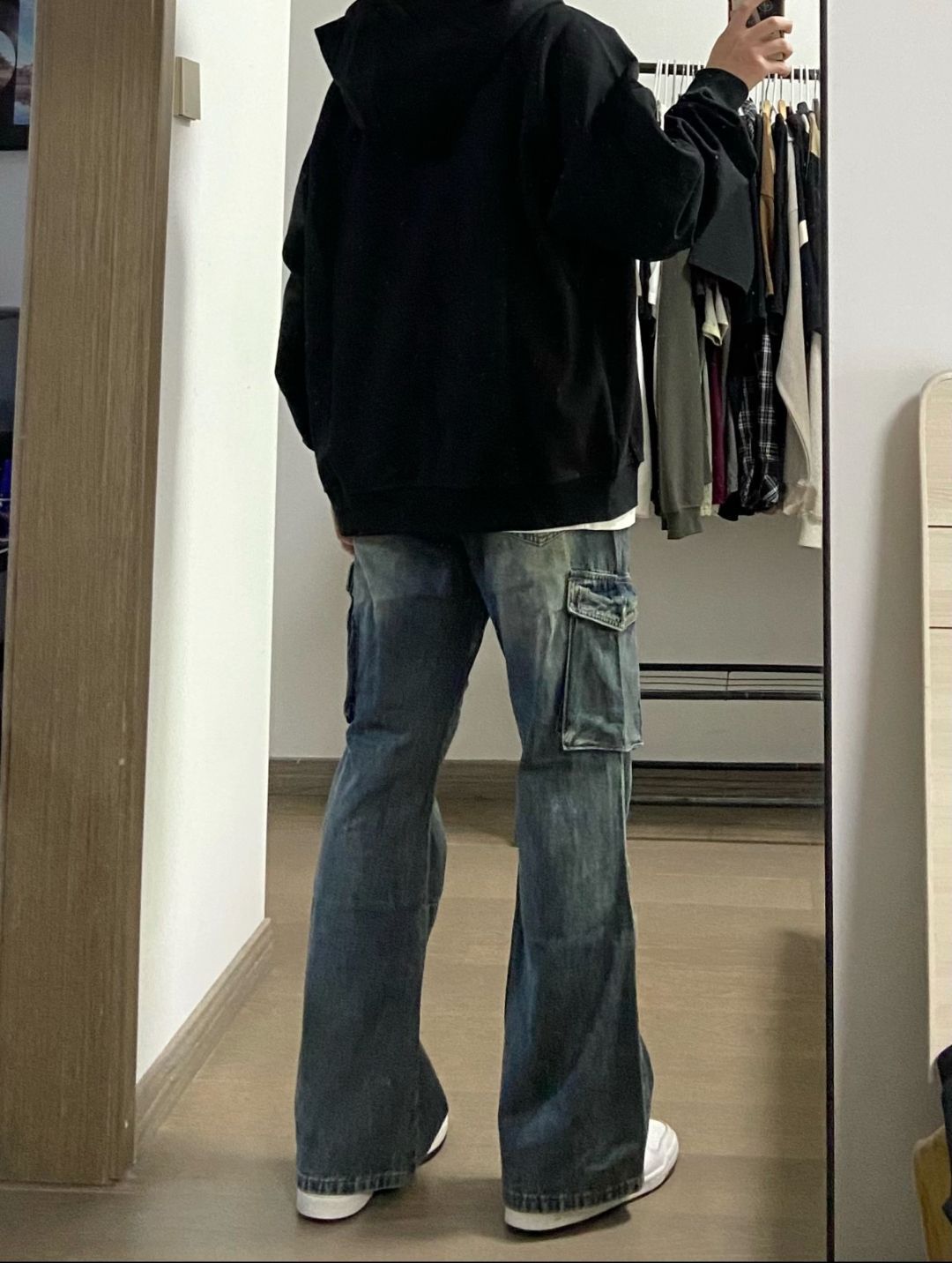 身高|体重: 🧍♂️ 穿搭风格: 👔 上衣:nuknowtal 版型宽松时尚,面料舒适柔软 纯黑色很简约的一款连帽开衫卫衣 适合春秋季节穿,很百搭 👖 下装:新因素 版型宽松微喇,面料舒适柔软 复古蓝色真的太好看了,非常百搭多口袋涉设计, 整体穿搭很有层次感,真的好看又百搭 👟 鞋子:adidas 百搭舒适,厚度适中,天热的时候不捂脚, 天冷不冻脚 🎒配饰: