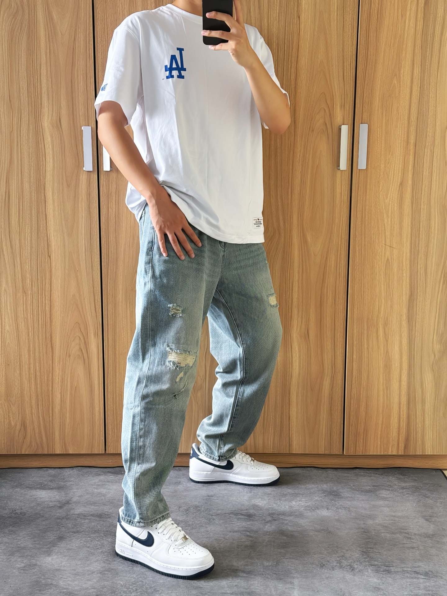 今日上身白色小Logo短袖T恤 裤子来自马克华菲复古做旧直筒牛仔裤 搭配一双白蓝空军板鞋 清爽感满满的校园穿搭 简单的白T搭配牛仔裤 清爽又干净 裤子面料柔软穿着舒适 破洞的设计 潮流感十足 好穿又百搭 最近上身穿着频率最高的裤子啦~ #谁还不是个牛仔了 #男生的宝藏裤子推荐 #夏天必买的牛仔裤 #一键分享宝藏牛仔休闲裤 #我的夏日宝藏牛仔裤 #带上返校新装备 #返校我要穿这身 #酷飒男女情侣款...