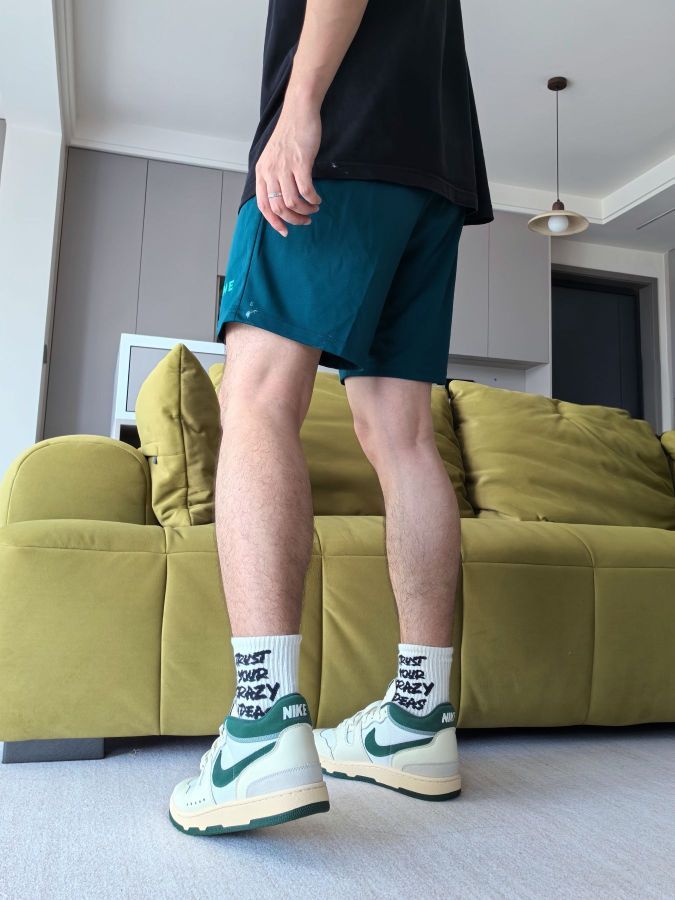 这样搭配就挺Old school风了 运动短裤搭配长袜,最重要是有一双白色中帮板鞋 比较小众的一款球鞋 要注意的是后跟包裹性特别强,看每个人能不能适应了,建议袜子可以穿厚一点