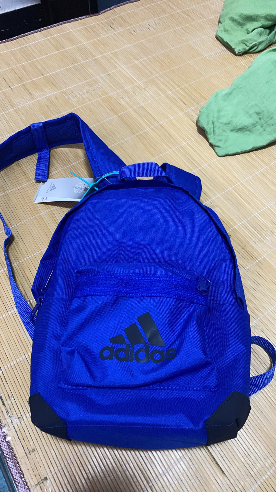#阿迪小书包 这是阿迪的一个儿童款的书包 虽然是是儿童款 但是163的身高肩带拉到最长背起来也是刚刚好 里面的容量不是很大 但是笔记本什么的还是ok的 要是上学那样需要容量大的需要慎入 在配色和质量方面都是非常完美滴😍