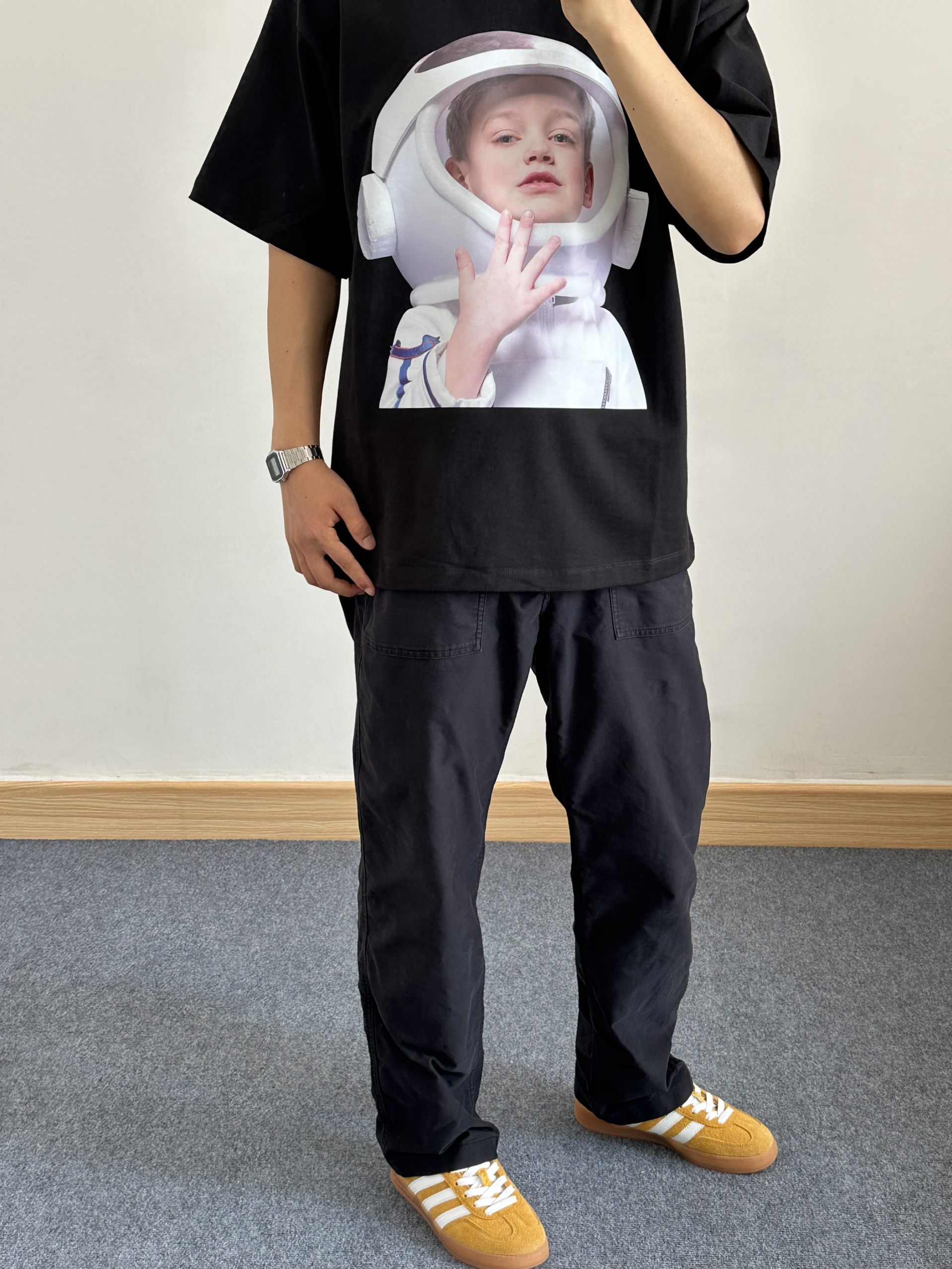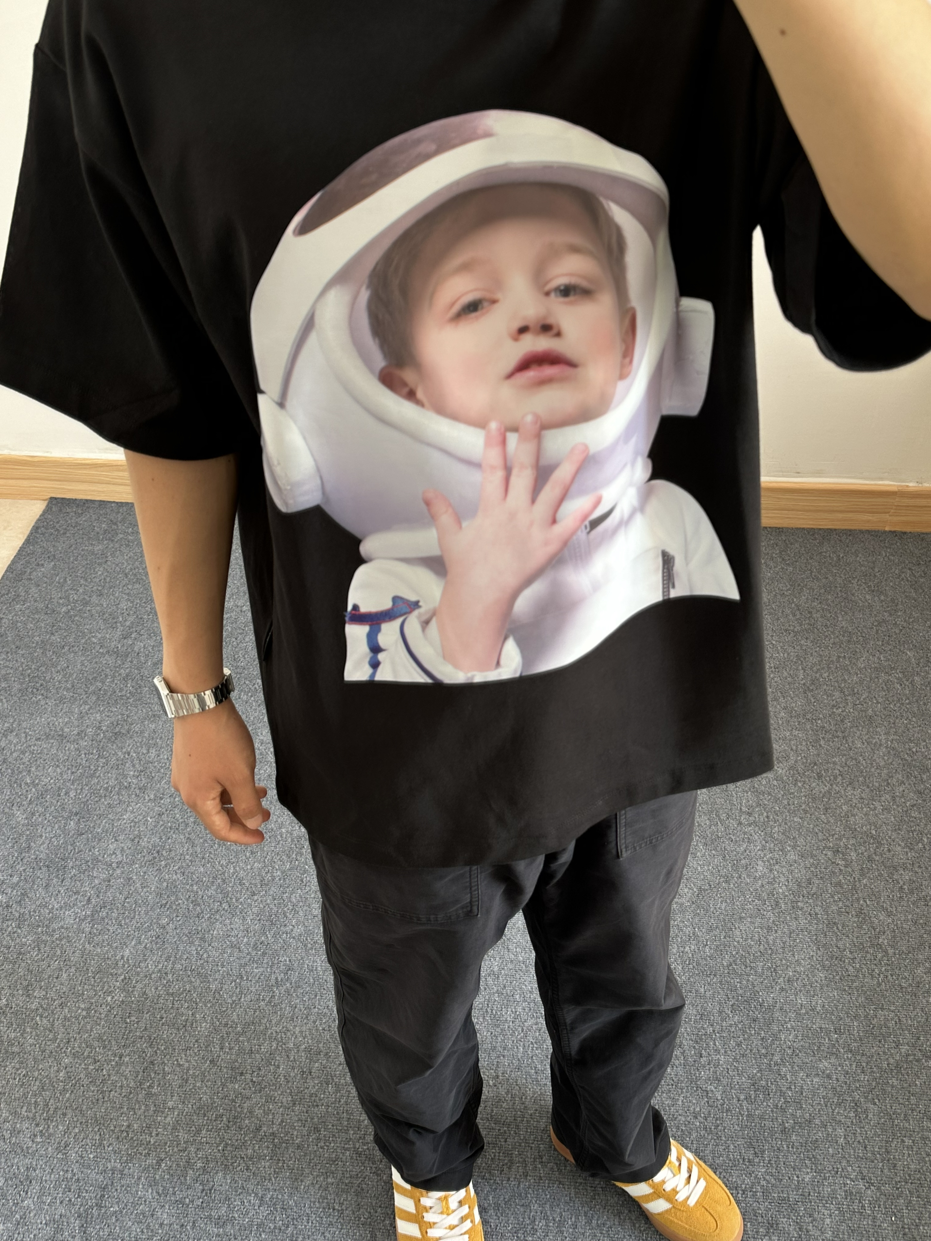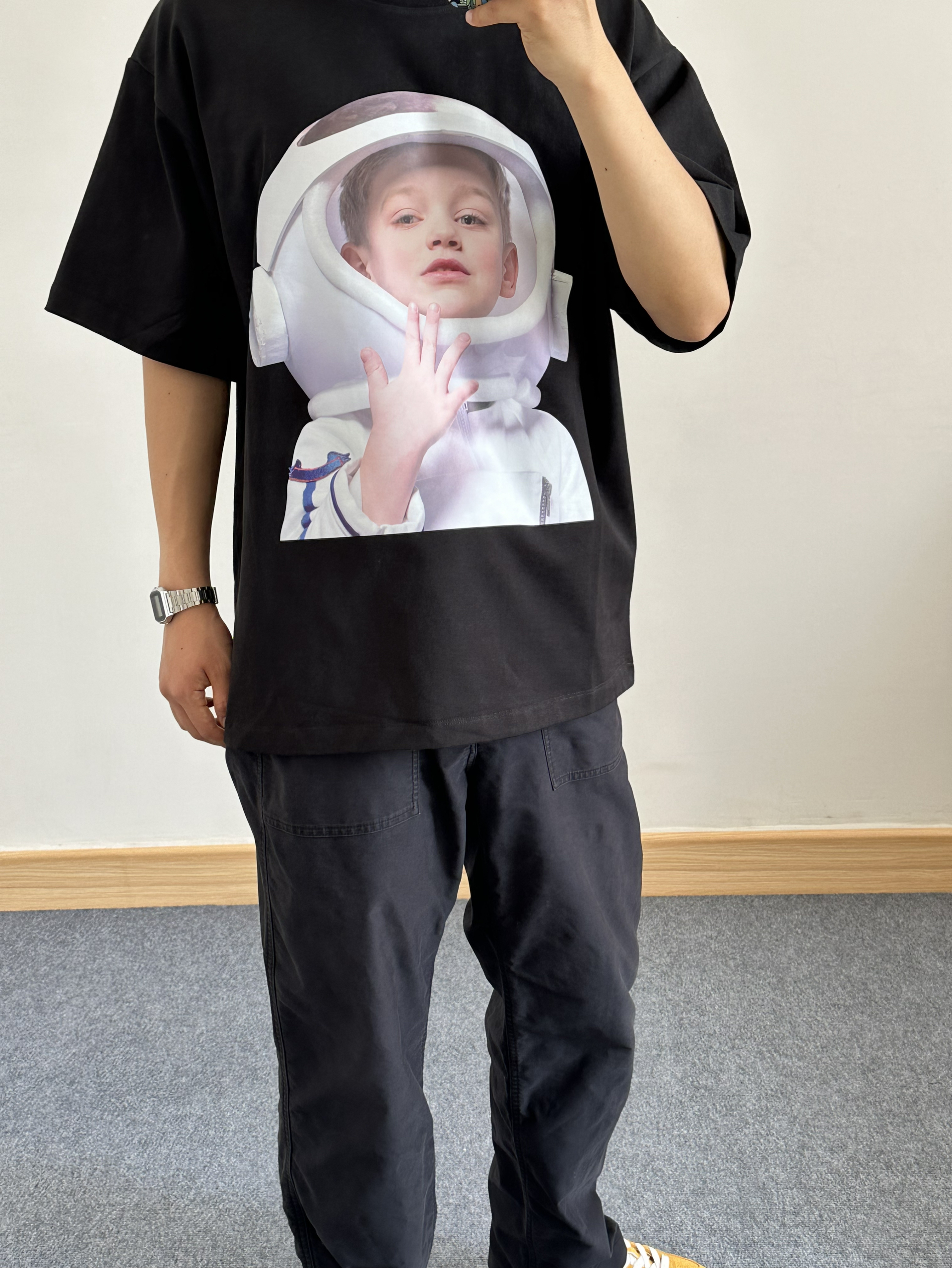 今日份穿搭分享 ~~~ 👔宇航员短袖 卡通的图案 很适合年轻人 瞬间让自己变回大学生 版型设计也很不错 符合身材 不会显的很胖的 ~~~ · 📒177 // 135 🩳 L ·