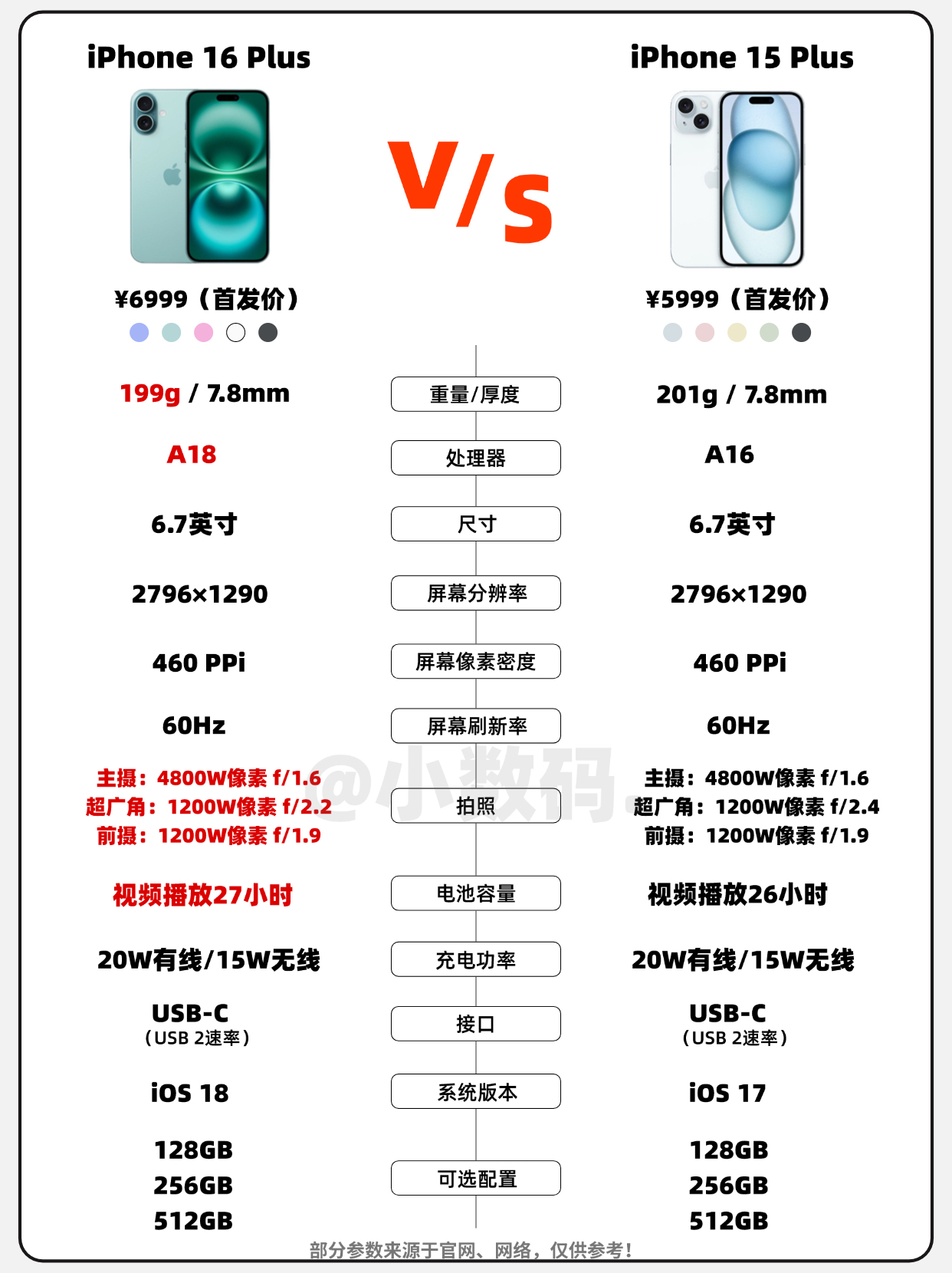 【一图看懂|iPhone 16新旧款配置对比🔥】,由用户 小数码 分享,来自贵州。这是一篇来自识货社区的真实用户分享笔记。