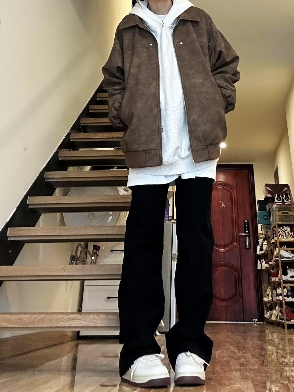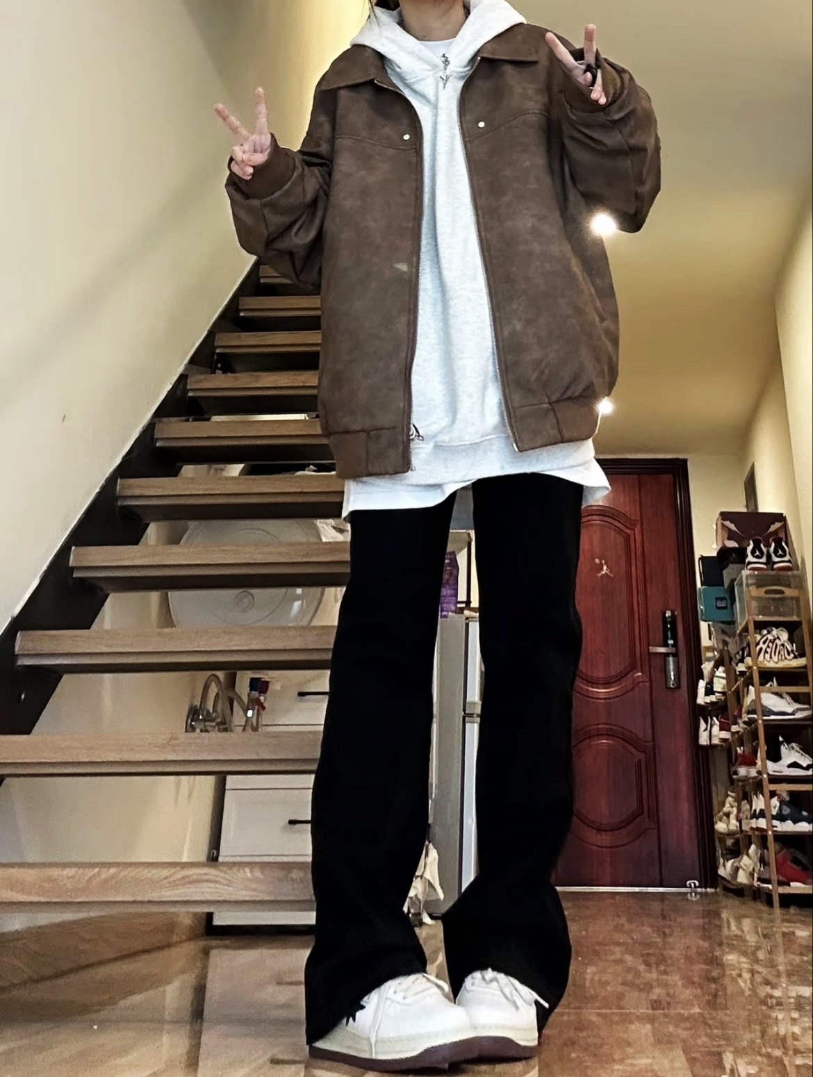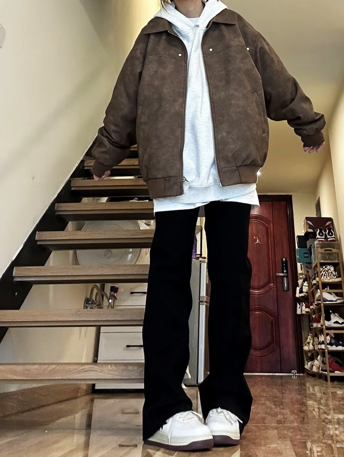 【棕色皮衣叠穿灰卫衣🥰➕黑色直筒牛仔裤太帅了吧!】,由用户 补药难瘦啊 分享,来自河南。这是一篇来自识货社区的真实用户分享笔记。