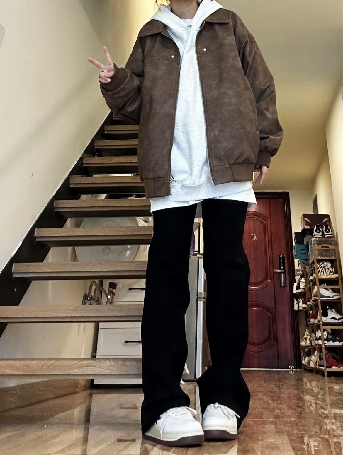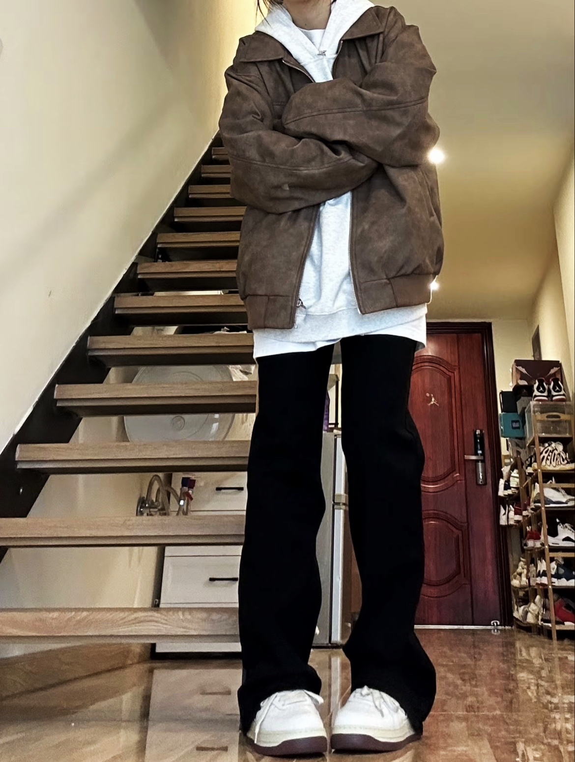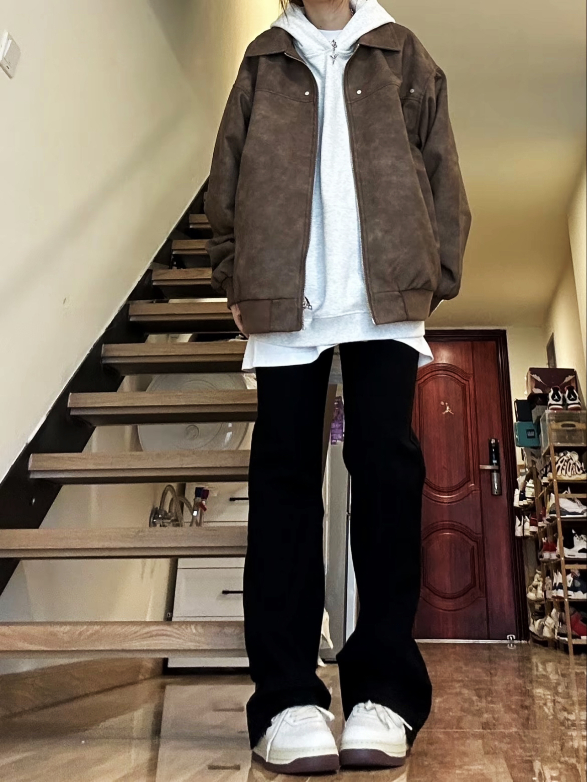 【棕色皮衣叠穿灰卫衣🥰➕黑色直筒牛仔裤太帅了吧!】,由用户 补药难瘦啊 分享,来自河南。这是一篇来自识货社区的真实用户分享笔记。