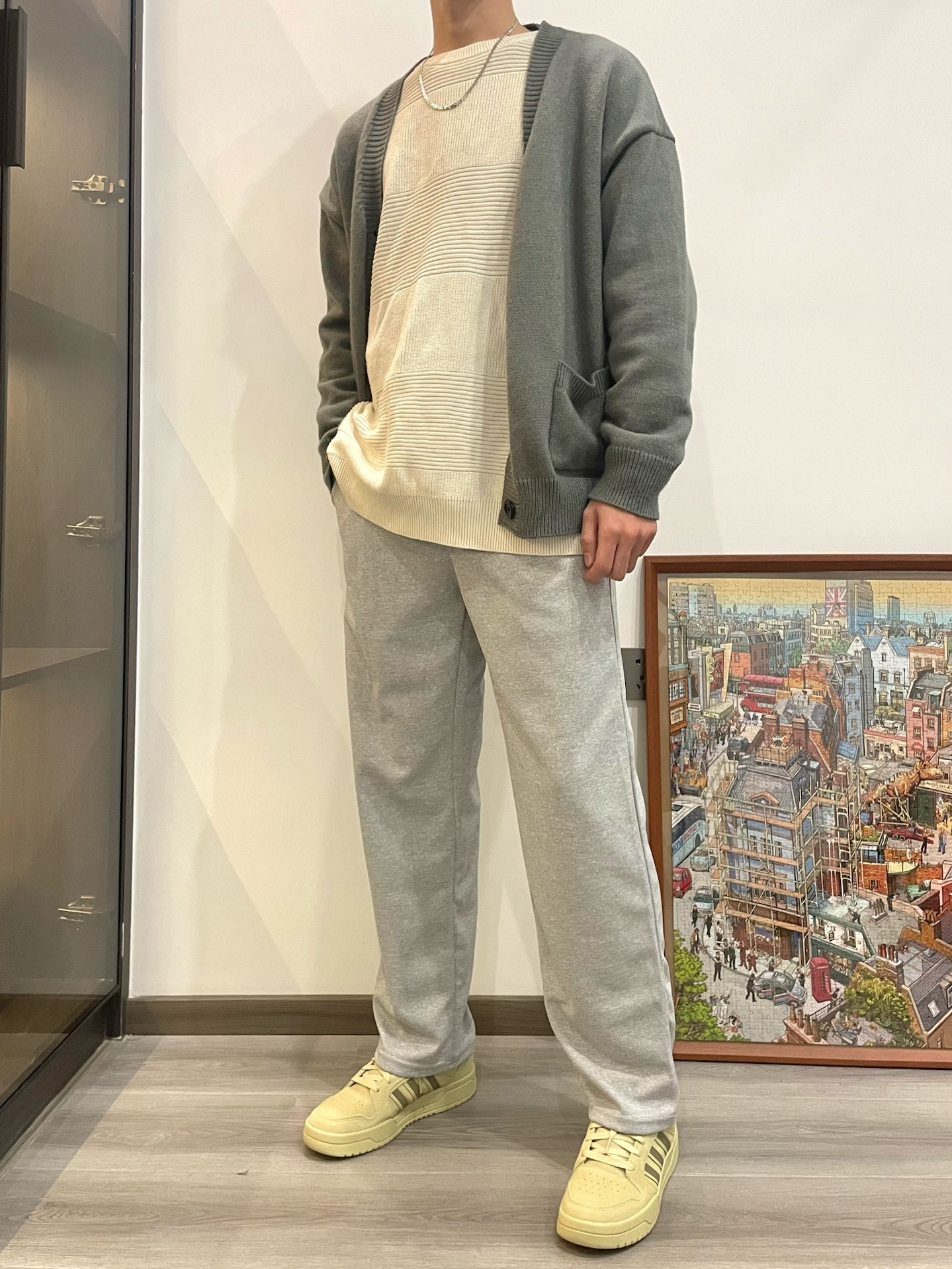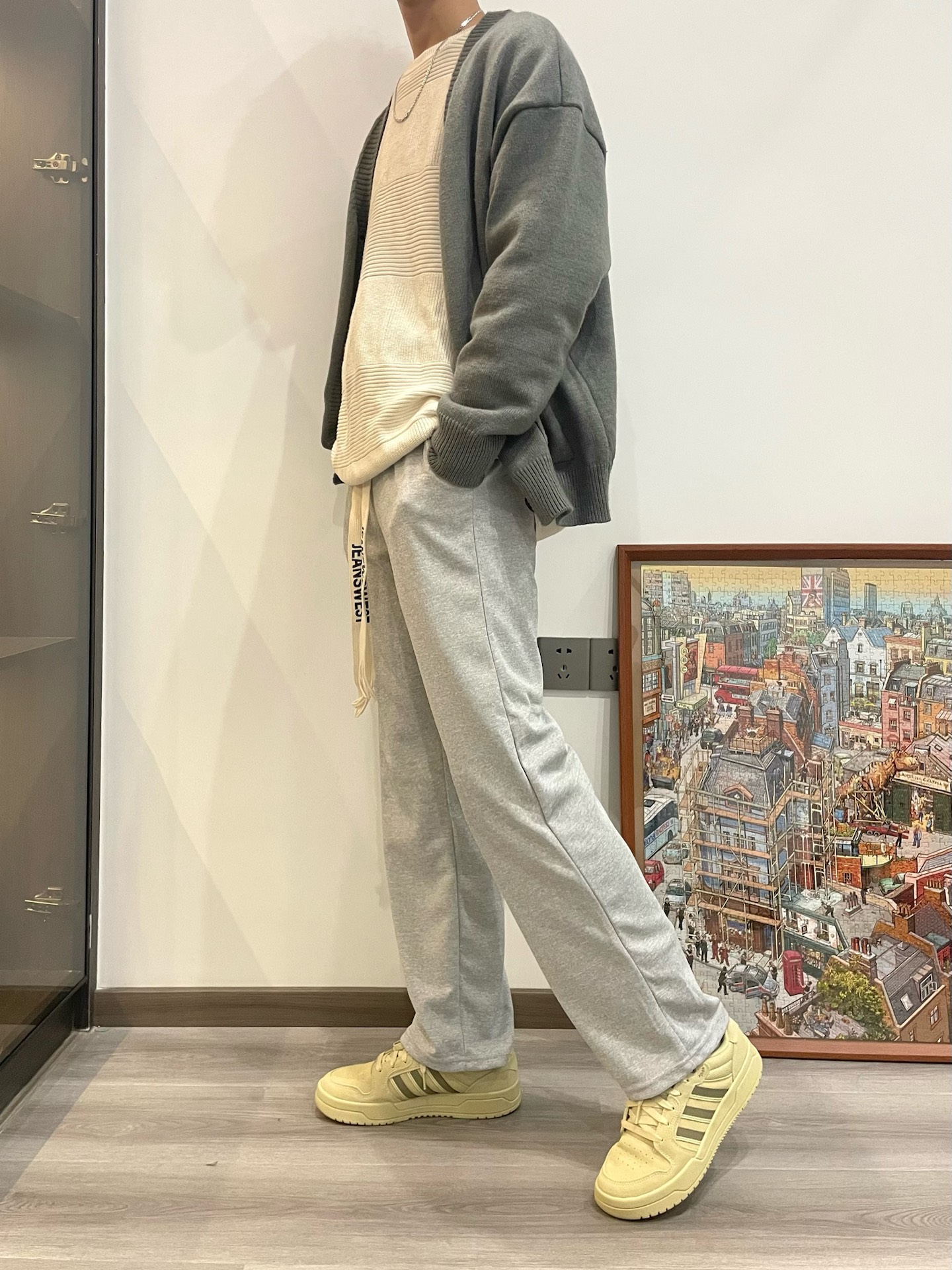 👔:米白色圆领宽松毛衣➕V领灰色开衫针织毛衣外套。 👖: 真维斯浅灰纯色直筒裤,修身版型,上身垂感蛮好的穿着亲肤,就是裤长偏短,要宽松点可以买大一码。 👟:Adidas Entrap板鞋,百搭复古风浅芥末绿配色,鞋面采用牛抛层革➕织物拼接,上脚脚感稍微偏硬,尺码合适。 --------------- 裤子: #真维斯 /XL 鞋子: #adidas neo /41 -----------...