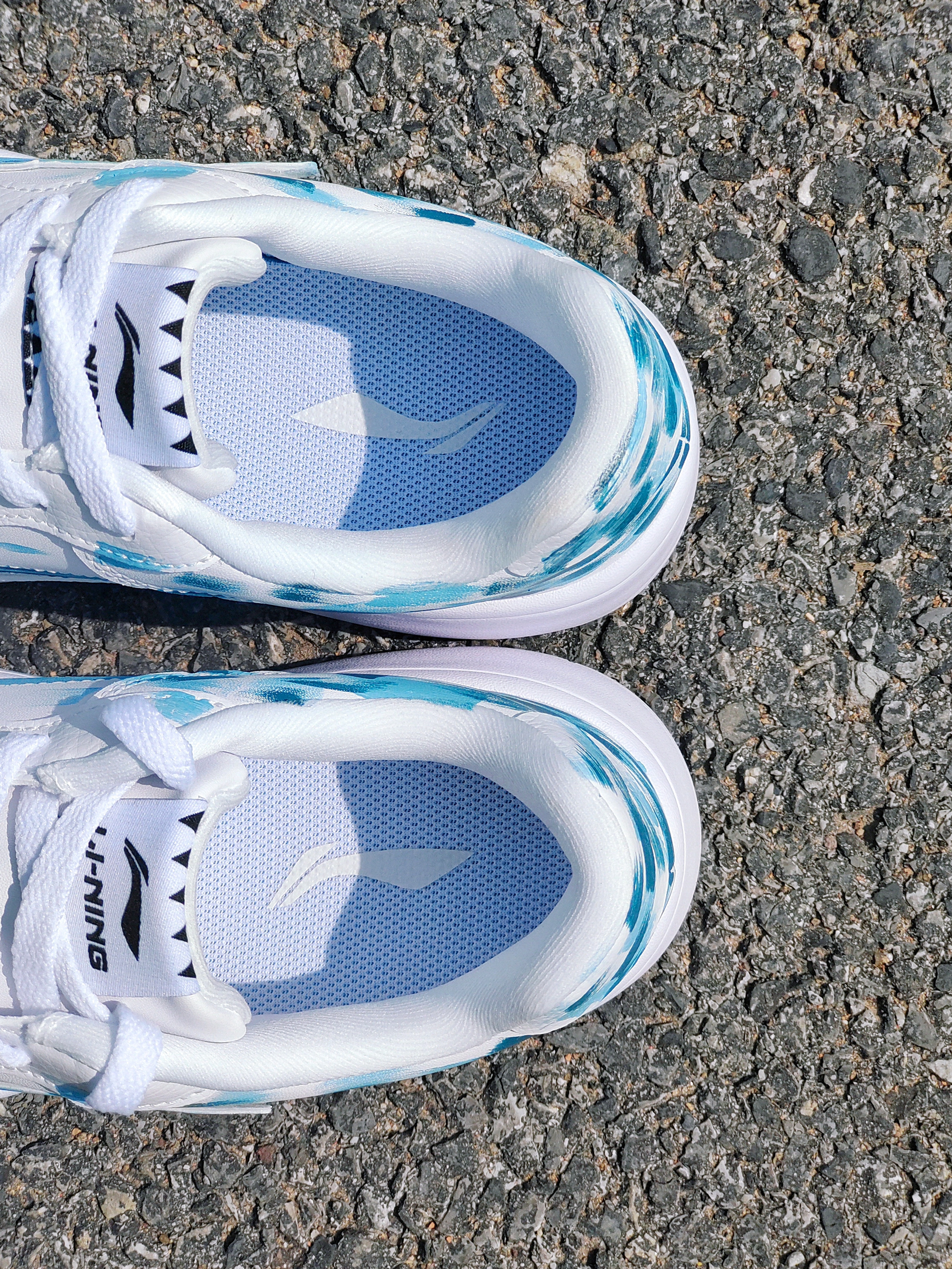 本人真嘟是重度的蓝色爱好者,对这种低饱和度的水蓝色拒绝不了~ 鞋子整体是白蓝配色的,侧边的logo做了星空的图案,比较的有层次感 我平时喜欢搭配运动休闲风格的衣服 鞋子的脚感还可以,单只鞋重是比较轻的了 开学好鞋又找到啦