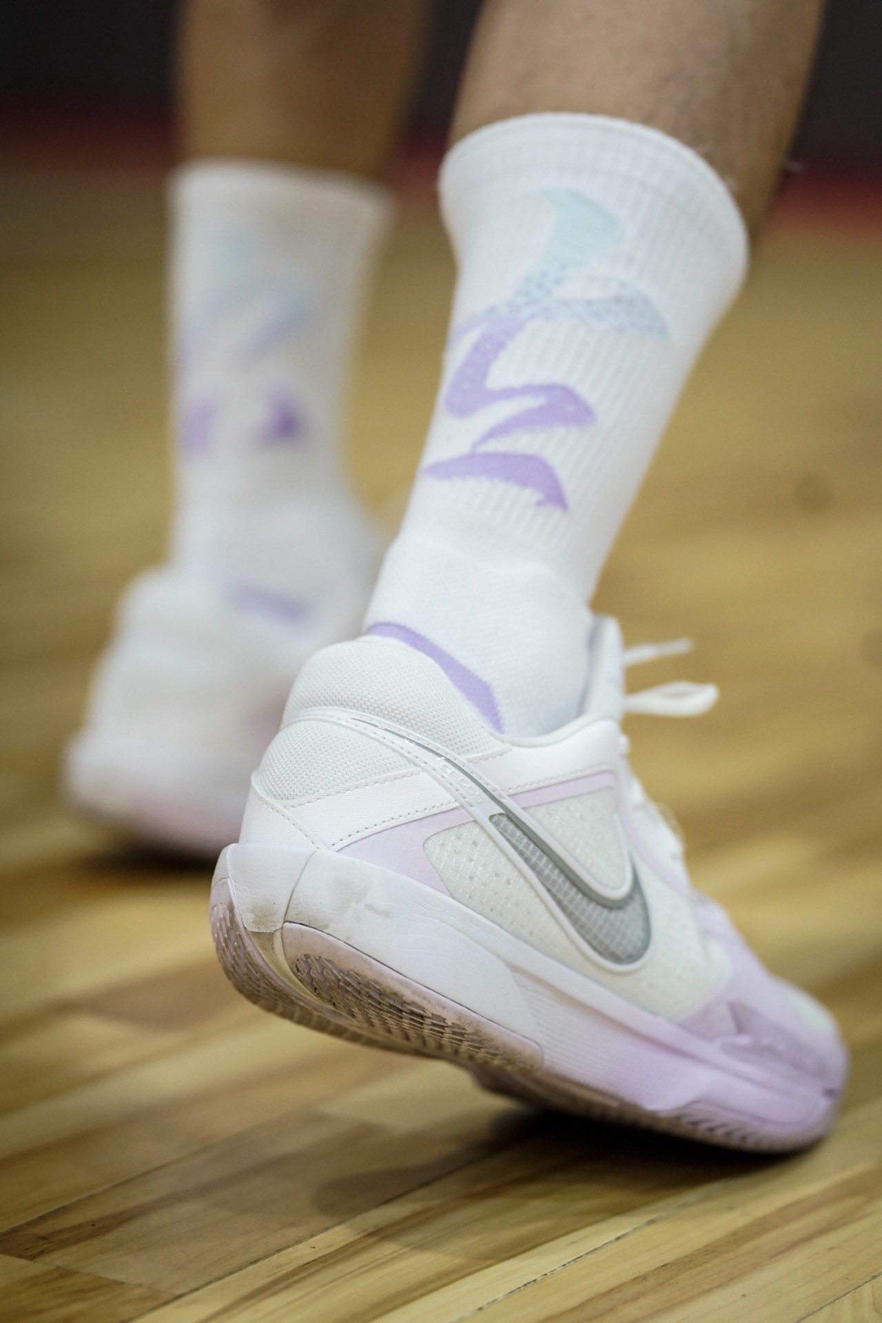 淡紫色的篮球鞋蕴含着一丝高级,这个配色不会让你失望,日常出街也非常适配。 说说球场体验 鞋子上脚是比较软弹的,上脚的舒适感可以立马体验到。 包裹感和支撑性相当不错 在学校外场打过一次,那个球场出了名的滑,鞋子大底用了XDR,这双鞋的抓地依旧显著,让人惊喜不已。耐磨方便也十分出色。 鞋头加宽了,包裹感很强。做起变向和加速这些动作也游刃有余。 尺码方面 尺码可以选大半码 颜值性能价格都还不错,想尝试的...