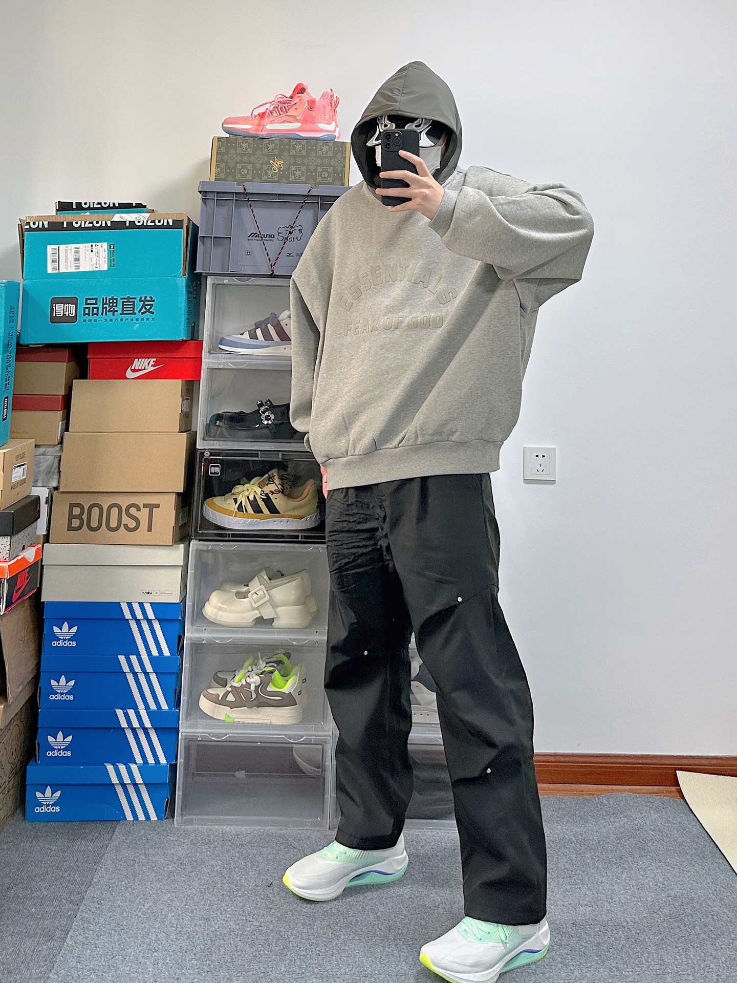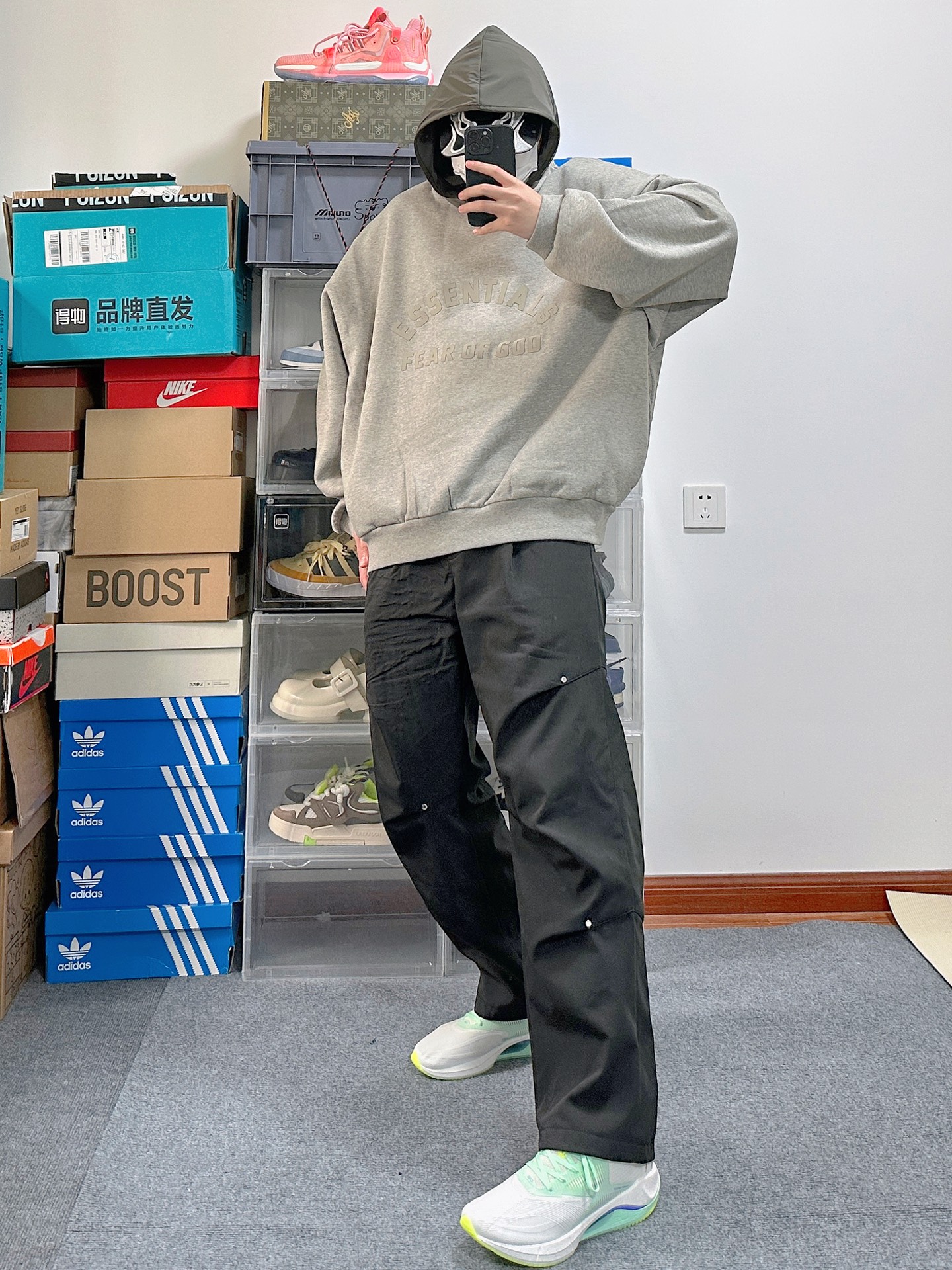 体育生搭配其实不难 主要要选择好宽松的衣服和配色 今天搭配的一套是撞色系的搭配 上衣是来自Fog的训练服连帽卫衣的款式 但是帽子和衣服的配色不一样 配色还是比较有趣的 面料是偏向于厚实的那种 初春早晚温差大可以抵御寒冷 运动的时候脱掉就好 裤子是运动阔腿裤的版型 整体上身协调性不错 如果有运动需求可以再穿一条紧身运动裤 运动的时候脱掉就好 鞋子是来自李宁的超轻20 很清新干净的配色 但是不太...