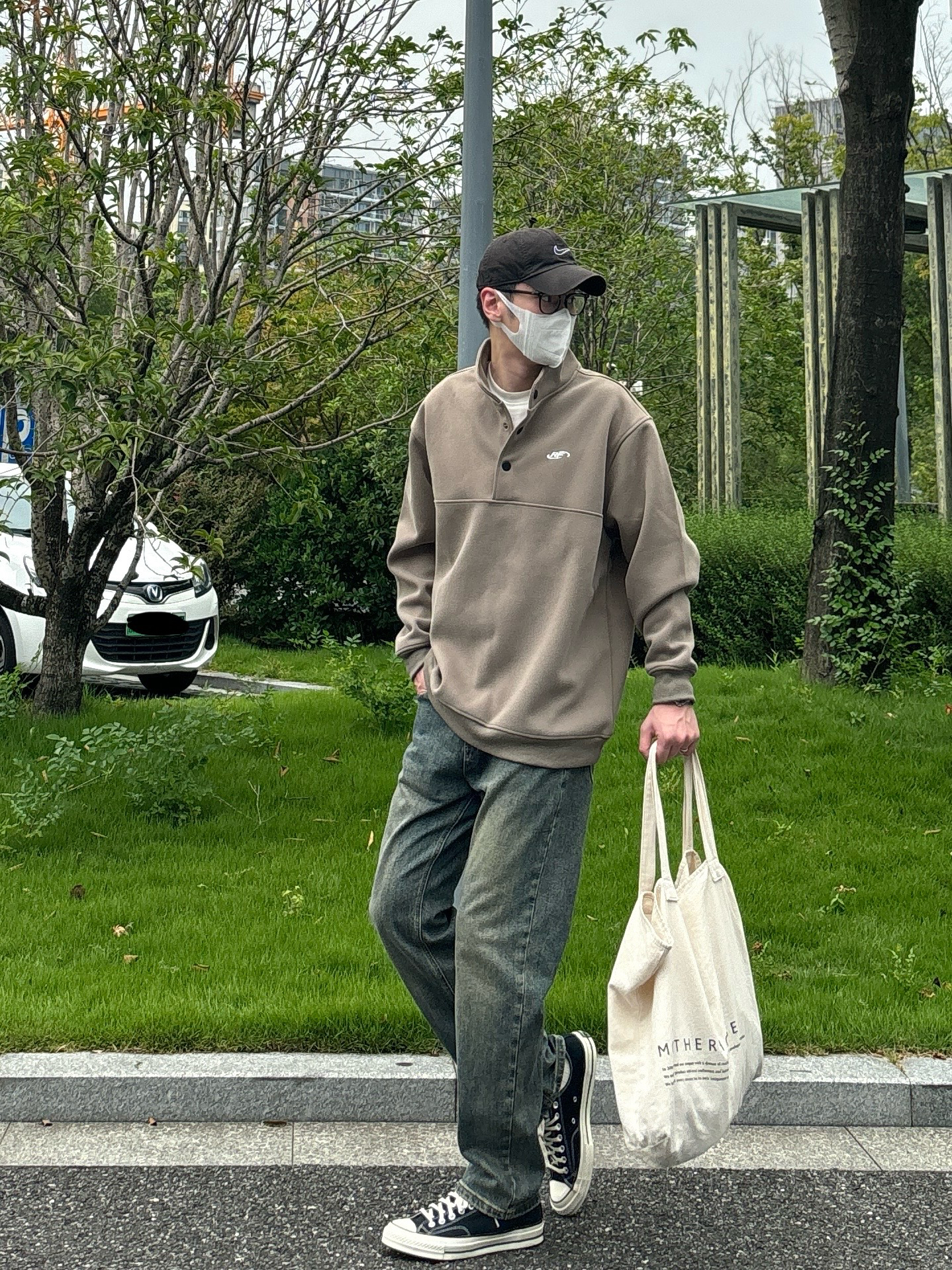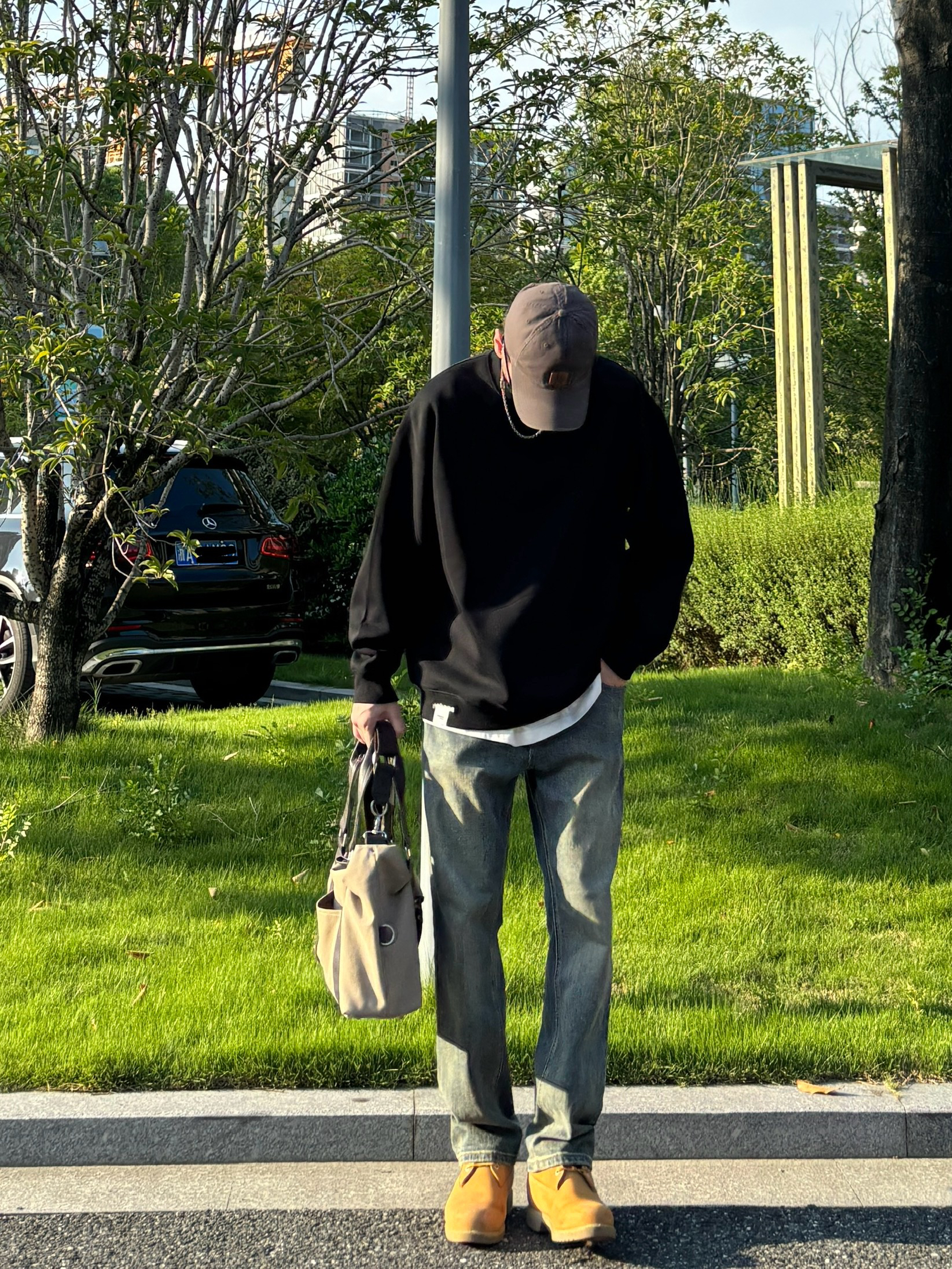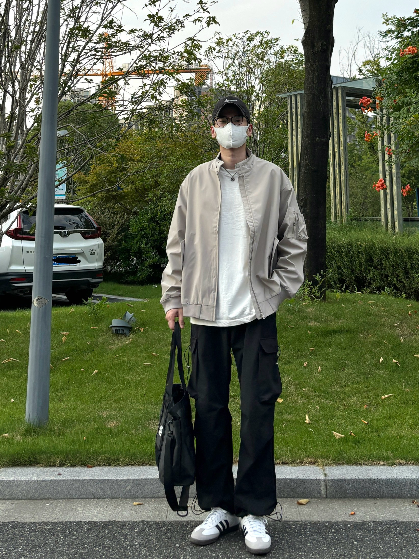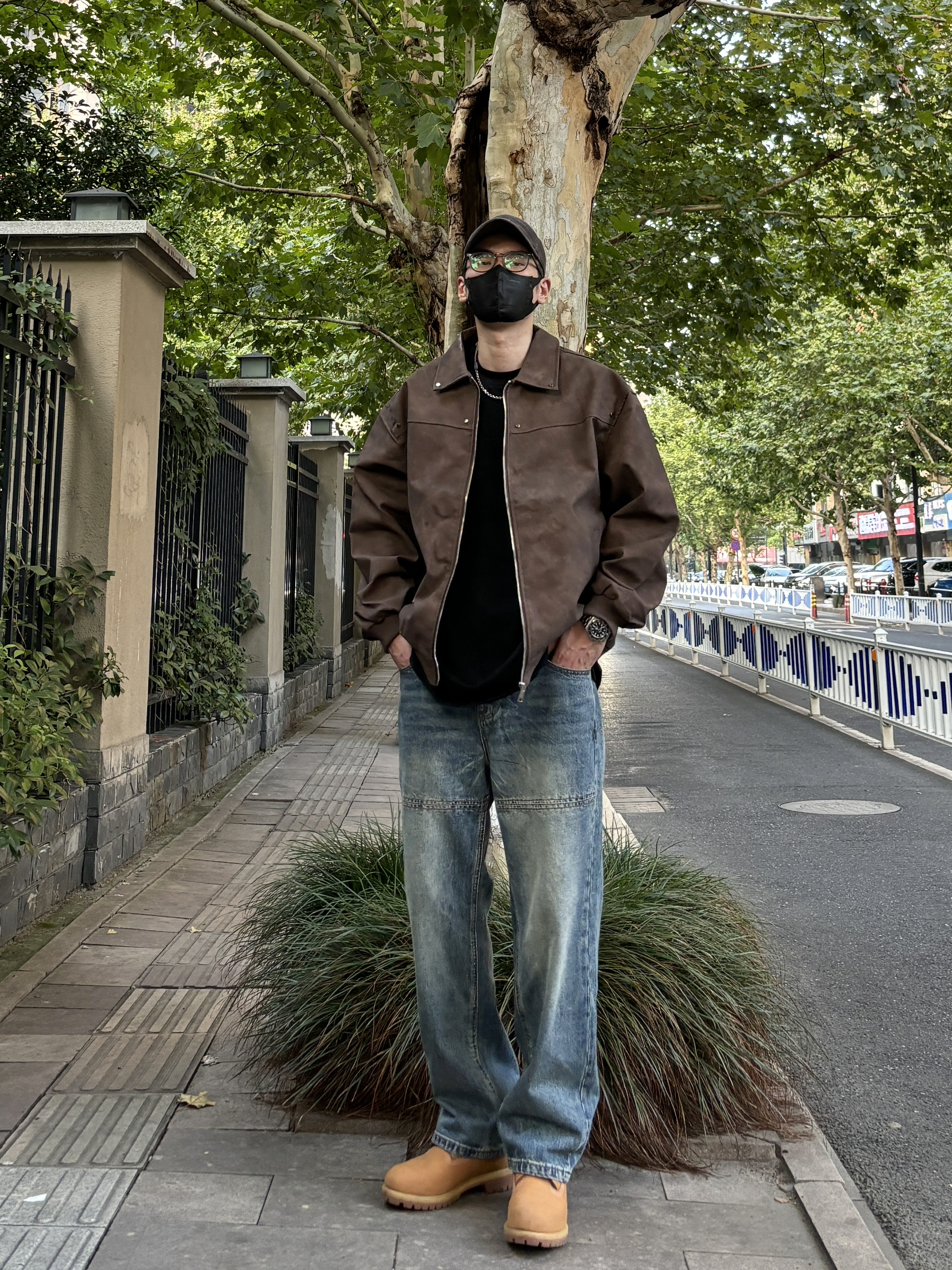 1️⃣ 美式工装风:黑色宽松重磅圆领卫衣➕水洗直筒牛仔裤➕复古工装靴➕帆布拼接手提包 - 2️⃣ 户外机能风:杏色三防多口袋立领空军服➕黑色抽绳系带机能伞兵裤➕黑白samba德训鞋➕北面防水托特包 - 3️⃣ 日系少年感:卡其绿开胸纽扣立领卫衣➕水洗直筒牛仔裤➕匡威1970s黑白➕米白色帆布托特包 - 4️⃣ 工装硬汉风:棕色重磅复古翻领皮衣➕蓝色水洗直筒拼接牛仔裤➕大黄靴