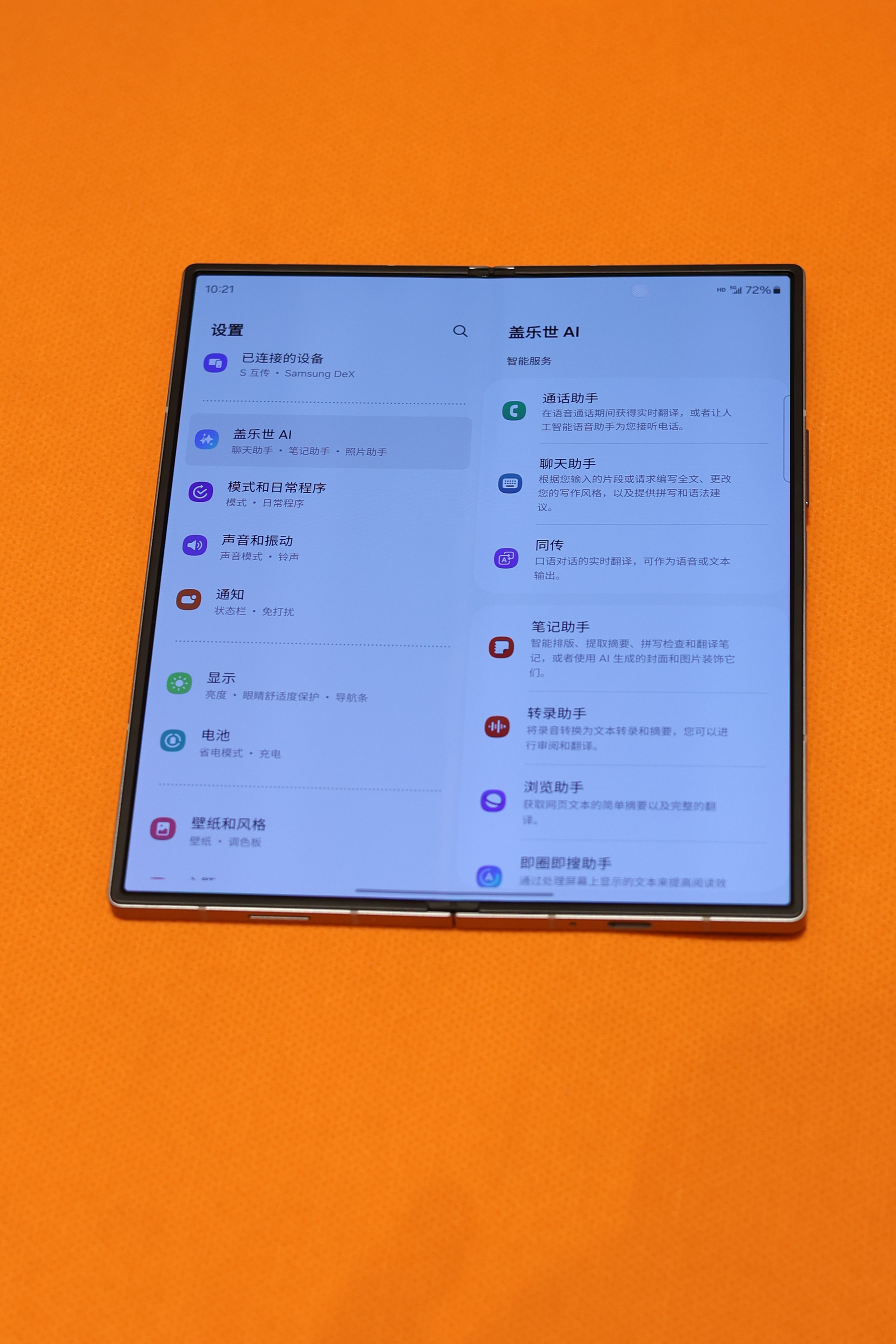 这就是目前最精致的大折叠,三星成功的把之前Note系列的外观融入了S系列之后,现在又重新把灵魂浇筑到了Fold6身上,我相信很多老三星用户都明白。 方方正正的大折叠,圆滑不当道,让你知道它是一台三星。 这也是目前真正把AI当做重要卖点的大折叠,它对于AI功能的优先级,直接把这个功能选项放到了设置页面第二个分区。11个AI功能,但是效率不止提升了11倍。 当然,AI对Fold6也只能算得上是锦...