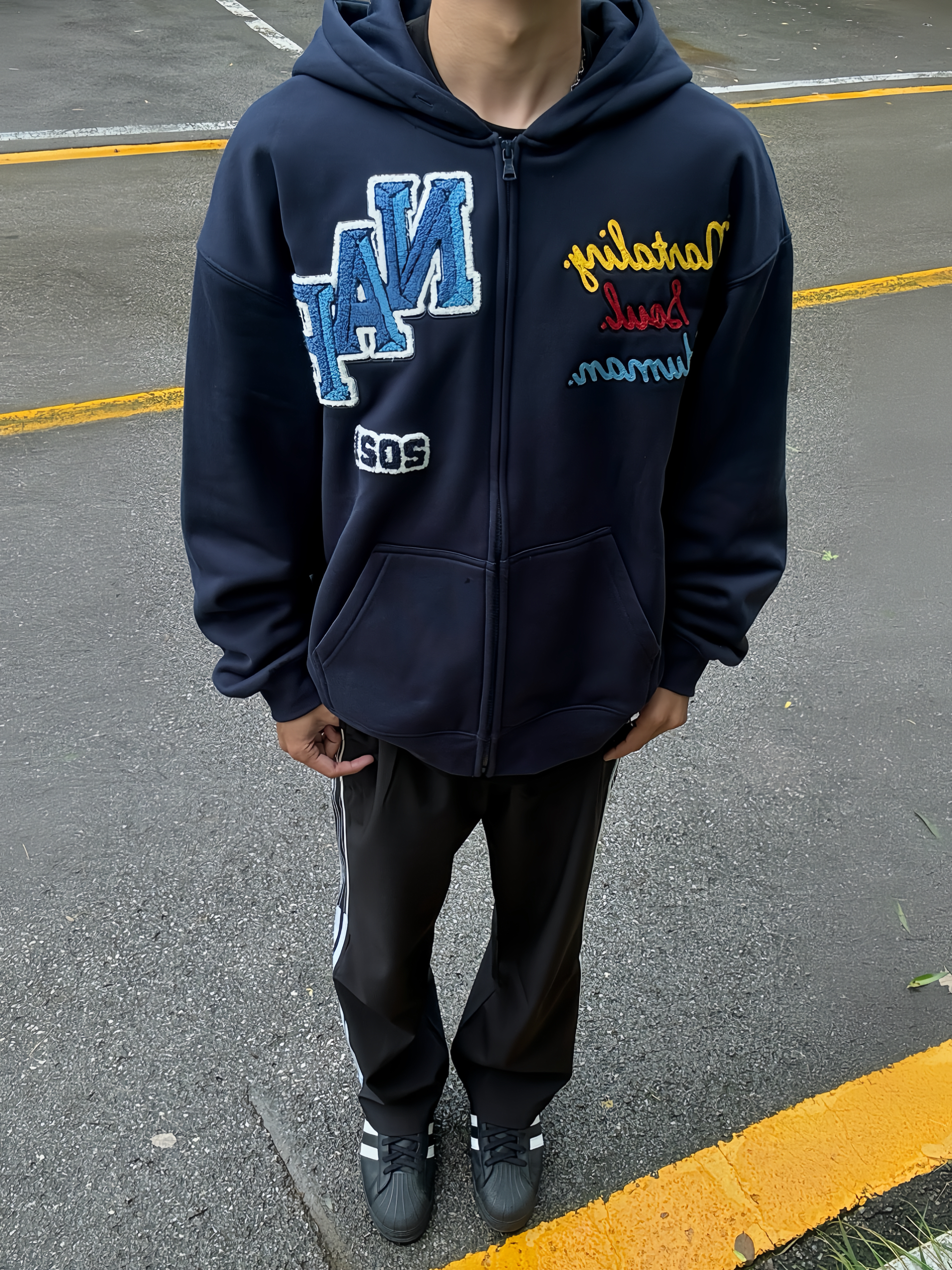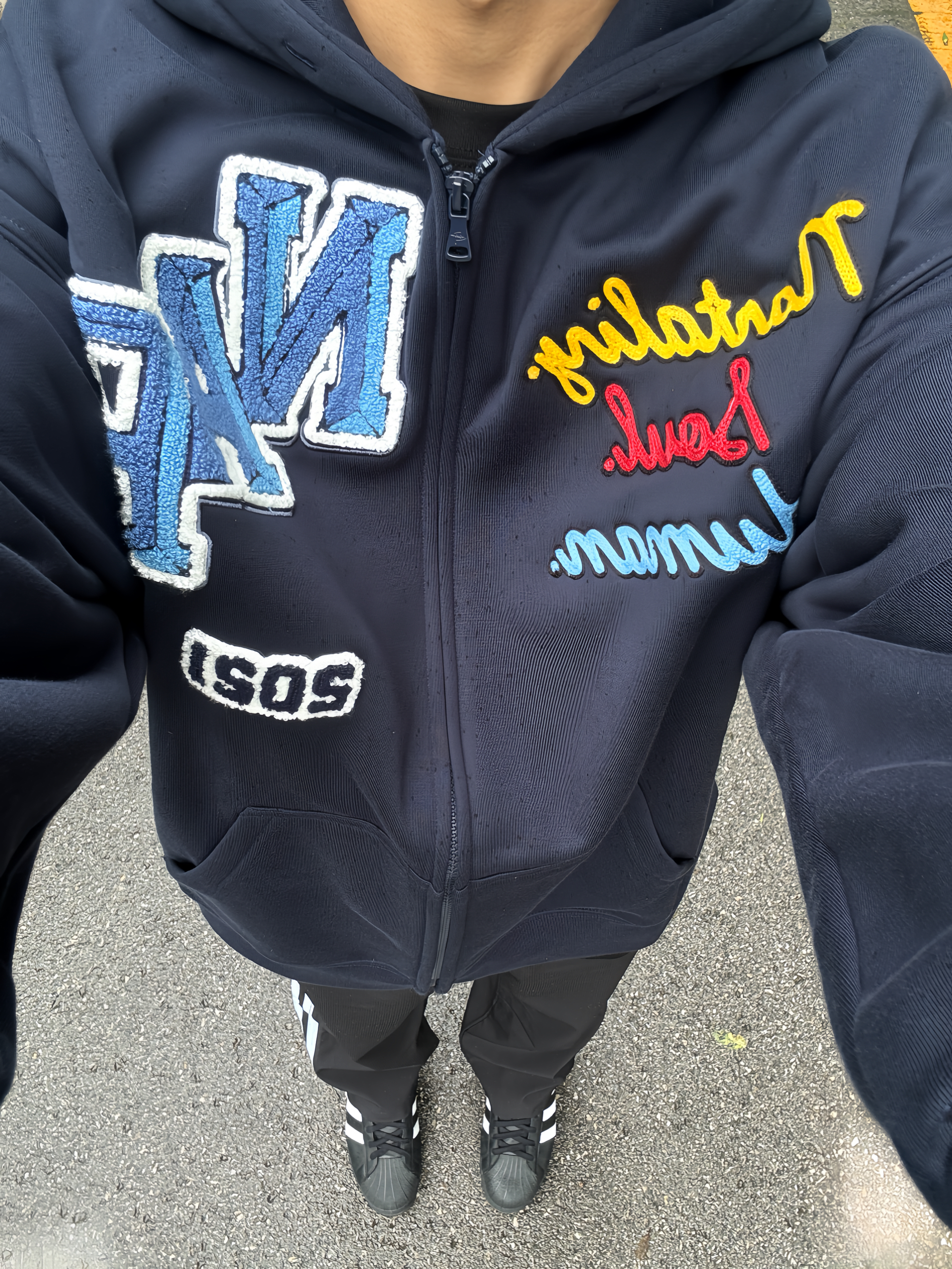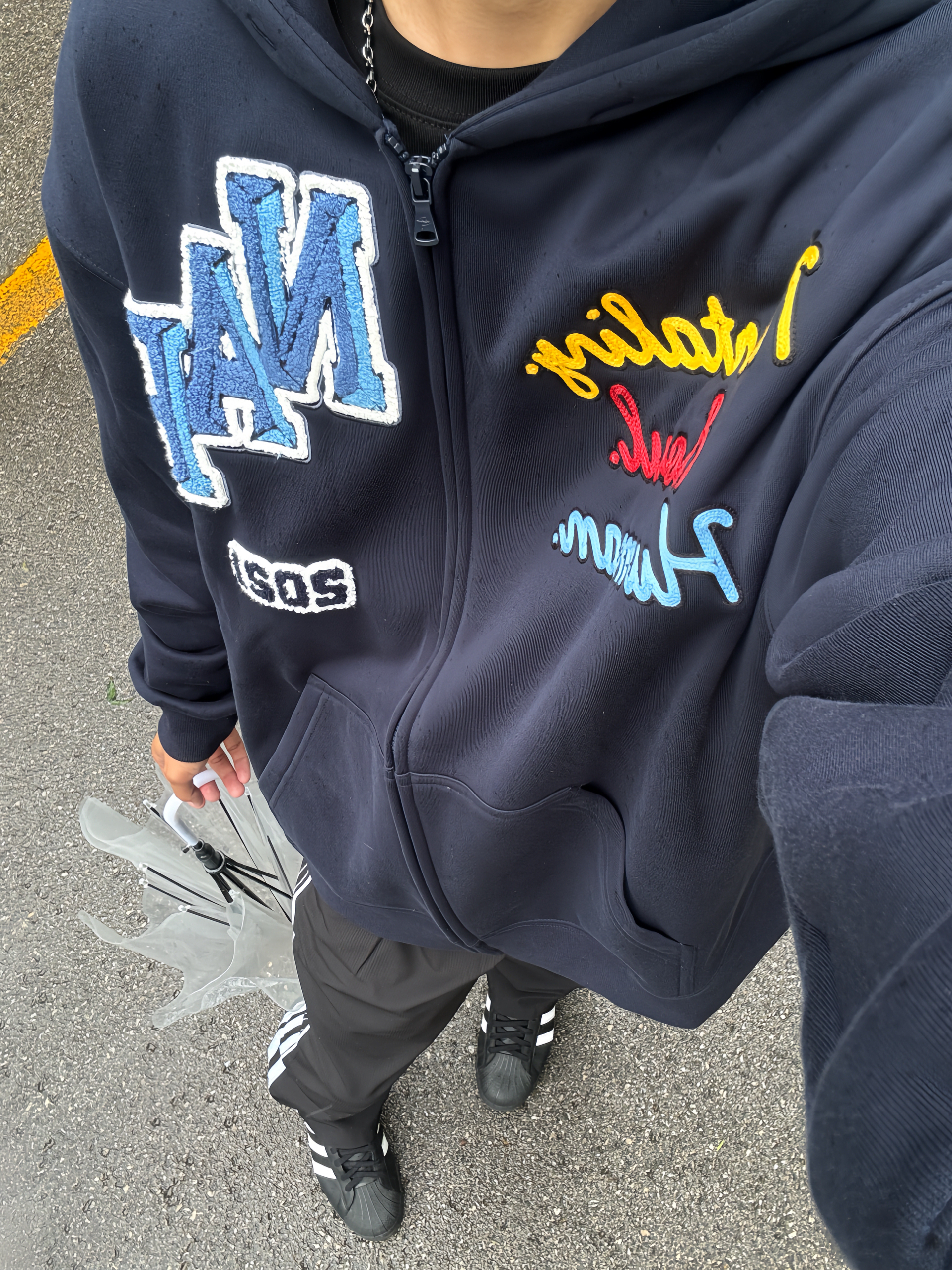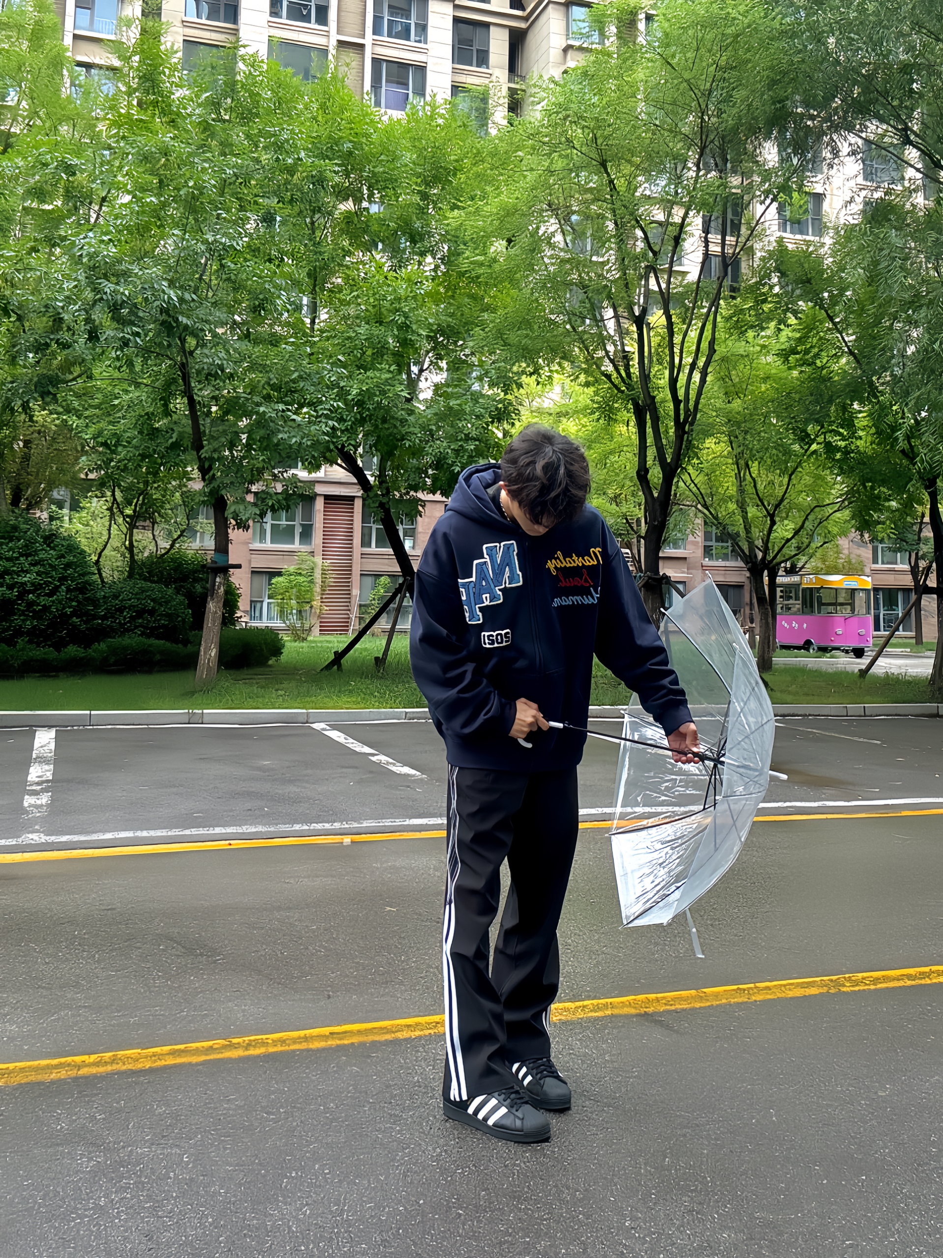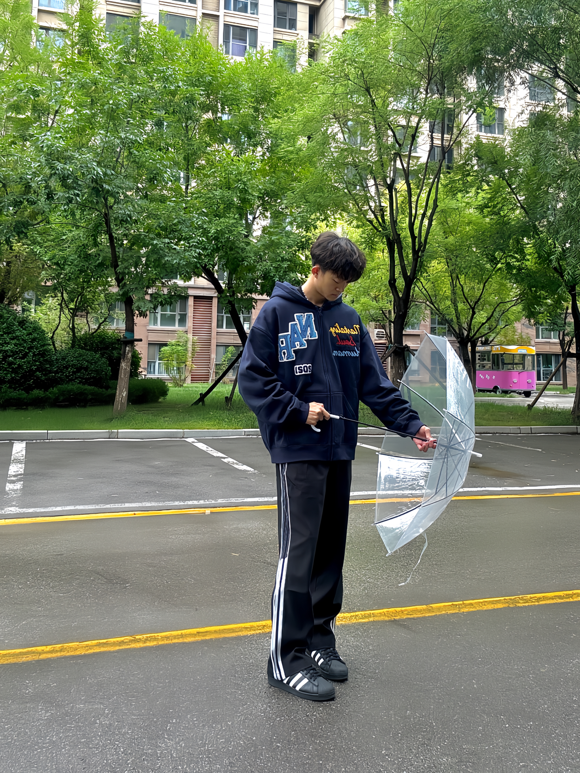 180 130|OOTD穿搭日记 👔|秋季外套穿一穿啦,最近下雨啦,还蛮冷的,不过外套就刚好合适,很好的保暖效果,我选了藏蓝色的,上面的刺绣印花也比较青春,少年风格,里面一层薄绒,春秋,初冬都可以穿呀~ 👖|条纹休闲裤,这种类型的裤子我有好多,都穿不腻的,黑色也很百搭~ 👟|下雨天不能穿勃肯了,我就搭配了黑贝壳,整体效果看起来也很不错!
