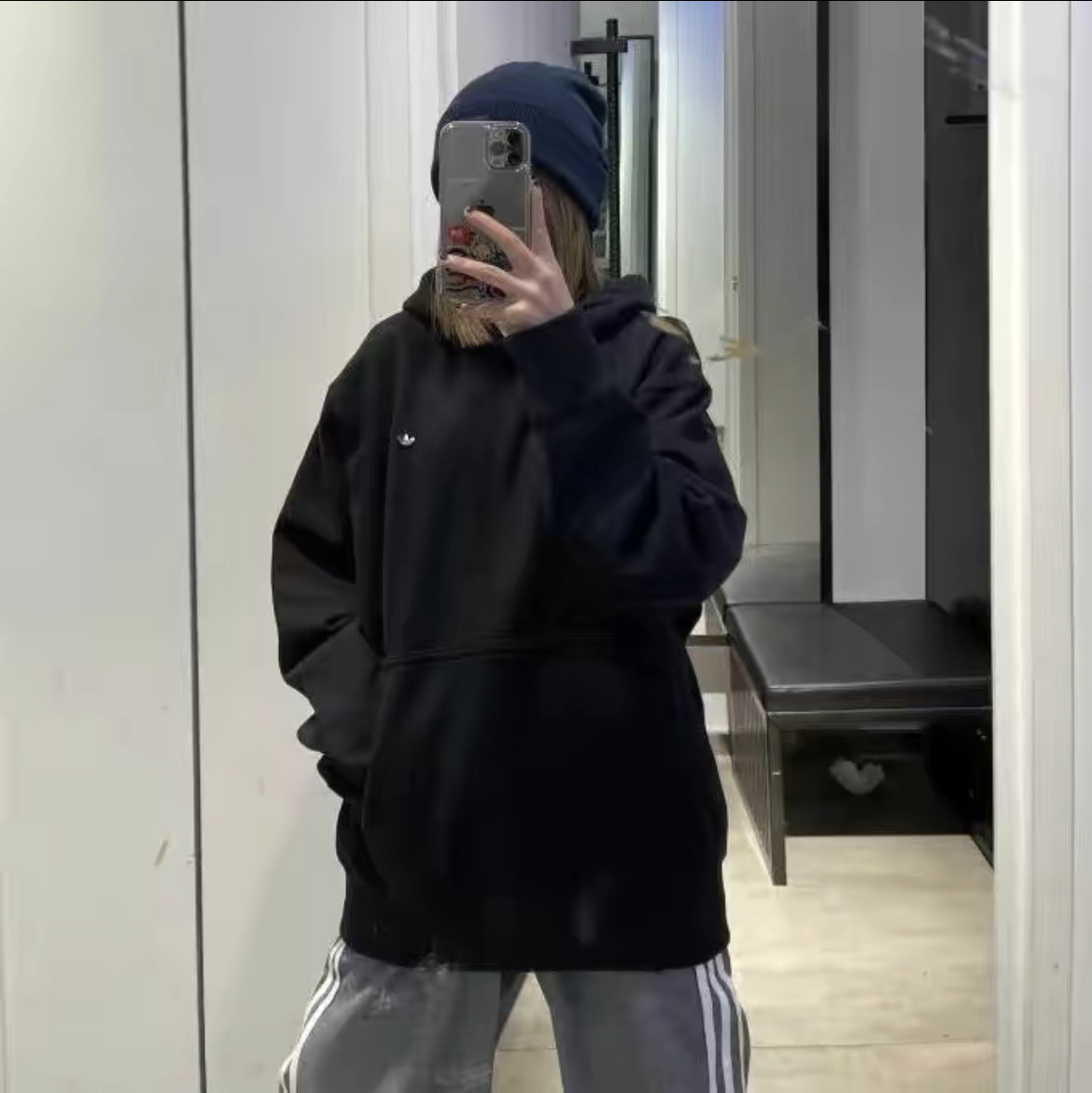 已经开始为秋天准备卫衣了。黑色卫衣当然是必备,简约的纯色字母印花也不会显得单调。内里的薄绒不会粘到皮肤和内搭上,搭配宽松牛仔裤就有cityboy的街头感啦~ (图片来自网络,侵删)