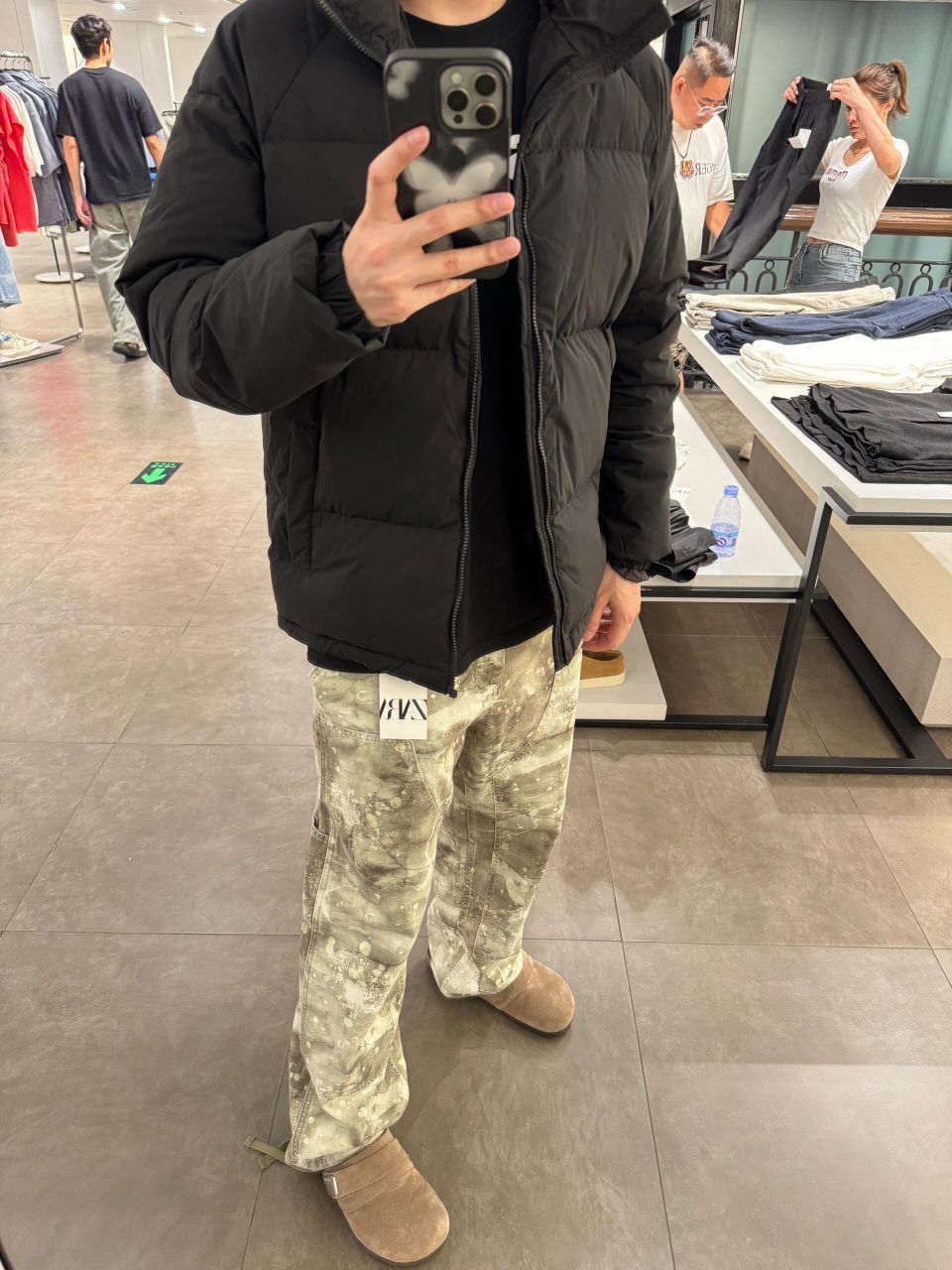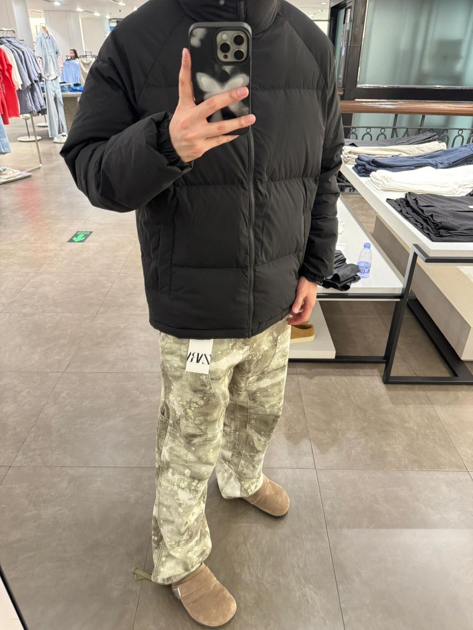 三条来自Zara的裤子分享! 配上一件黑色百搭立领羽绒服,搭配拉链YKK ,里外4层锁绒 ,杜邦三防面料! P1-p2美式宽松休闲长裤 P3-p4 旋转接缝宽松水洗牛仔休闲长裤 P5-p6 潮流印花木匠风直筒水洗休闲长裤