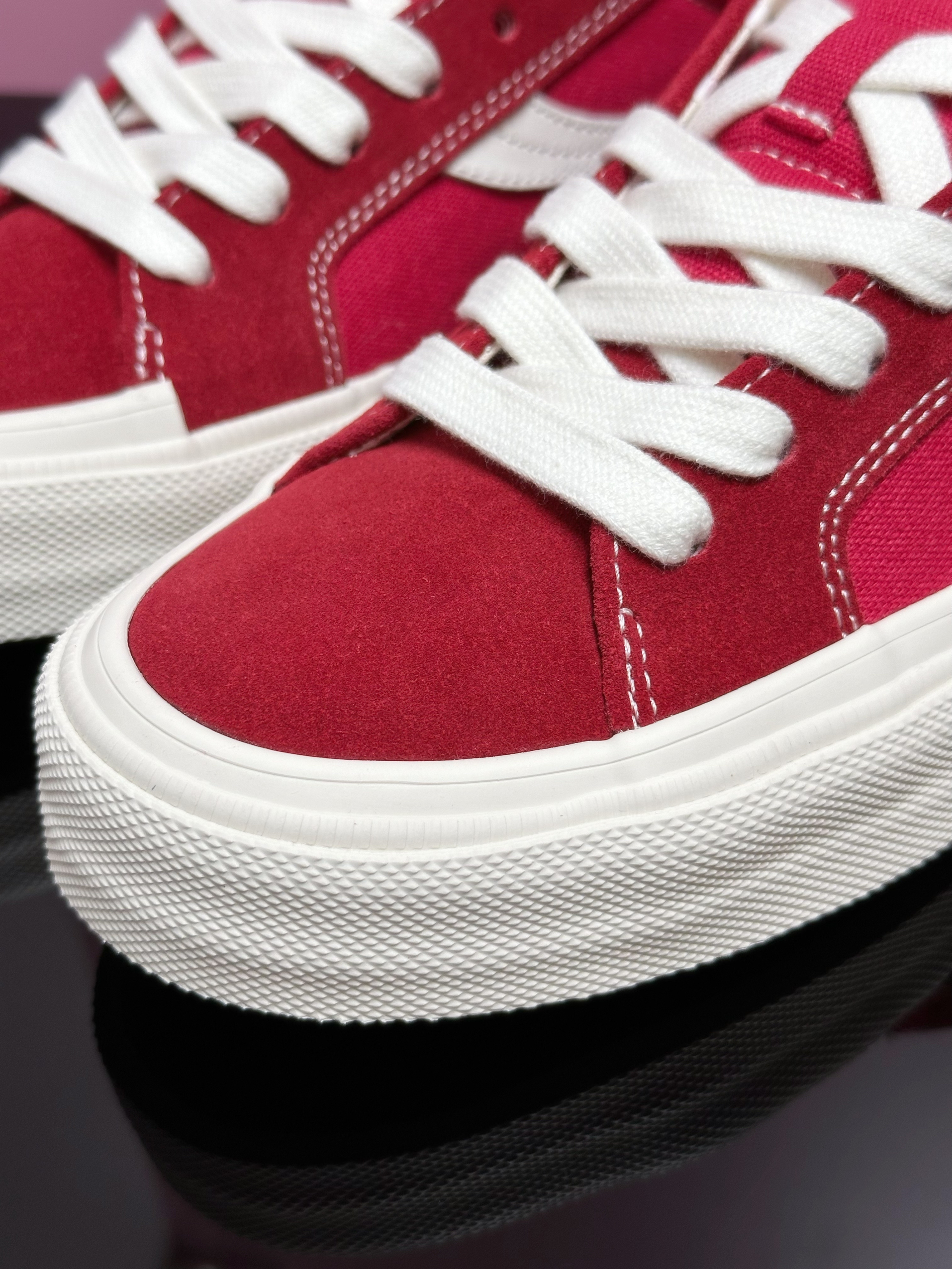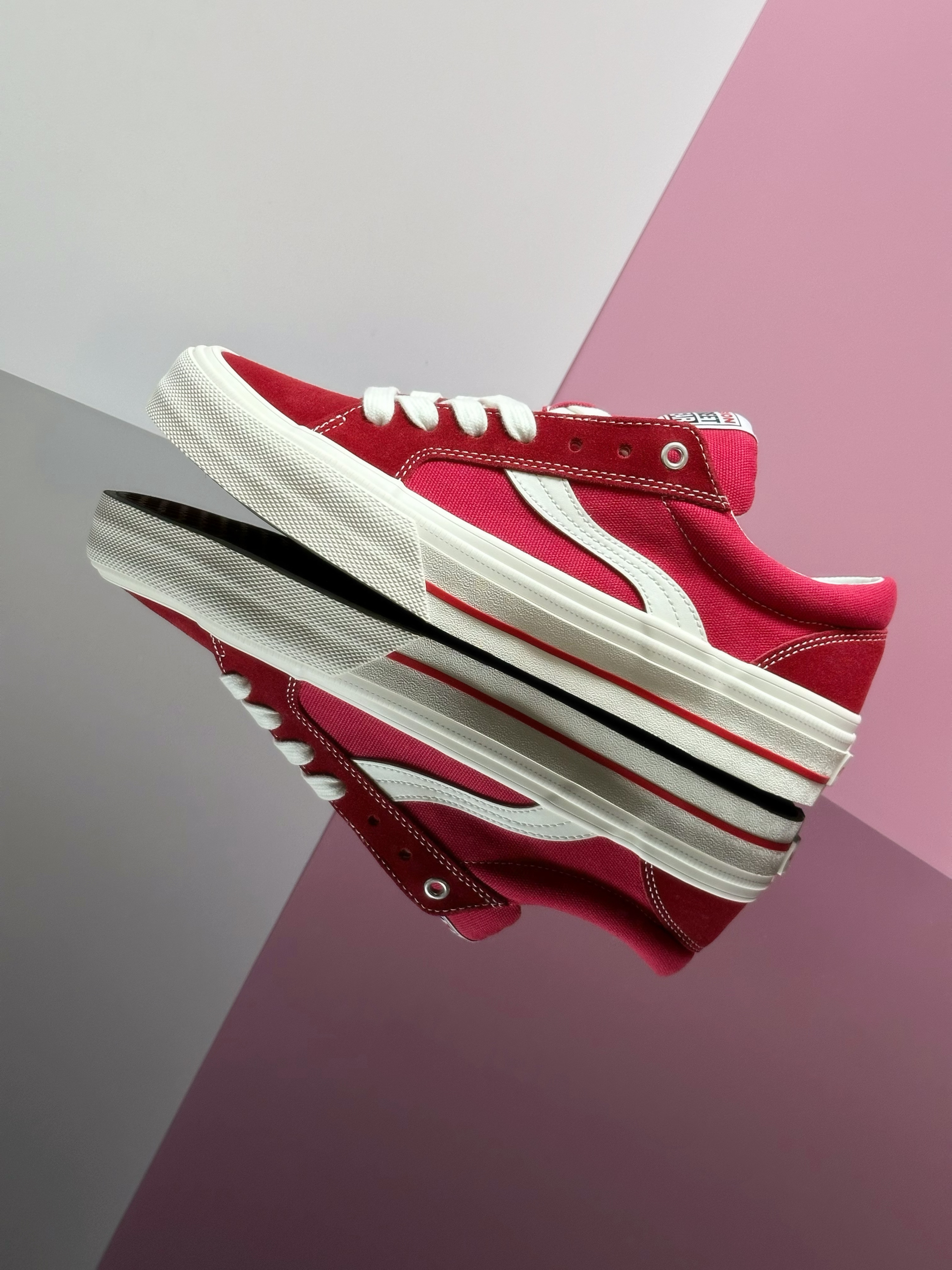 入秋了 穿搭来点亮色就对了 VSW的这双白红经典款 真的属于是穿搭加分项了 已经不是第一次分享这双鞋 白红的配色真的经典 亮眼百搭又极富运动感 这双还在鞋面做了一些偏粉色调的设计 让整体的配色更有层次感 最后搭配的是经典的生胶大底 复古感十足 不仅配色经典又吸睛 脚感也非常不错 加厚的鞋舌和鞋垫 包裹舒适 脚感韧弹 尺码的话是略偏大的 脚瘦可以买小半码 我个人比较习惯穿正码