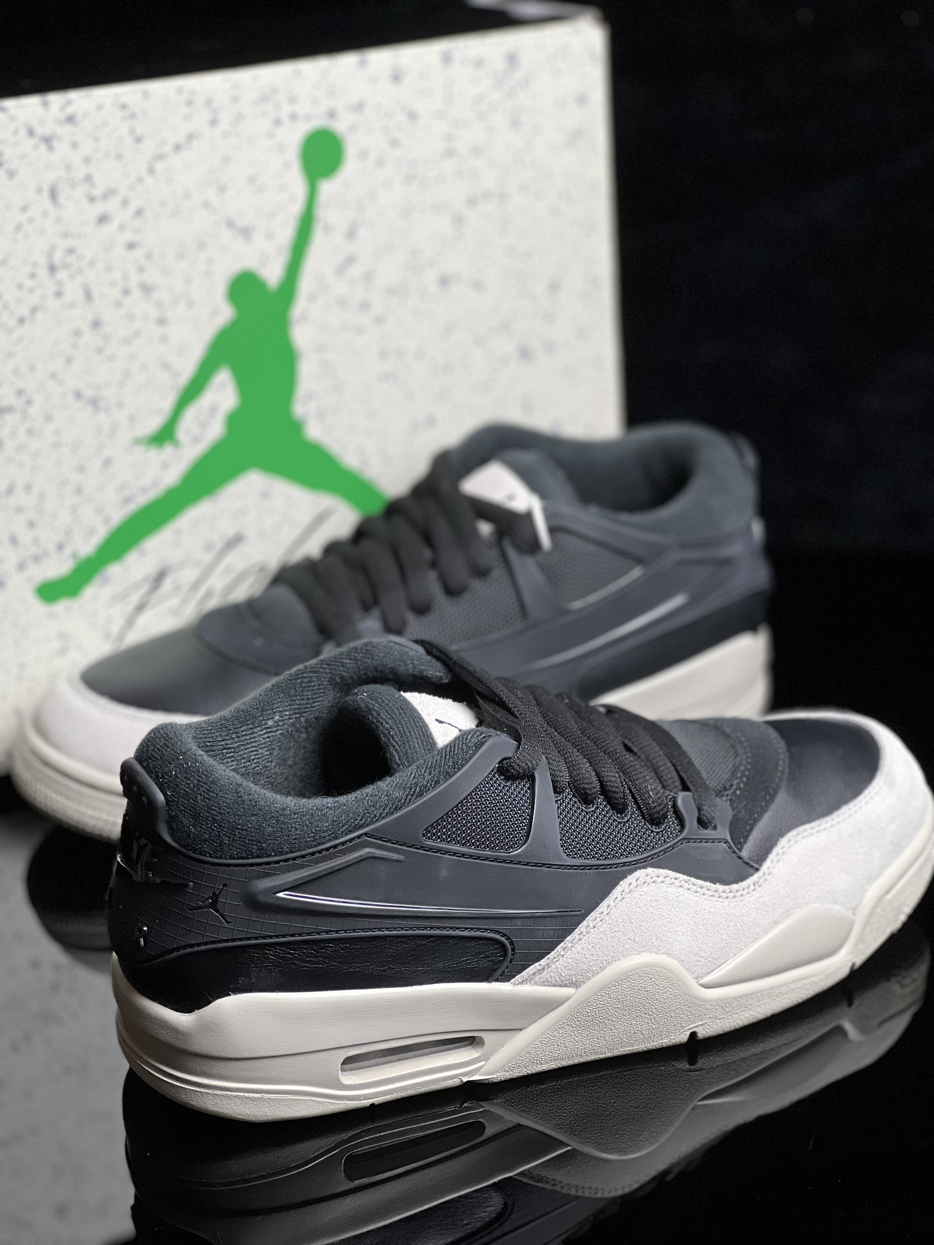 Jordan Air Jordan 4 RM 防滑 低帮 复古篮球鞋男款 黑米 比正代AJ4价格低,帅气值可是一点都没減! 鞋面黑米色拼接,时尚感还不错,低帮设计后跟也不用担心会磨脚了!鞋面比较厚实,秋冬季穿都可以! 尺码建议买大半码会更加舒服一些!