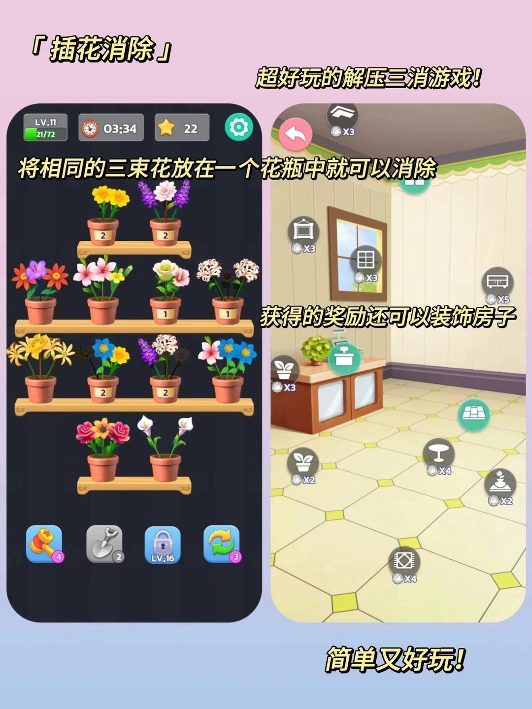 姐妹们,我又找到了好多好玩的游戏!无聊必备 ①Duck Run ②插花消除 ③疯狂找东西 ④蜡笔小新跑酷 ⑤Like a dino ⑥Pancake Tower Decorating #ios游戏#游戏推荐#单机游戏#手机游戏推荐#小游戏安利