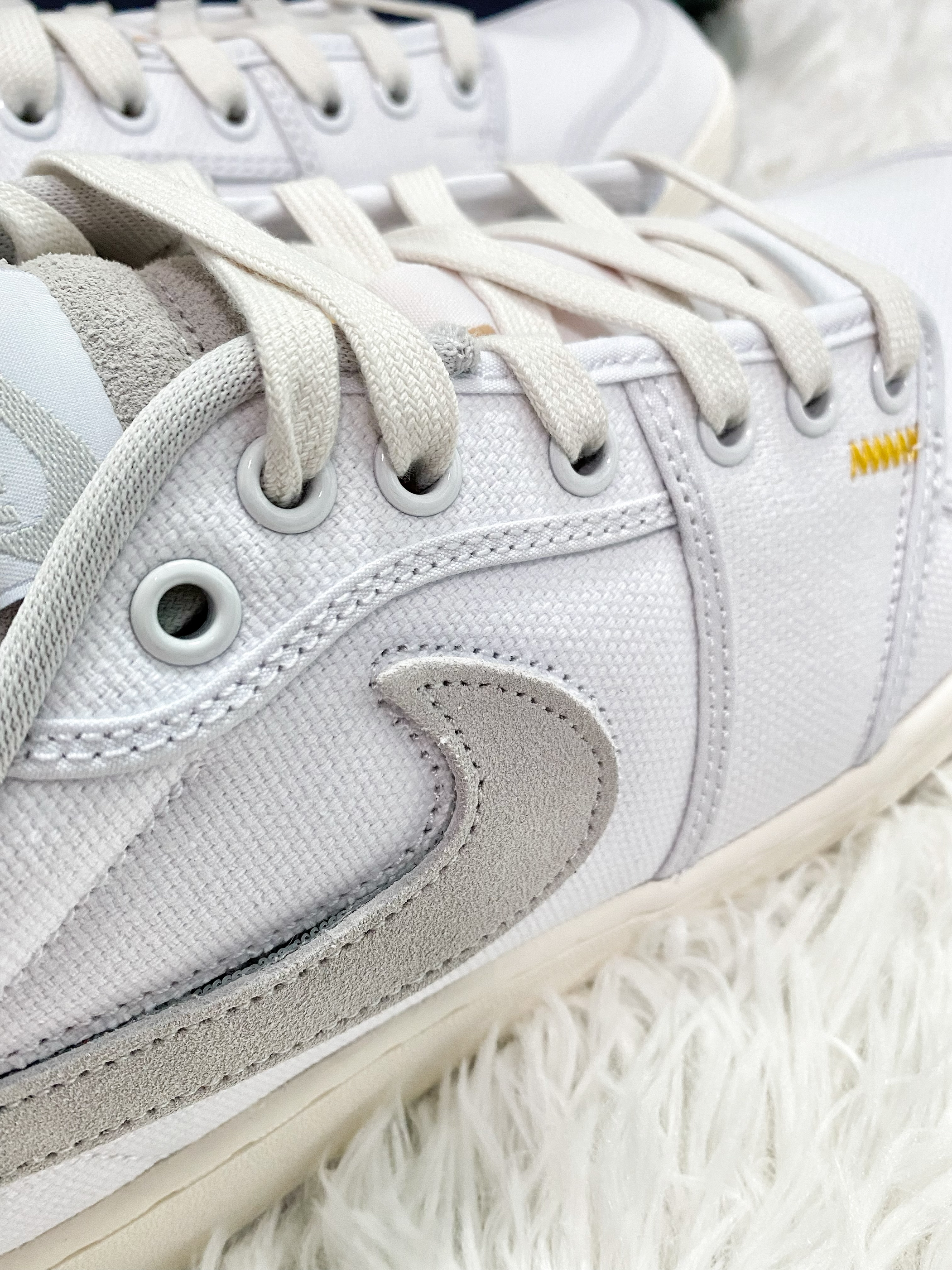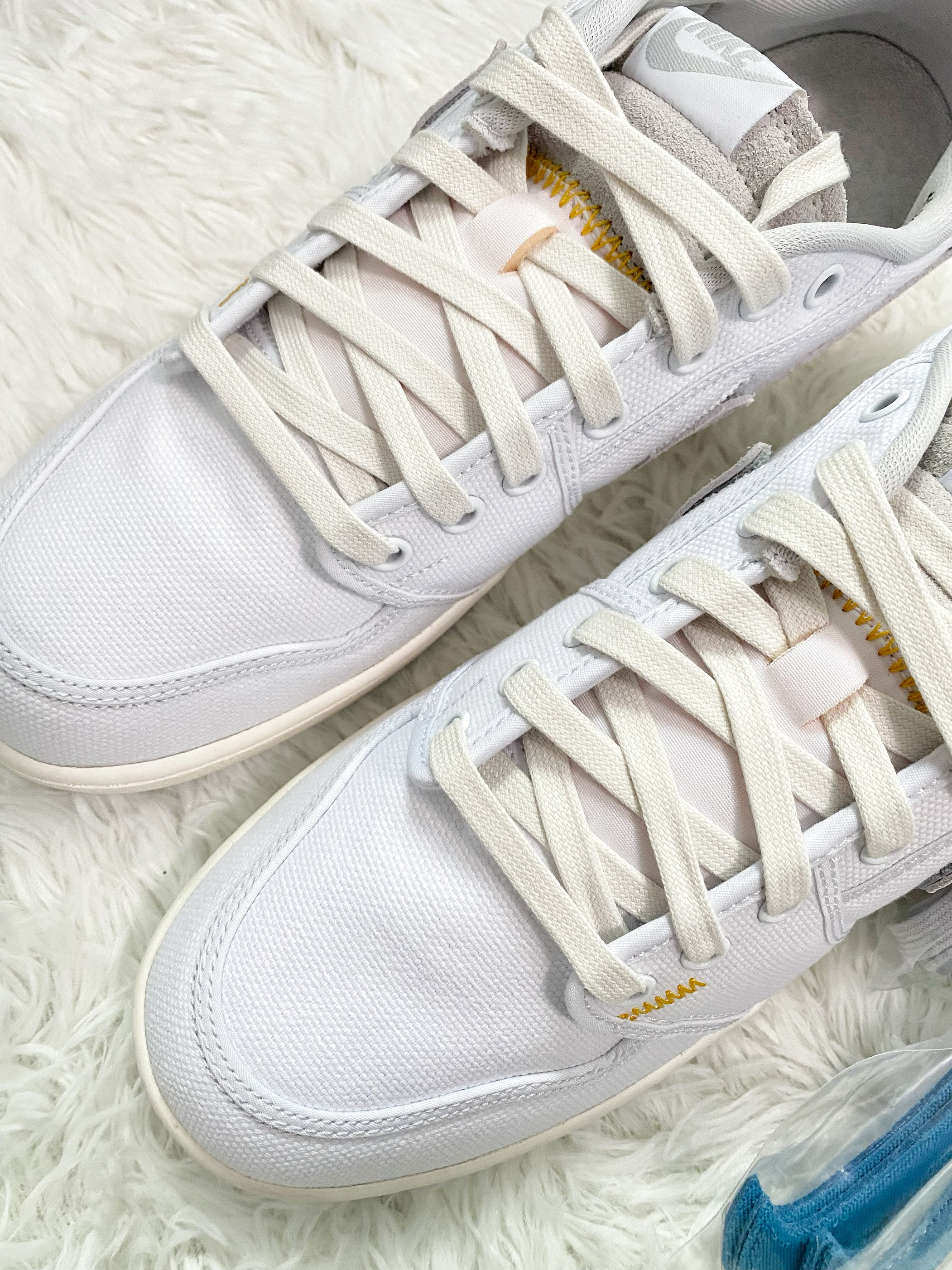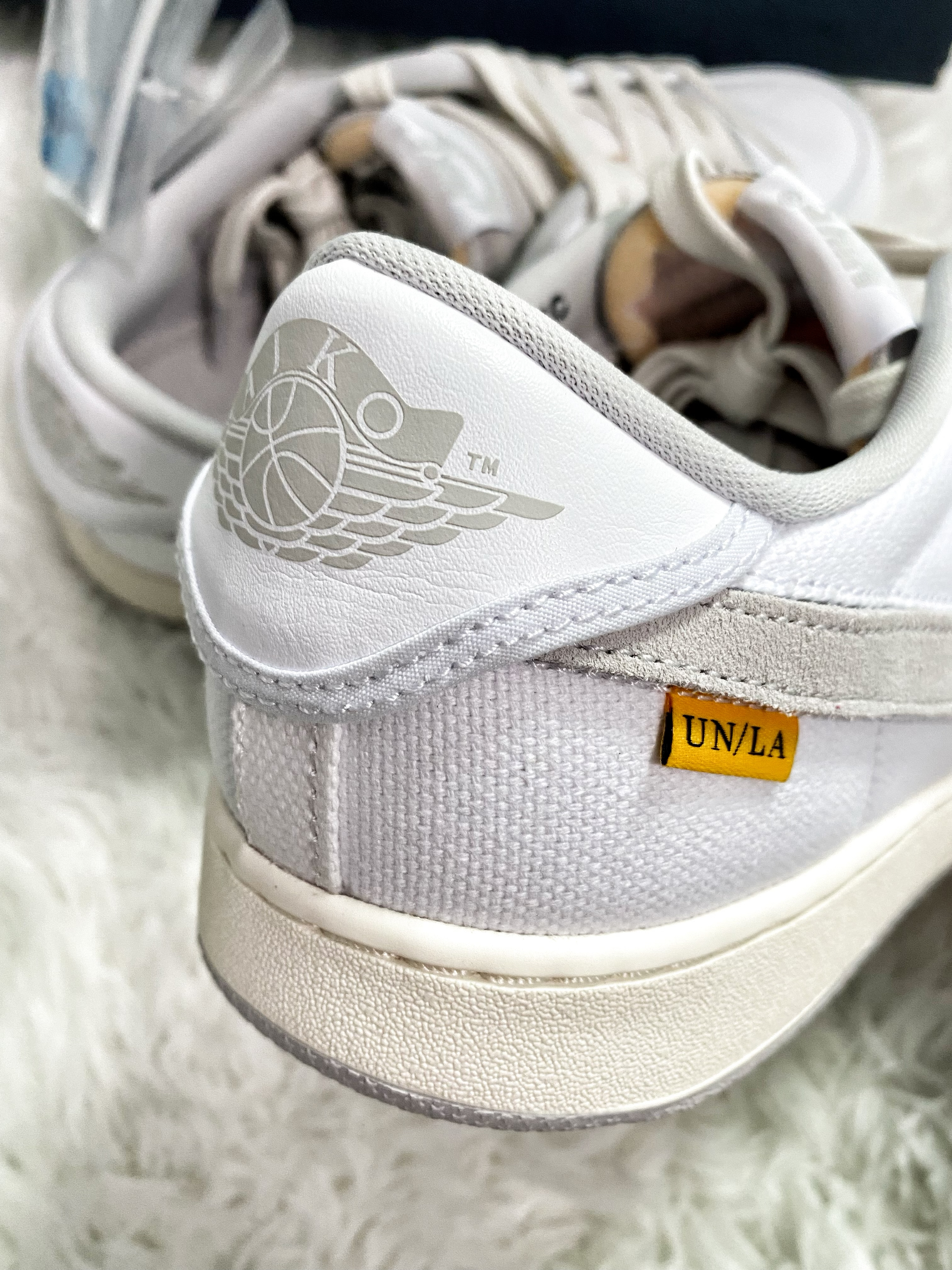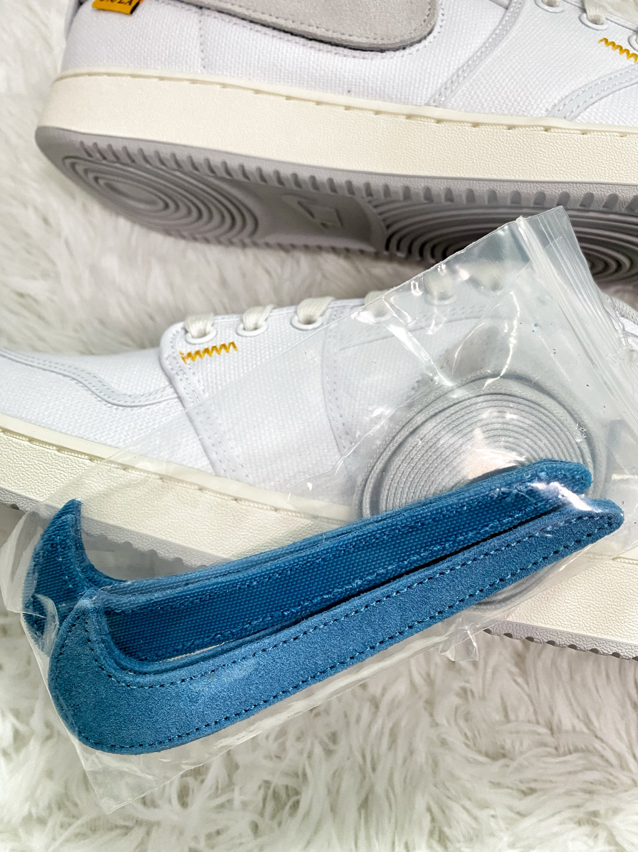 不得不说Union联名真是有点东西 出了很多联名款,设计感是蛮不错的 颜值也都很给力,这款AJ1KO设计有点意思 鞋侧的Swoosh是可以撕开替换的 还贴心的送了副蓝色替换,也可以自己DIY 可玩性蛮高的,不过纯白帆布鞋面 当小白鞋穿是挺百搭,就是太容易脏了 这样的鞋子,你们会选择入手么?