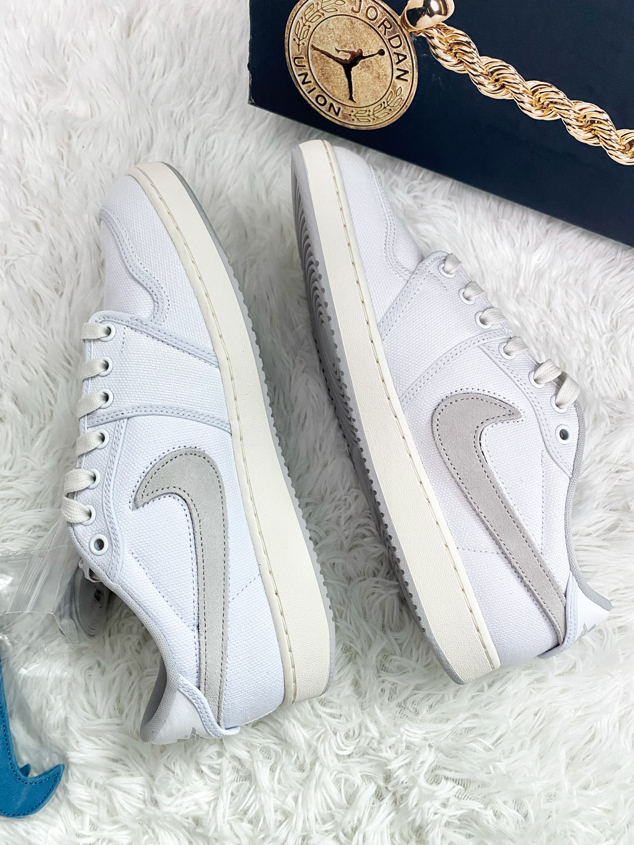 本篇笔记关联了Air Jordan 1 板鞋 运动休闲鞋 复古潮流支撑合成革 Union联名/白色/蓝色等商品,为用户提供真实的使用体验和购买参考。