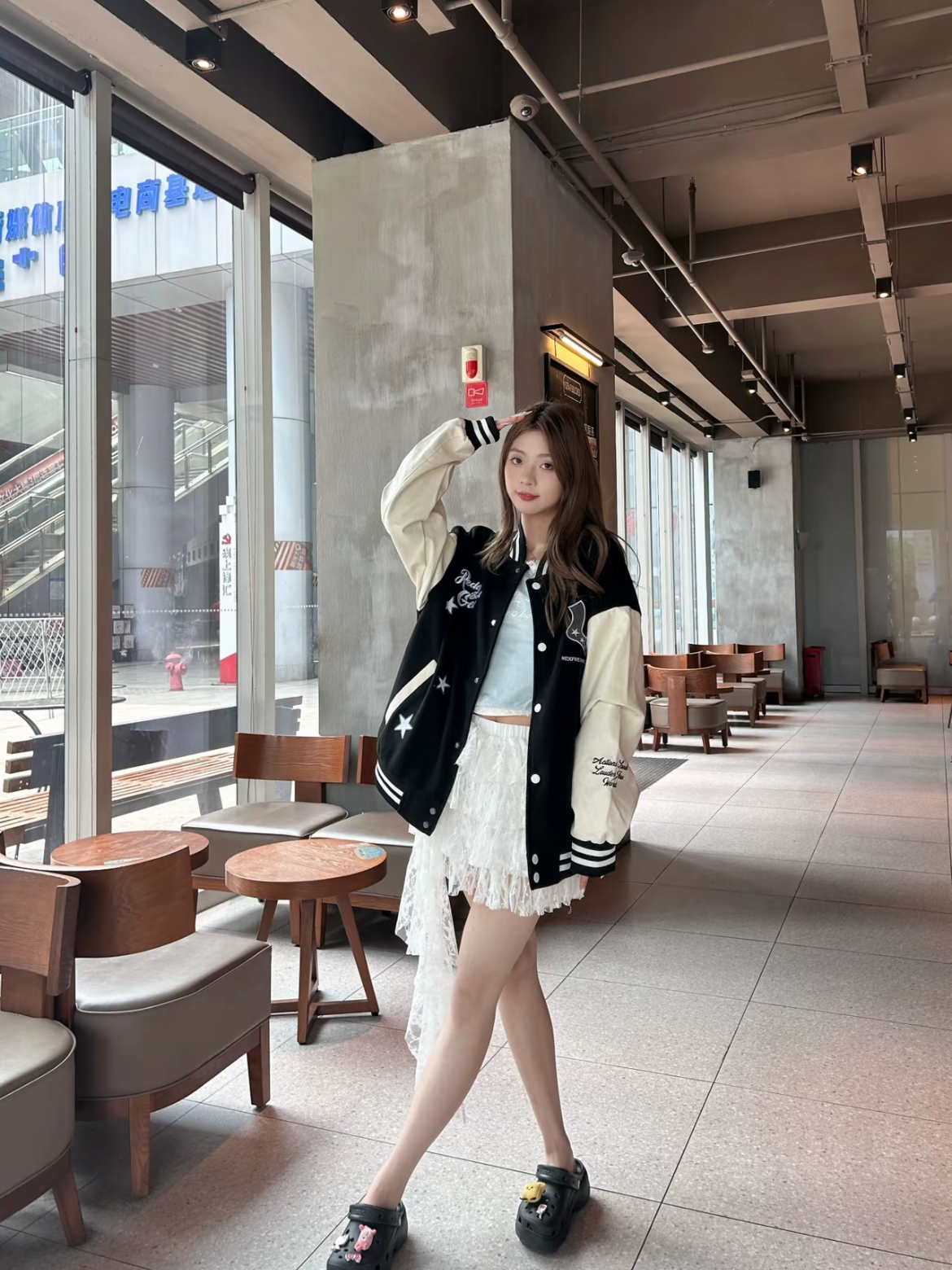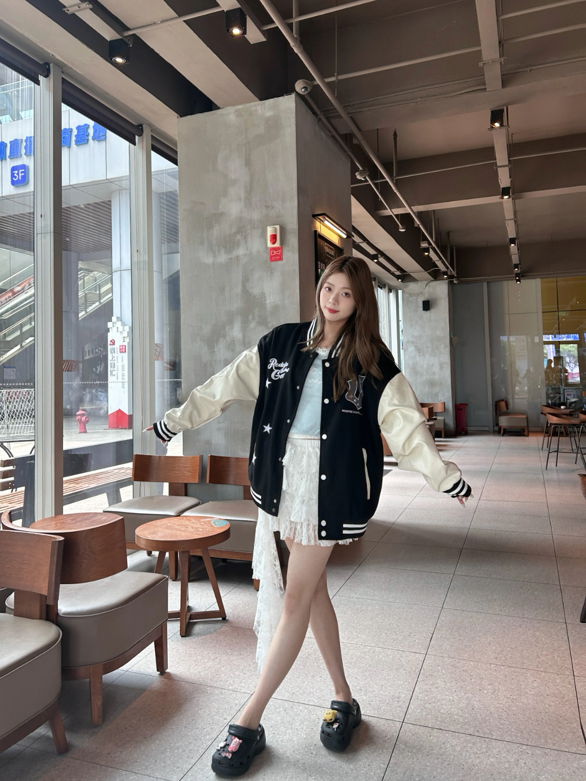 这款棒球服夹克外套采用了典型的美式设计,简洁大方,线条流畅。宽松的版型让你穿上后可以轻松遮肉,展现出完美的身材比例。而且它是男女同款哦,所以你和你的另一半可以一起穿着,形成超级甜蜜的情侣装搭配! (图片来自网络,侵删)