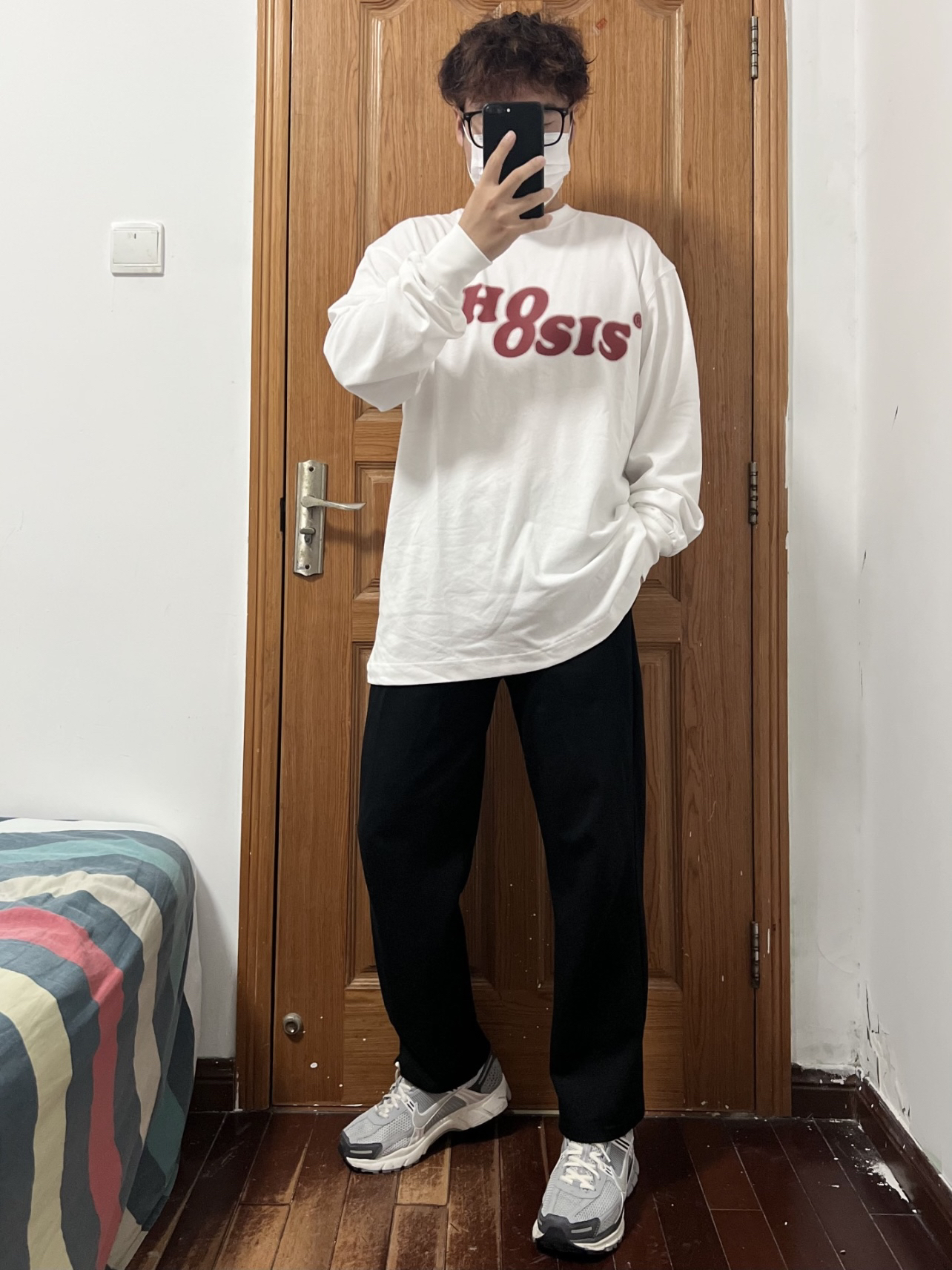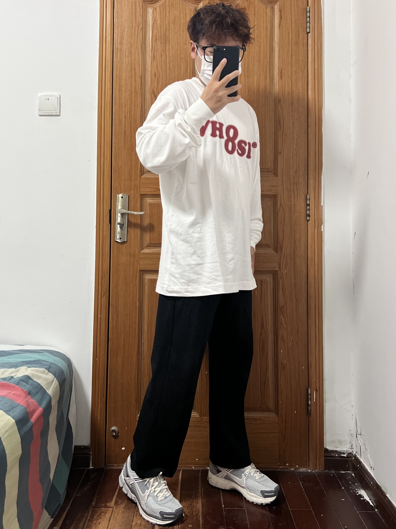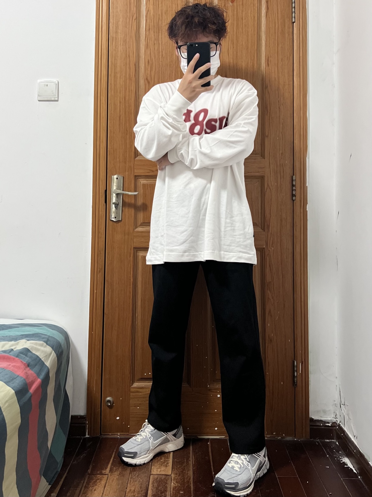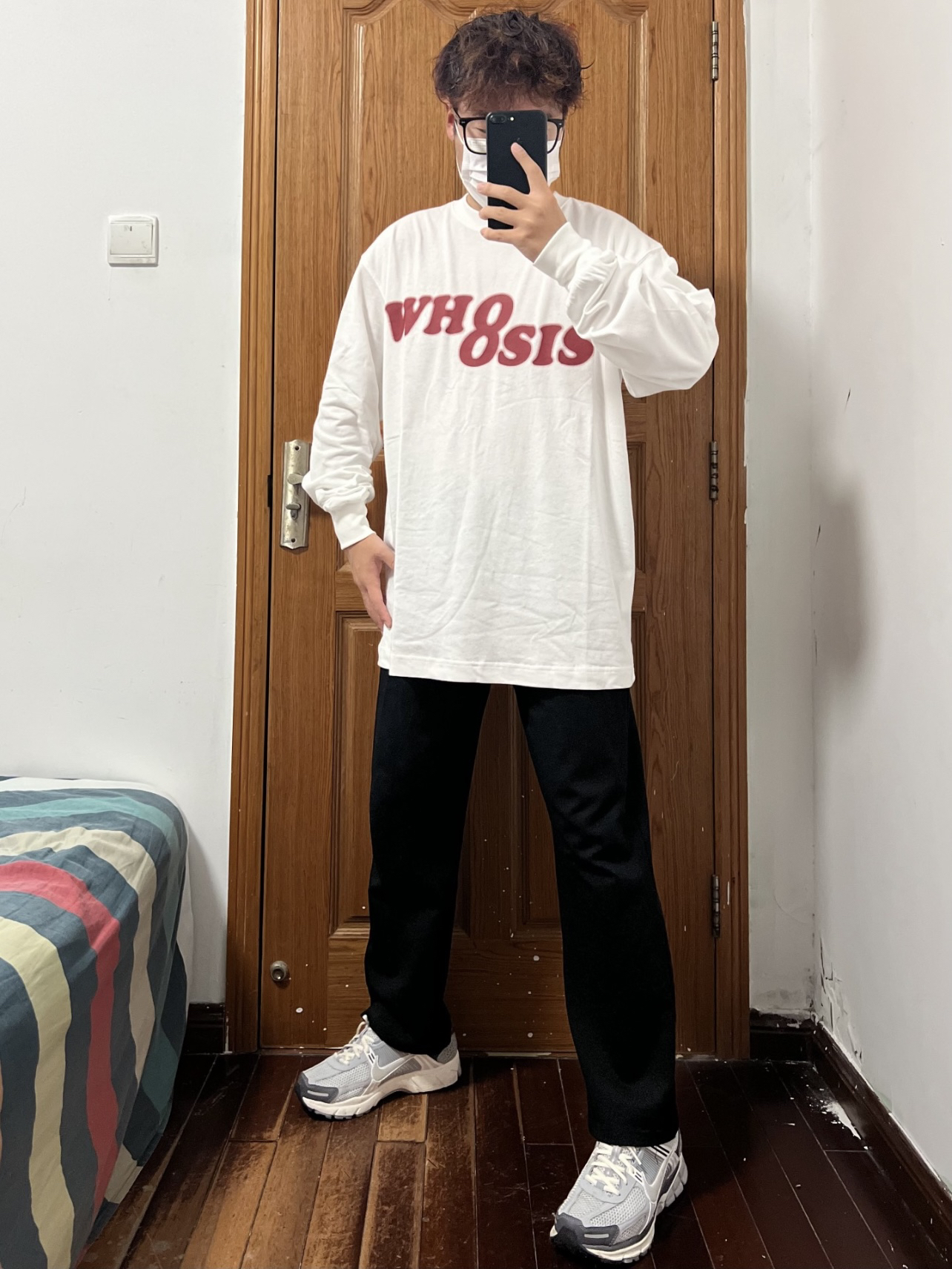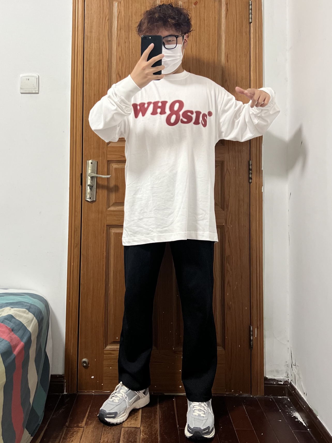 今日份穿搭分享🎉 上衣是 WHOOSIS 幻影Logo字母印花长䄂 简单的白色长袖T在早秋穿再合适不过 在未来的冬天当内搭也蛮不错的 胸口不是简单的字母logo而是幻影印花 这样才能更加帅气不是吗❓ 纯棉的质感也很不错国潮品牌可以信赖 搭配一条黑色长裤就好了 鞋子就选一双灰色的运动鞋就够百搭 👔 WHOOSIS 👖 黑色长裤 👟 Nike 🙋♂️ 170/120斤 L 持续带来最真实的...