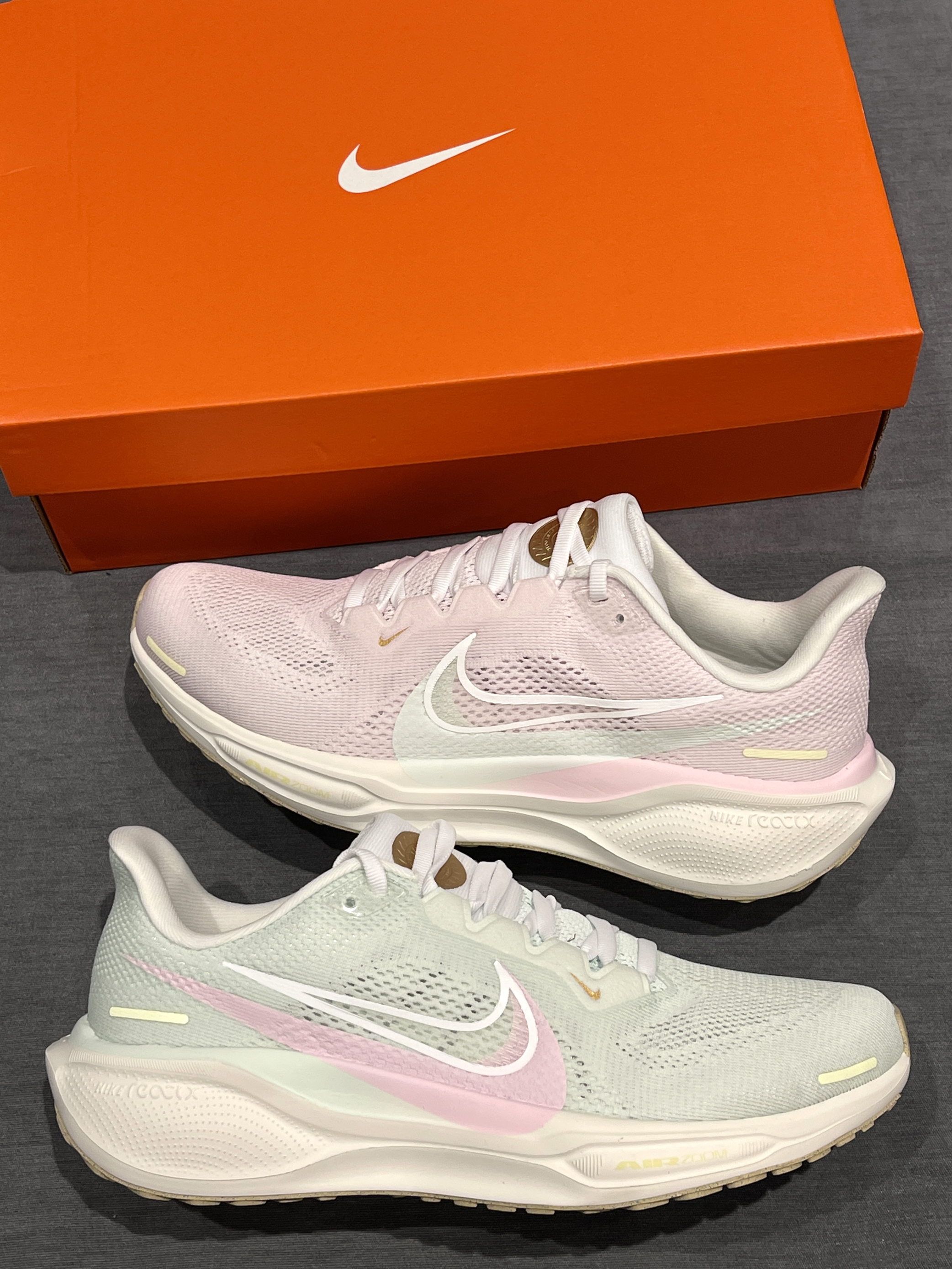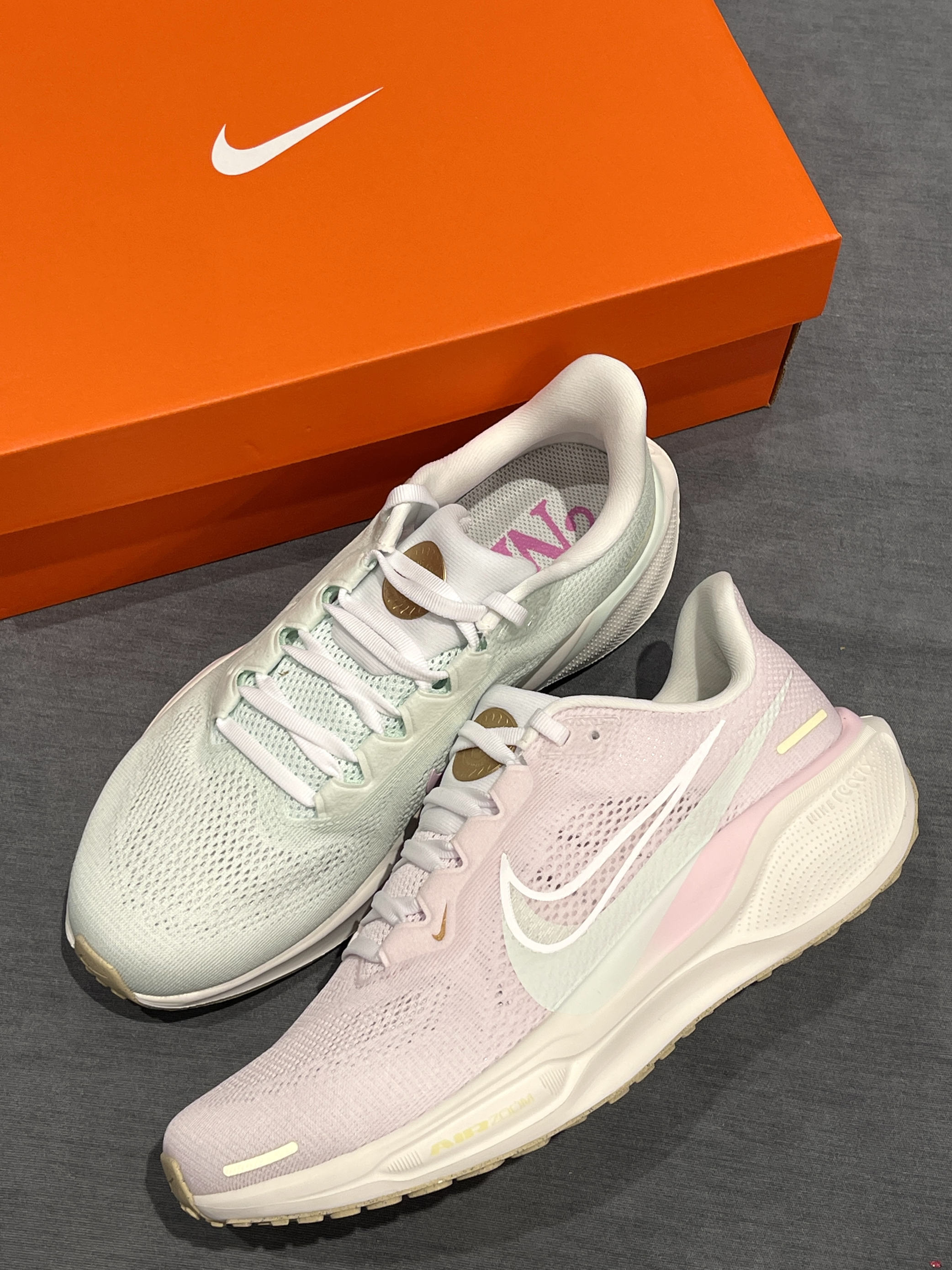 秋天第一双显眼包跑鞋,鸳鸯飞马41!🤩 Nike|Pegasus 41 低帮跑步鞋 “粉色”,新鞋型飞马41代,开箱实物亮眼清新!一粉一绿~穿起来显眼轻便~配色是奥运会主题,可以看到鞋舌处金牌标志,独特时尚!😎