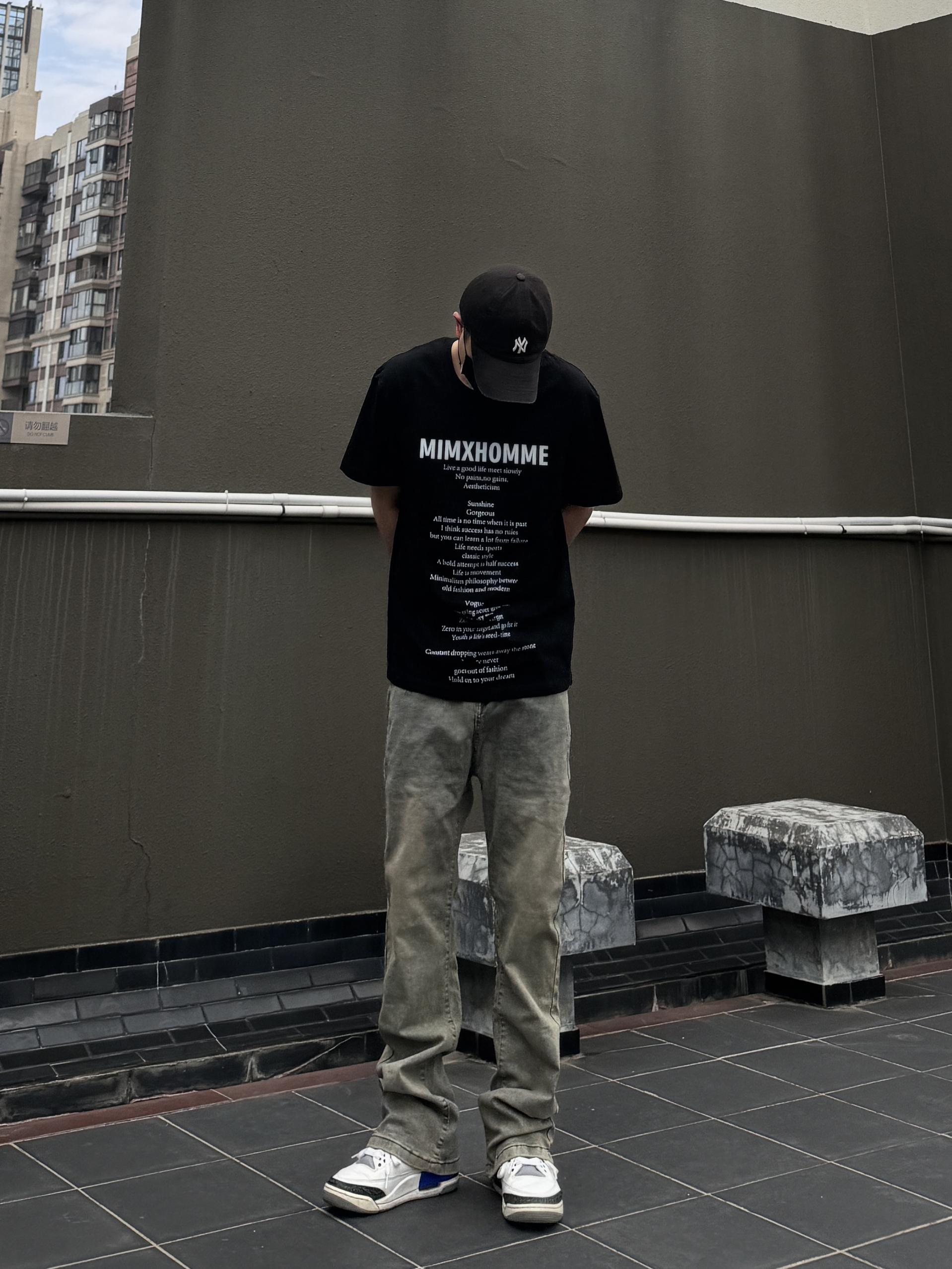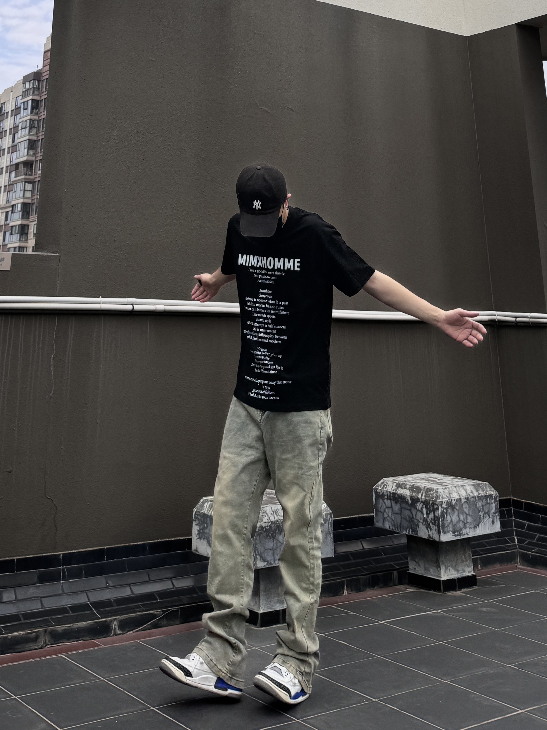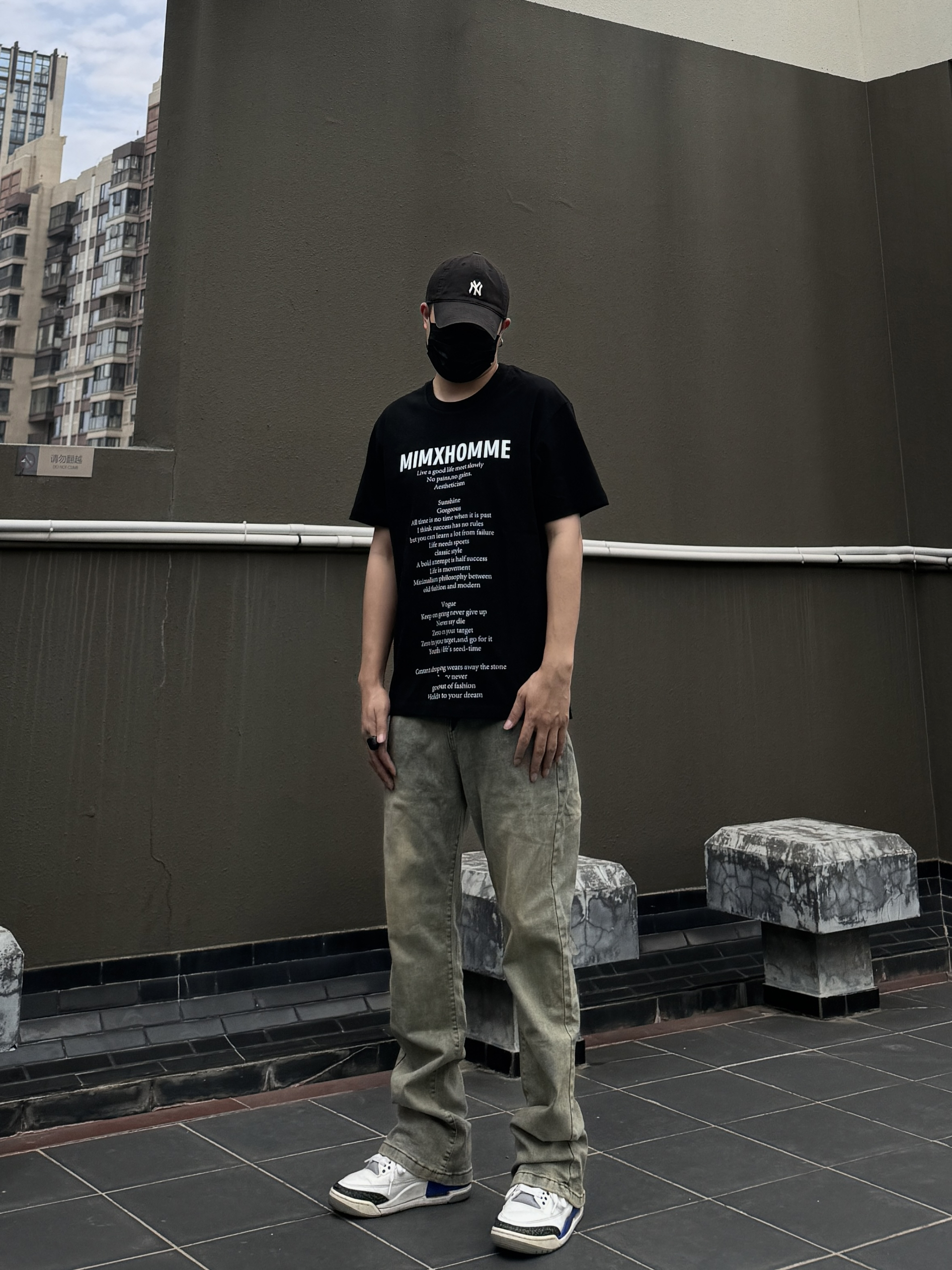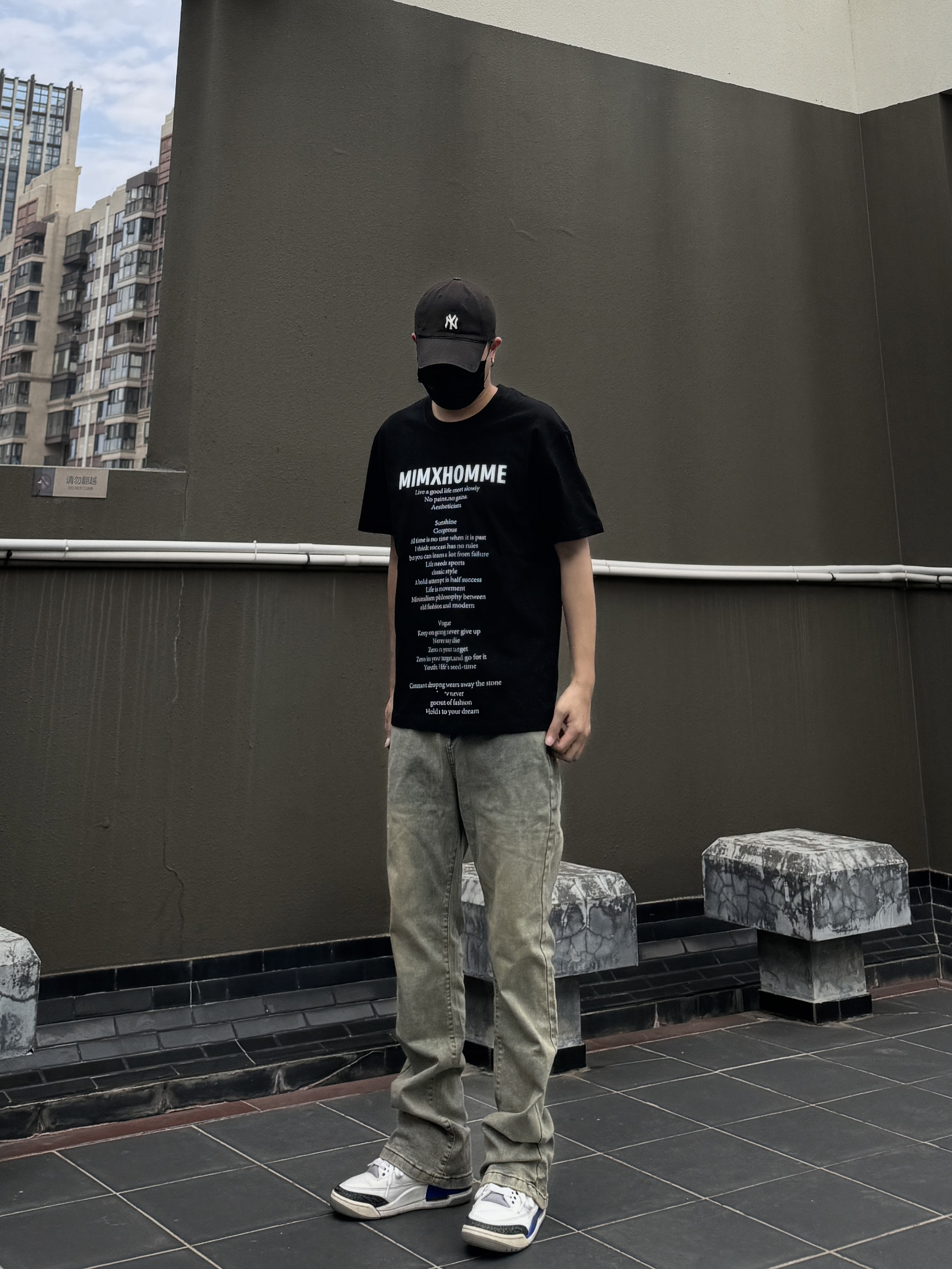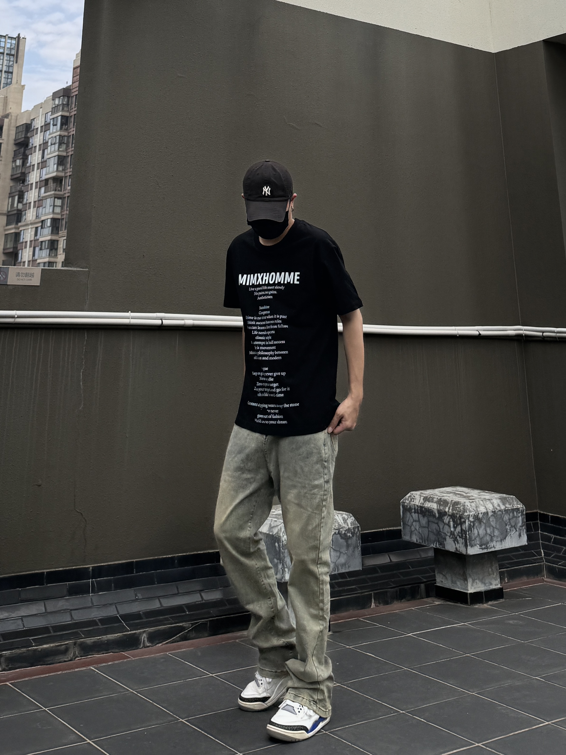夏天过去马上就要降温了,趁着温度还可以穿短袖 今天穿短袖分享我的穿搭报告 上衣是美式的风格设计的短袖,版型设计很不错,圆领字母印花让衣服上身很有质感 百搭可走多种风格 搭配直筒的微喇长裤,很显高显瘦,裤子的版型让腿也显得很直 搭配上一双Jordan 3 小闪电,整个穿搭氛围直接拿捏