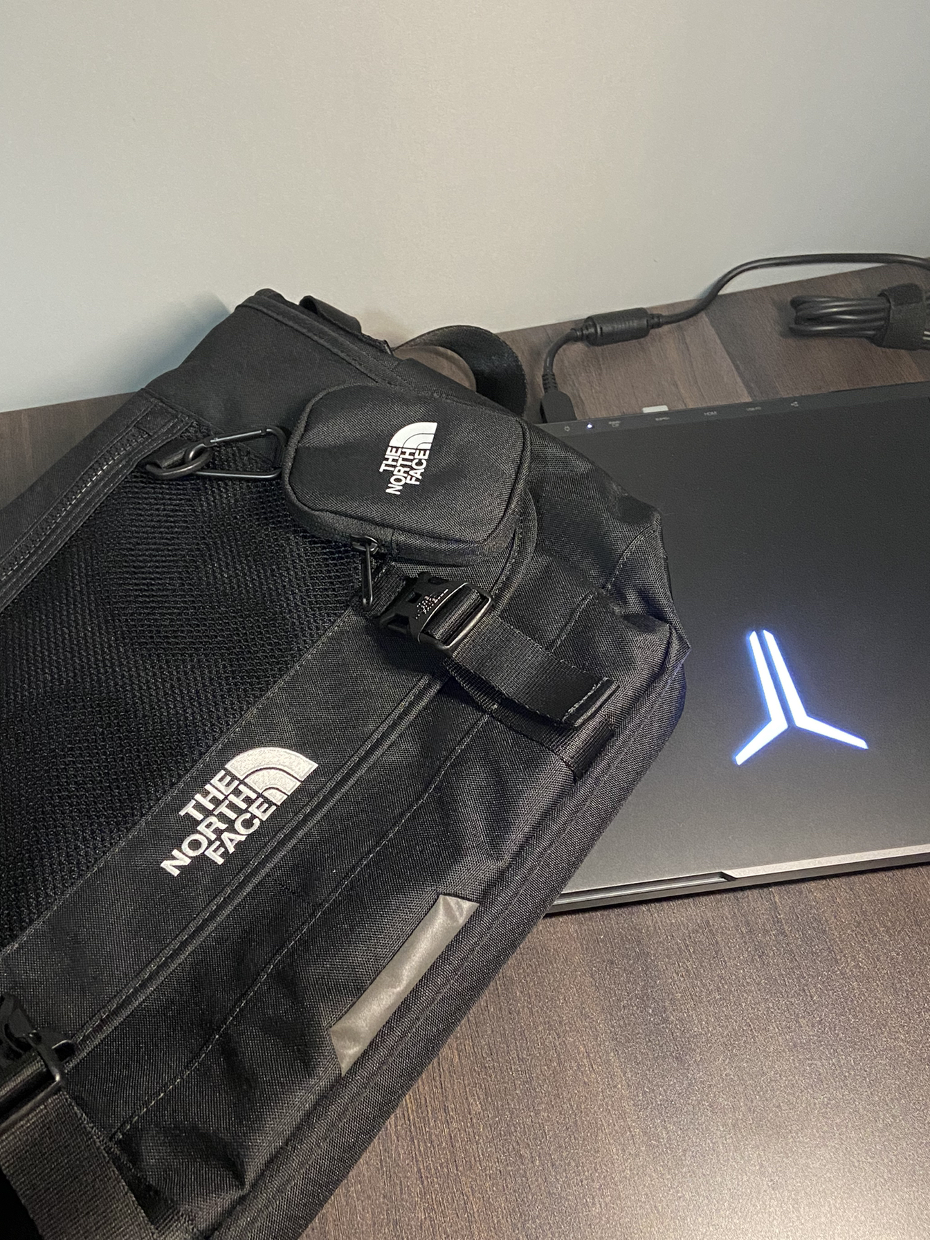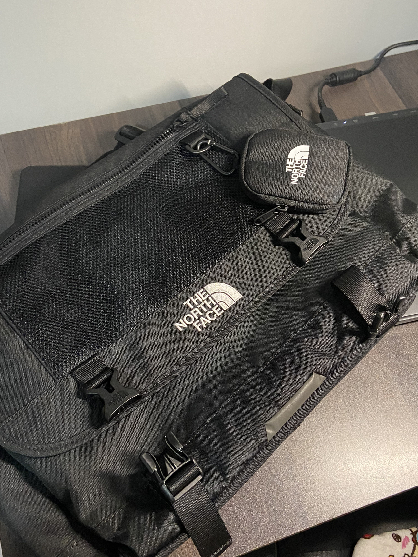 北面的实用斜挎包 大小够装笔记本 内格子很多 笔记本什么的都可以 有海绵里没装充电器什么都OK还可以放平版 出门旅游合适 搭配斜挎包 标志作料可以看看后图 好几处都有标志✅ 质量真的没得说 它这个标志的做工真的没得说 款式很好看 但是标志才配这个价🤞🏻真心OK 当时买这个主要是电脑包太丑了 想买个帅的背着嘿嘿😁