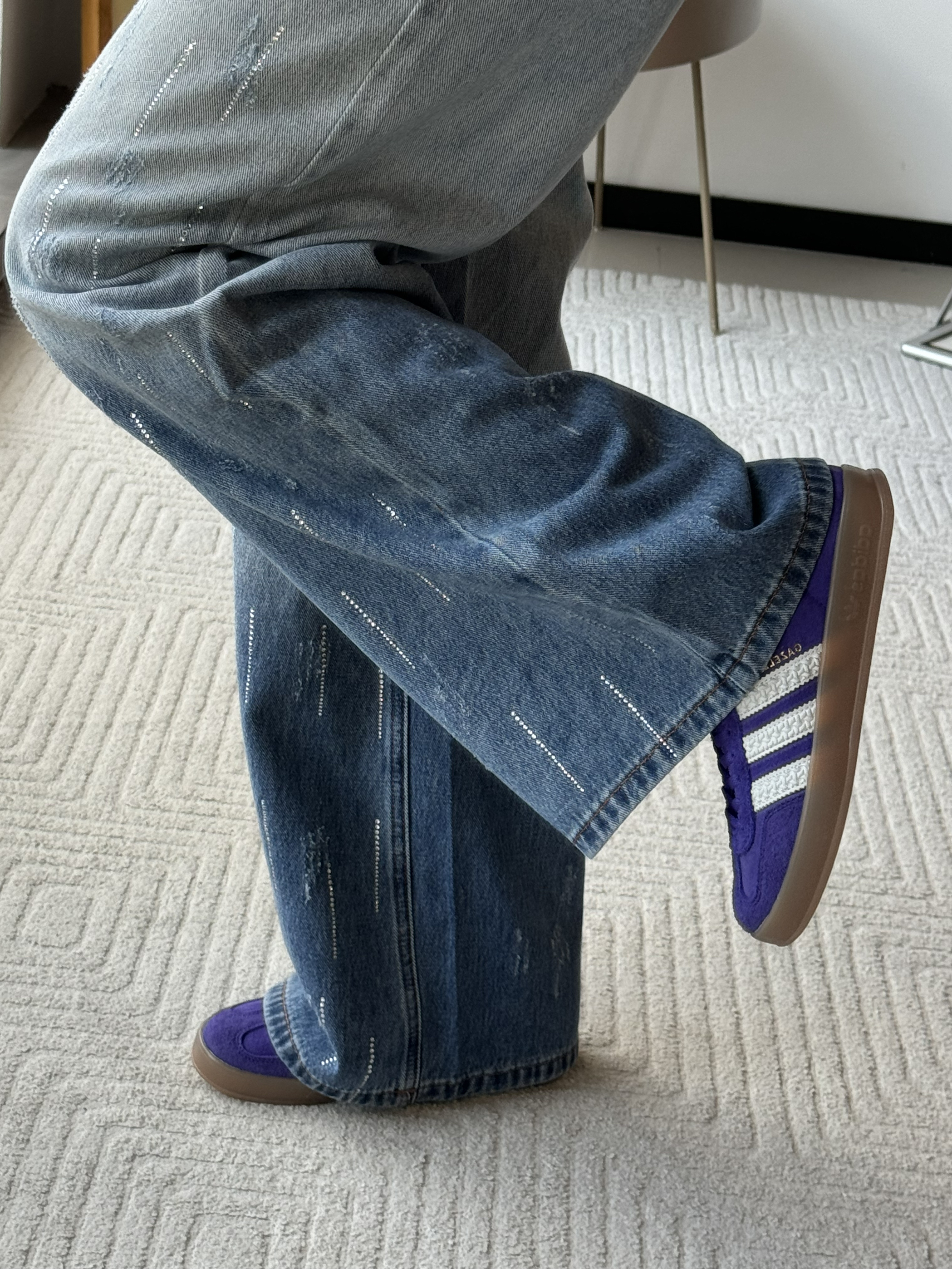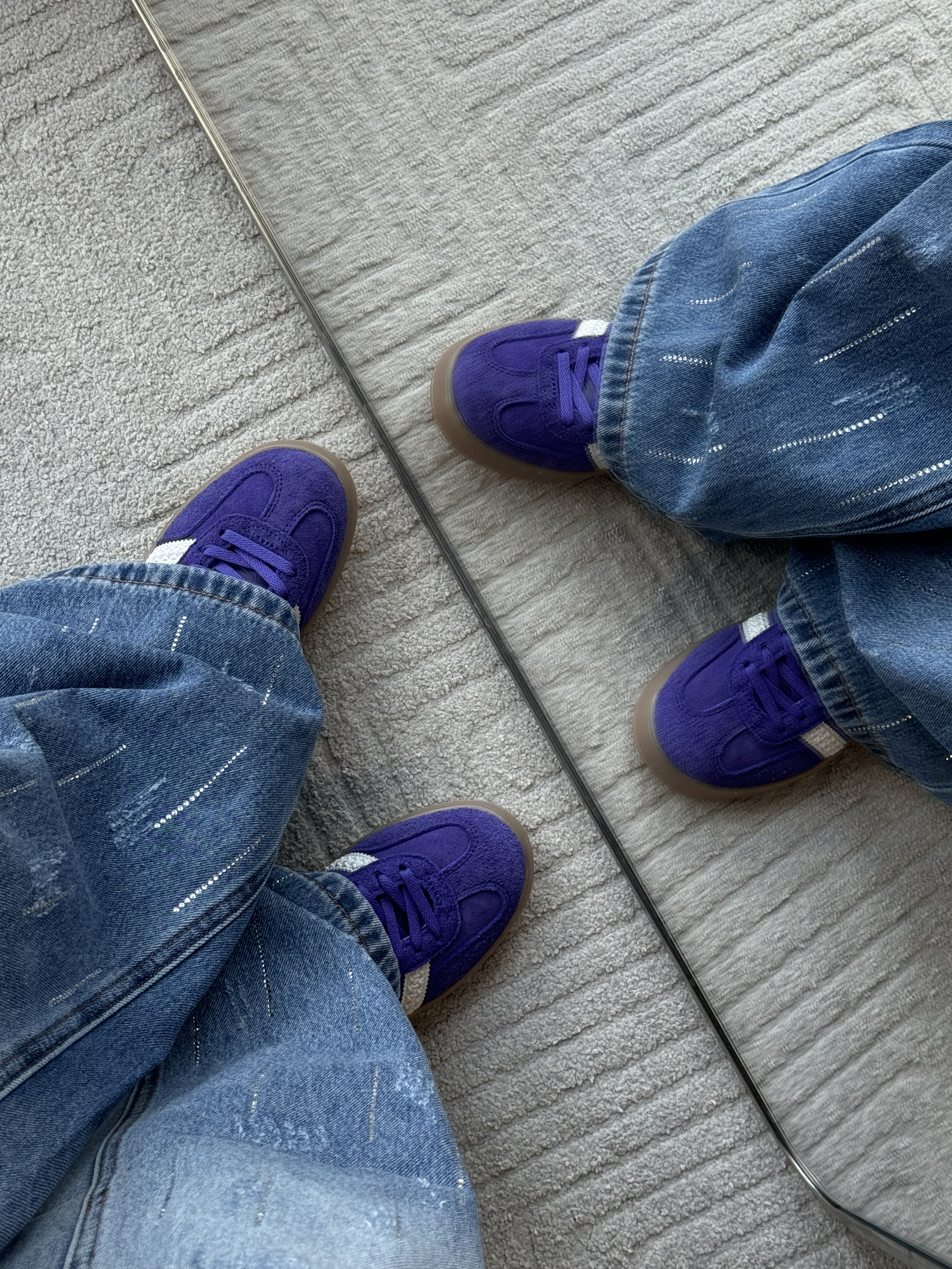 妹妹说的对,紫色果然有韵味呀。 这神秘又迷人的紫色💜,简直一眼心动。 它的设计时尚又独特,穿上显得特别有个性。 而且材质舒适,脚感超棒,无论是运动还是日常出行,都能轻松驾驭👏。 紫色阿迪达斯,为我的穿搭增添了不少亮点🥰。