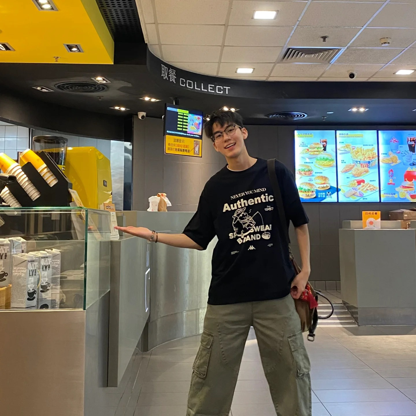 干净清爽是男生穿搭的加分项💯 属于复古工装boy的松弛感穿搭黑色短袖 ➖➖搭配军绿色工装裤阳光简约干净! 轻松营造日系工装少年感造型 图片来源于@每天都很困